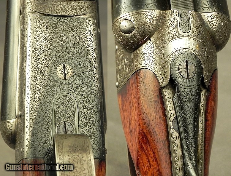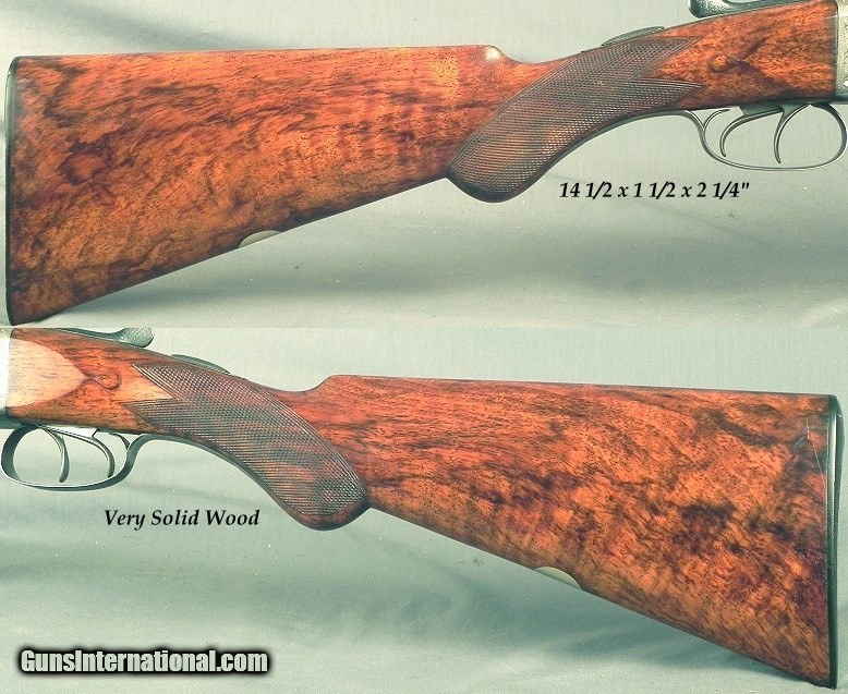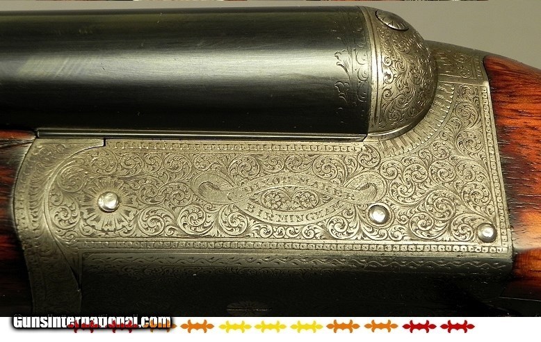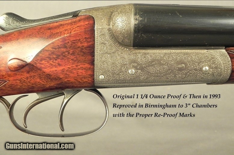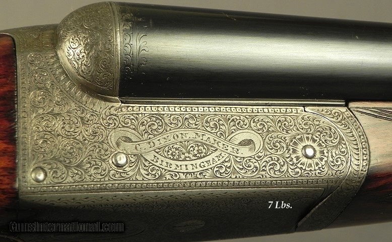 Description: #1498, Dixon, C. (Cornelius) Maker, Birmingham: A 12 Bore Boxlock Game Gun Made About 1905, It was originally nitro proved at 1 1/4 ounce and then in 1993 it was reproved in Birmingham to 3" chambers at 1200 BAR with the proper re-proof marks, 30" extractor dovetail lump barrels with a rib extension and crossbolt, At .730 .005 & .012 (Skt.I & Skt.II), 3" chambers, The wall thickness at .033" on both barrels, Matted flat tapered rib, Double triggers, Frontal Anson forend release, Splinter forend, Open Pistol grip stock at 14 1/2 x 1 1/2 x 2 1/4" over a horn buttplate, Cast-off for the right hand, 7 lbs., Very nice wood with good color and contrast, 99% coverage of well-cut scroll engraving, The barrels reblacked and now at 95%, No case colors remain but it has a nice patina, The stock nicely refinished and at 92%, The checkering at 95%, The bores are excellent from breech to muzzle and totally free of any pits, The barrels ring with an excellent chime. The wood is totally stout and with these dimensions it comes to the hand with ease and points great. Cornelius Dixon started as a gunmaker in Birmingham in 1894 and records have them operating on Bath St. as late as 1910. Most likely another casualty of WWI as many of the British trade meet their fate at the start of the great war. SOLD Curio/Relic: Yes |