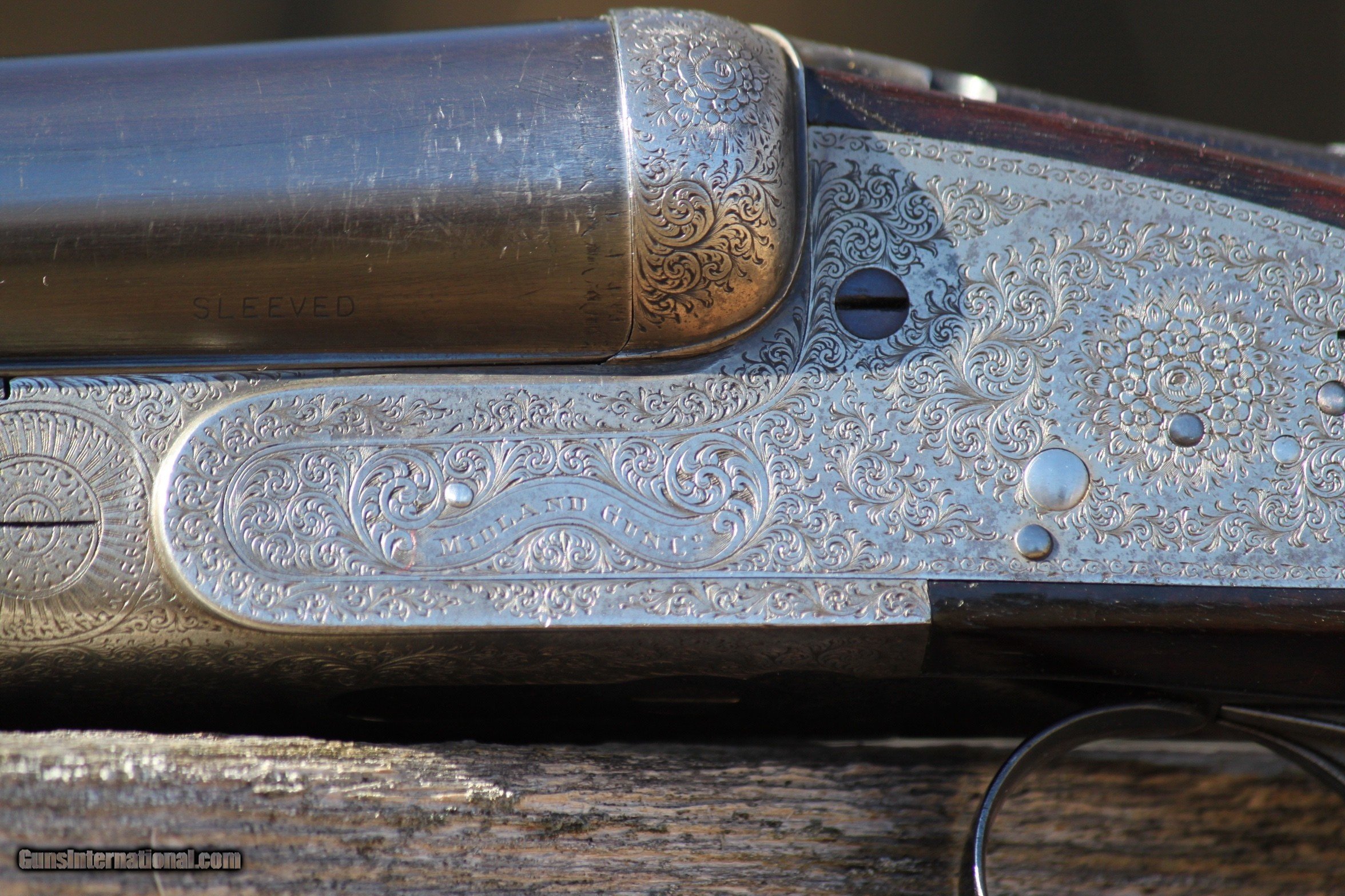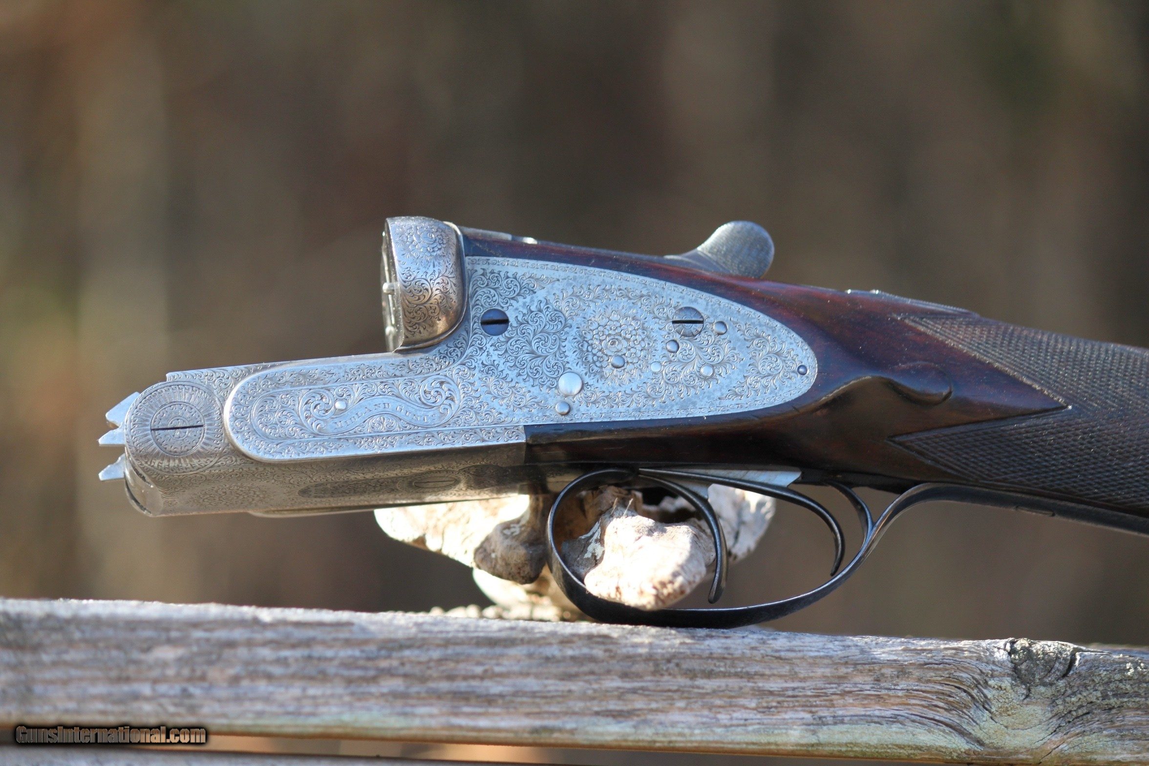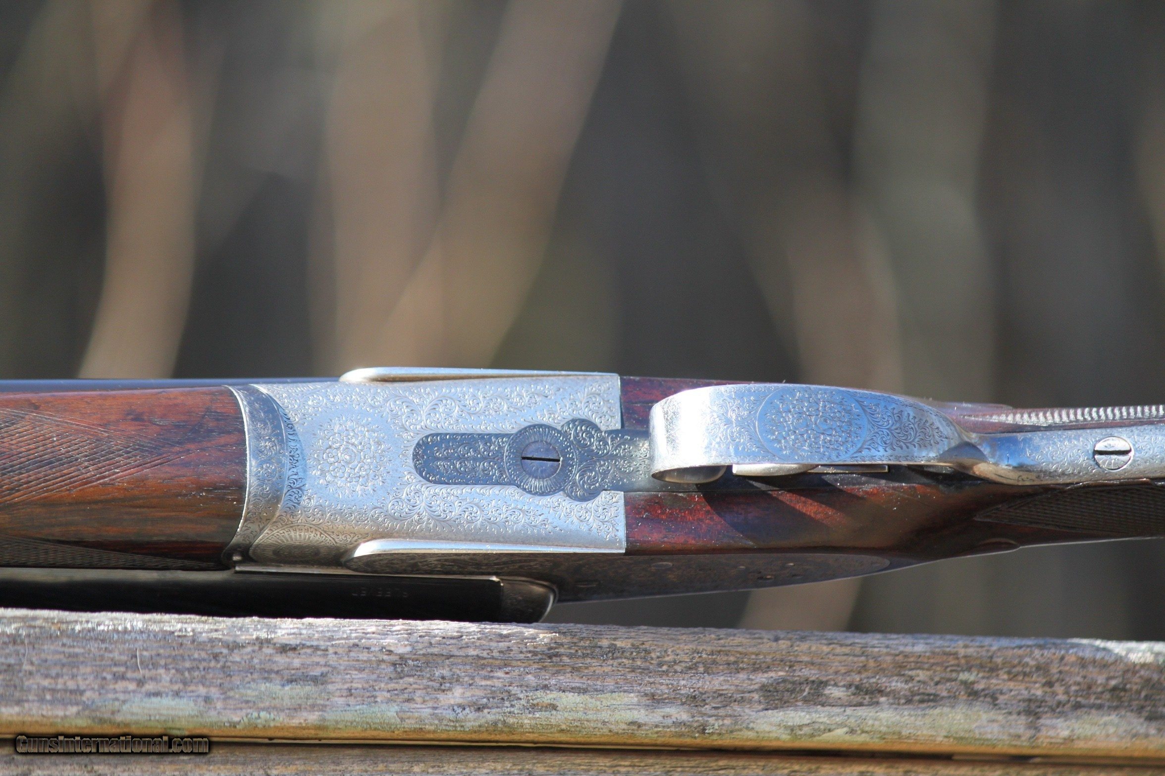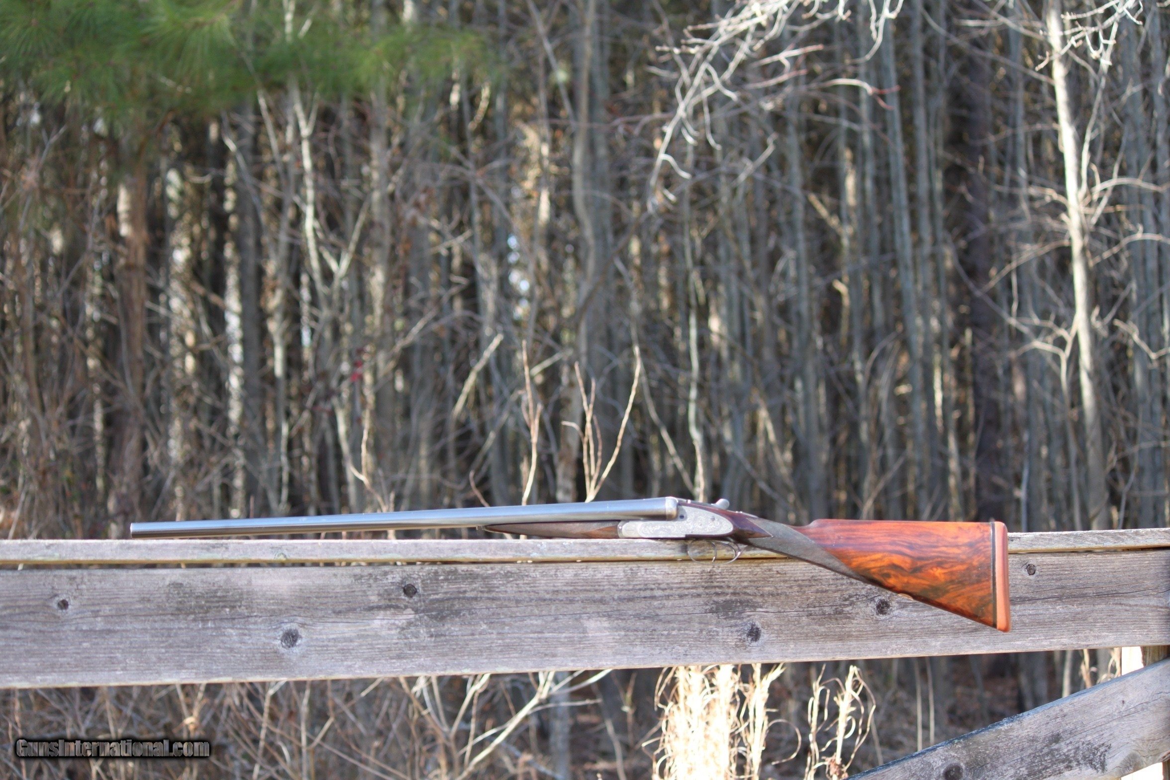 Description: For sale is a extremely nice 12 guage Midland sidelock, 1930-1945. The Midland is in excellent condition. Bores are bright and shiny, furniture is in very good shape,Trigger pull is crisp, bores are mirror clean, all engraving in excellent and vibrant condition. Ejectors strong and throw hulls. The engraving on the trigger guard and bottom plate of receiver are in extremely good condition as is the scroll engraving. The exterior of the barrels are shiny and excellent as well with interior bore walls bright and shiny. Bores have been sleeved at one time and are in excellent condition. A initial plate on the bottom of the stock has the initials DCY or YCD depending upon how you read it. Forearm is in very good shape with some scroll work and locks on tight. Trigger Pull is crisp. Safety functions as should. Top lever operates as should and ejectors throw shell hulls. The engraving on the sidelocks is very extensive as well as the breech release and lever as the photos show. I have personally fired this Midland at the time I received it and recently before listing. I only use low compression shells in all of my vintage doubles. I am in the process of selling the majority of my collection as I am at an age where I do not hunt or trap shoot anymore, and would like to pass along what I have collected over the years to others to enjoy and use. If you are a hunter or collector, do not pass up on this Midland. Gun has been very carefully cared for and show this in the condition. Plese inquire if you have any questions or need additional photos of specific areas, by emailing me at rab41283gmail. Reasonably priced at $3150.00. Check other prices and recent sales. Reasonable offers considered. I Curio/Relic: Yes Shotgun Gauge: 12 Gauge Manufacturer: Midland Model: Side by Side Serial Number: 61453 Barrel Length: 27 Bore Info: Mirror Chambers: 2 1/2 Ejectors: Yes-Strong Condition: Very Good Metal Condition: Very Good Wood Condition: Very good Bore Condition: Excellent Barrels: Double- Invisable Sleeved Barrel Type: Side by Side Action: Side Lock Triggers: Double Stock: Very Nice Stock Dimensions: Rear 5 1/4- 1 3/4 at T.Guard Stock Drop: Standard Stock Comb: 1 3/4 Stock Heel: 2 1/2 Stock Cast: None Fore End: Splinter-Good Butt Pad: Rubber LOP: 14 3/4 Rib: Tight Finish: Blued Weight: 7.5 Pounds Sights: Bead Manufacture Date: Est. 1924-1940 Chokes: Yes Choke Left: Modified Choke Right: Cylinder Engraving: Excellent Item Location: Maryland Proof:Nitro: Yes Minimum Wall Thickness Left: .729 as marked Minimum Wall Thickness Right: .729 as marked Grips: As Shown in Photos Optic: Beaded Front sight Price: $3,150.00 Buy Now Contact Seller |