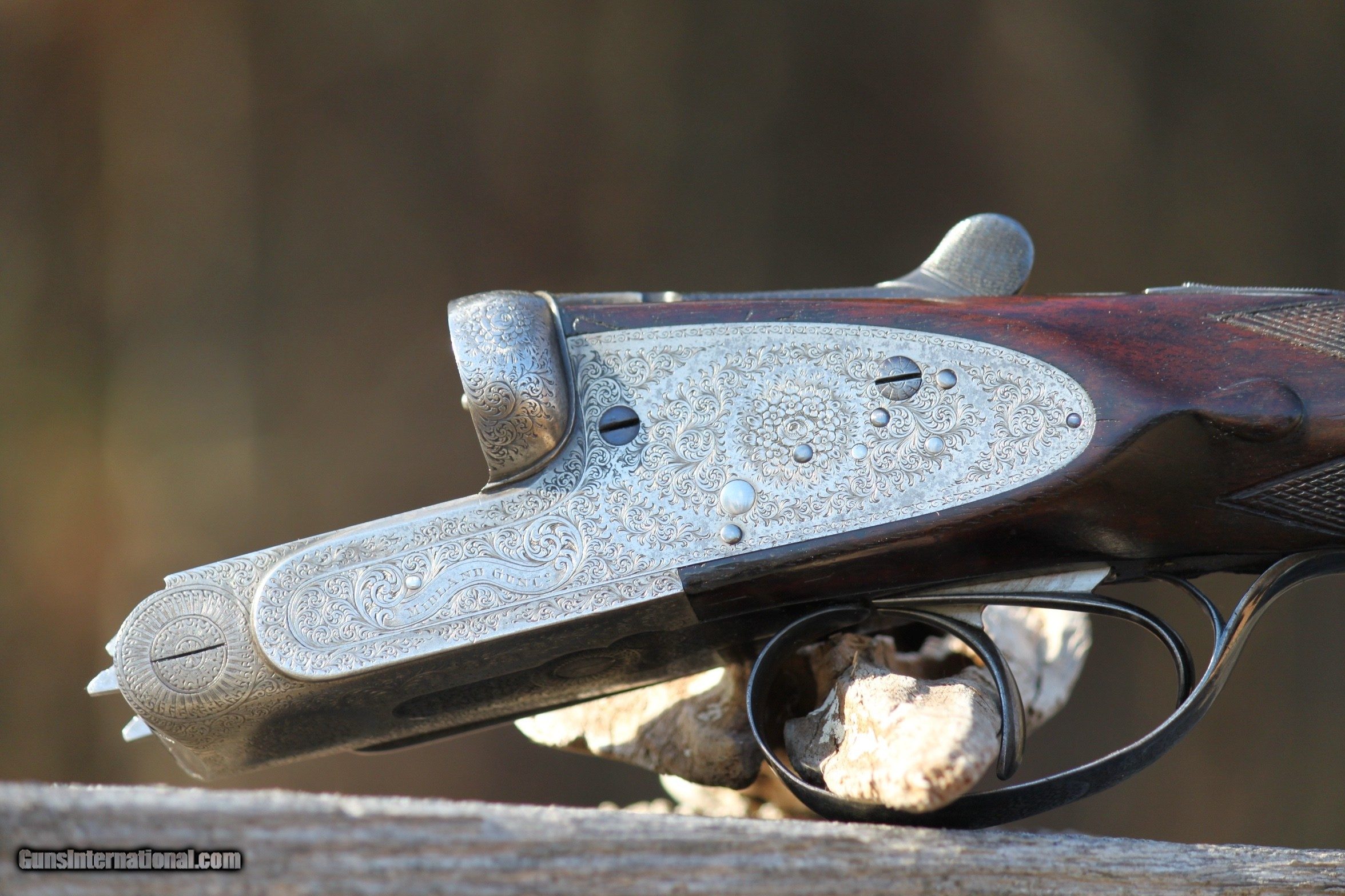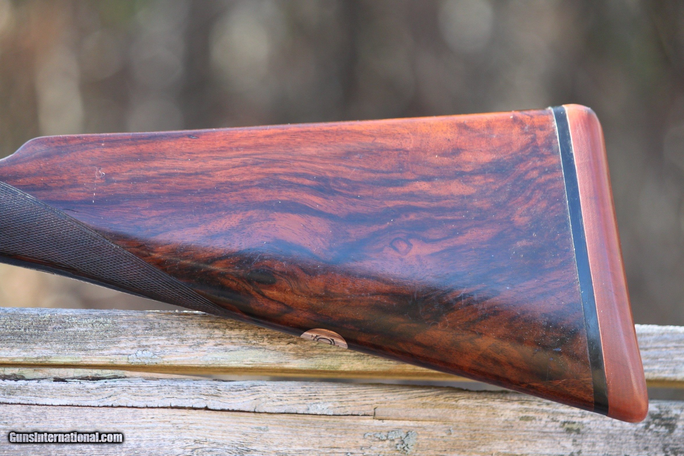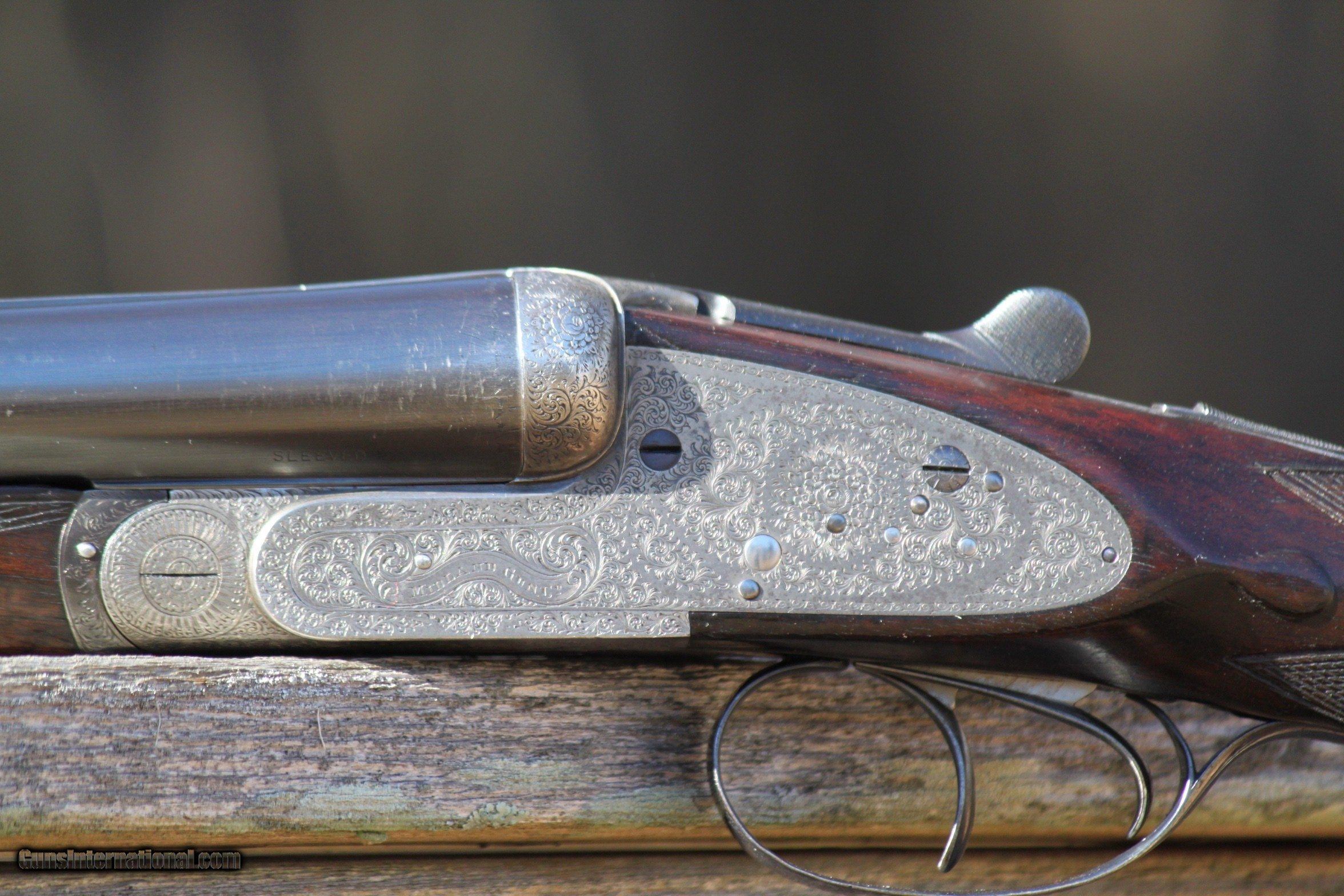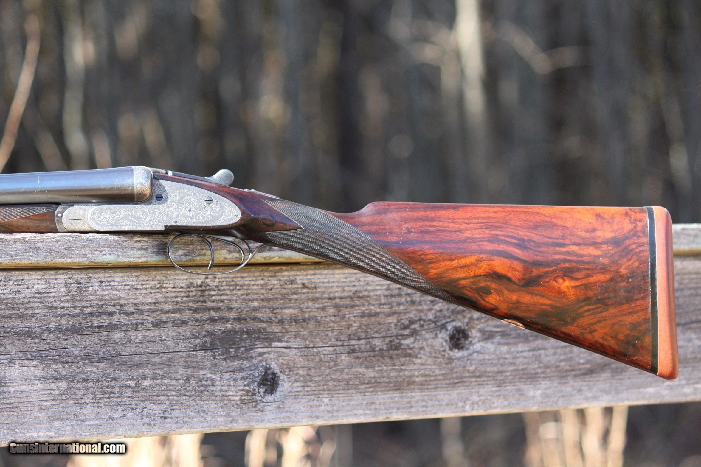 Description: For sale is a extremely nice 12 guage Midland sidelock, 1930-1945. The Midland is in excellent condition. Bores are bright and shiny, furniture is in very good shape,Trigger pull is crisp, bores are mirror clean, all engraving in excellent and vibrant condition. Ejectors strong and throw hulls. The engraving on the trigger guard and bottom plate of receiver are in extremely good condition as is the scroll engraving. The exterior of the barrels are shiny and excellent as well with interior bore walls bright and shiny. Bores have been sleeved at one time and are in excellent condition. A initial plate on the bottom of the stock has the initials DCY or YCD depending upon how you read it. Forearm is in very good shape with some scroll work and locks on tight. Trigger Pull is crisp. Safety functions as should. Top lever operates as should and ejectors throw shell hulls. The engraving on the sidelocks is very extensive as well as the breech release and lever as the photos show. I have personally fired this Midland at the time I received it and recently before listing. I only use low compression shells in all of my vintage doubles. I am in the process of selling the majority of my collection as I am at an age where I do not hunt or trap shoot anymore, and would like to pass along what I have collected over the years to others to enjoy and use. If you are a hunter or collector, do not pass up on this Midland. Gun has been very carefully cared for and show this in the condition. Plese inquire if you have any questions or need additional photos of specific areas, by emailing me at rab41283gmail. Reasonably priced at $3150.00. Check other prices and recent sales. Reasonable offers considered. I Curio/Relic: Yes Shotgun Gauge: 12 Gauge Manufacturer: Midland Model: Side by Side Serial Number: 61453 Barrel Length: 27 Bore Info: Mirror Chambers: 2 1/2 Ejectors: Yes-Strong Condition: Very Good Metal Condition: Very Good Wood Condition: Very good Bore Condition: Excellent Barrels: Double- Invisable Sleeved Barrel Type: Side by Side Action: Side Lock Triggers: Double Stock: Very Nice Stock Dimensions: Rear 5 1/4- 1 3/4 at T.Guard Stock Drop: Standard Stock Comb: 1 3/4 Stock Heel: 2 1/2 Stock Cast: None Fore End: Splinter-Good Butt Pad: Rubber LOP: 14 3/4 Rib: Tight Finish: Blued Weight: 7.5 Pounds Sights: Bead Manufacture Date: Est. 1924-1940 Chokes: Yes Choke Left: Modified Choke Right: Cylinder Engraving: Excellent Item Location: Maryland Proof:Nitro: Yes Minimum Wall Thickness Left: .729 as marked Minimum Wall Thickness Right: .729 as marked Grips: As Shown in Photos Optic: Beaded Front sight Price: $3,150.00 Buy Now Contact Seller |