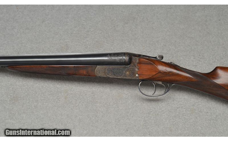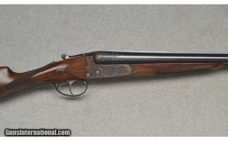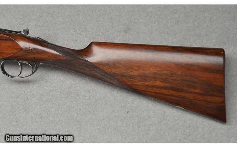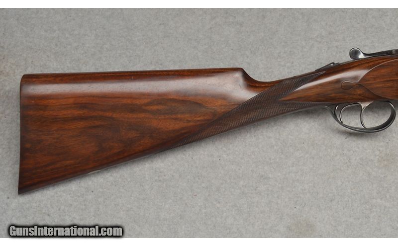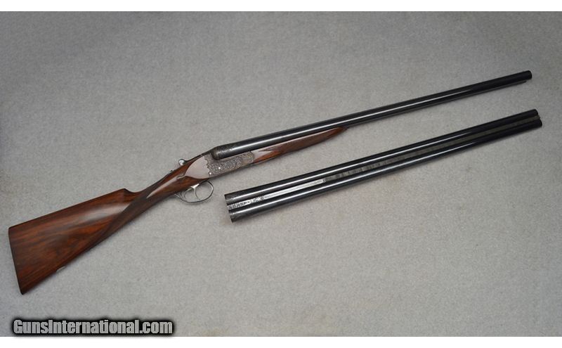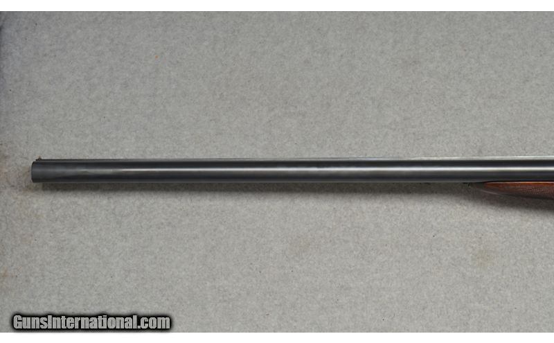 Description: Frank E. Malin Two Barrel Set Side By Side Box Lock 12 gauge Shotgun is in excellent condition. It has two 26" barrels with single brass bead sights and 1 7/8" wedges of scrollwork at the breeches and nitro proof markings on the undersides along with matching serial numbers "11" on one and "12 on the other. Both barrels have the Melbourne/London address and scroll engravings on the ribs. The color casehardened receiver is 95% covered in scroll engravings, with gold inlaid "Safe" on the manual safety. It has a checkered straight grip stock and has a checkered bare butt. It comes with a brown leather Malin takedown case with a canvas slip cover. It retains 98% of the original bluing with light spotting on the barrels, It has light handling marks on the stock, barrel, and on the leather case. SN: 78347 12 Gauge SOLD Chambers: 2 3/4 Metal Condition: Excellent condition with handling marks Wood Condition: Excellent condition with handling marks Bore Condition: Clean and shiny Barrels: 26 Triggers: Double trigger Stock Dimensions: LOP 14 Fore End: Checkered wooden fore end Weight: 6 lb 8 oz Sights: Single brass bead sights Chokes: Improved cylinder Item Location: Fort Worth, TX |