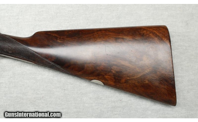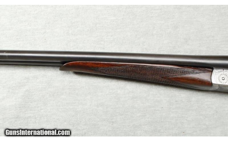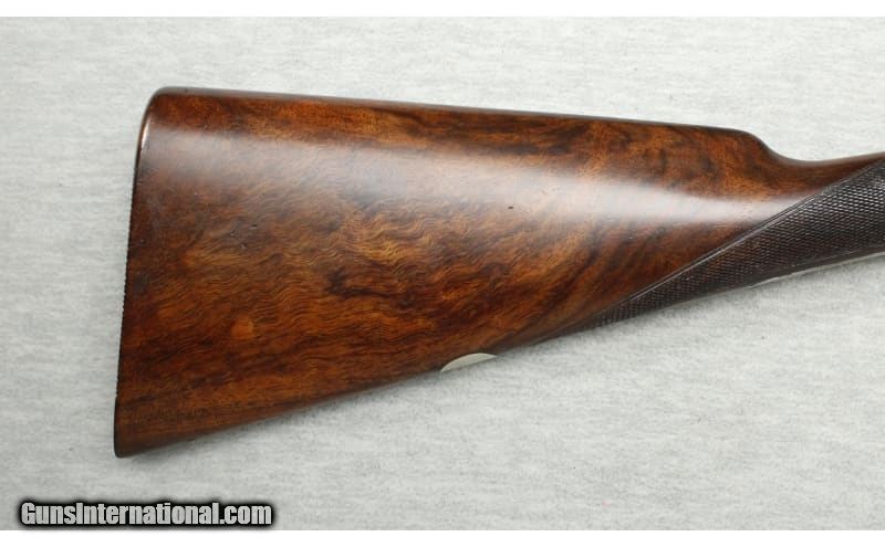 Description: Gallyon & Son Boxlock in 410 Bore. Features 26-inch barrels, outstanding wood stock, and double trigger with extractor. Choked Improved Cylinder/Full. It has a 13 1/4 inch LOP. It has a Splinter fore end and a finely checkered stock. No box. .410 Bore SOLD Chambers: 3 Inches Metal Condition: Excellent Wood Condition: Excellent with minor handling marks Bore Condition: Bright Barrels: 26 Inches Triggers: Double triggers Stock Dimensions: LOP 13 1/4 Inches Fore End: Checkered walnut Butt Pad: Grooved walnut Weight: 4 lbs 4 oz Sights: Single bead on solid rib Chokes: Improved Cylinder/Full Item Location: La Vista, NE |