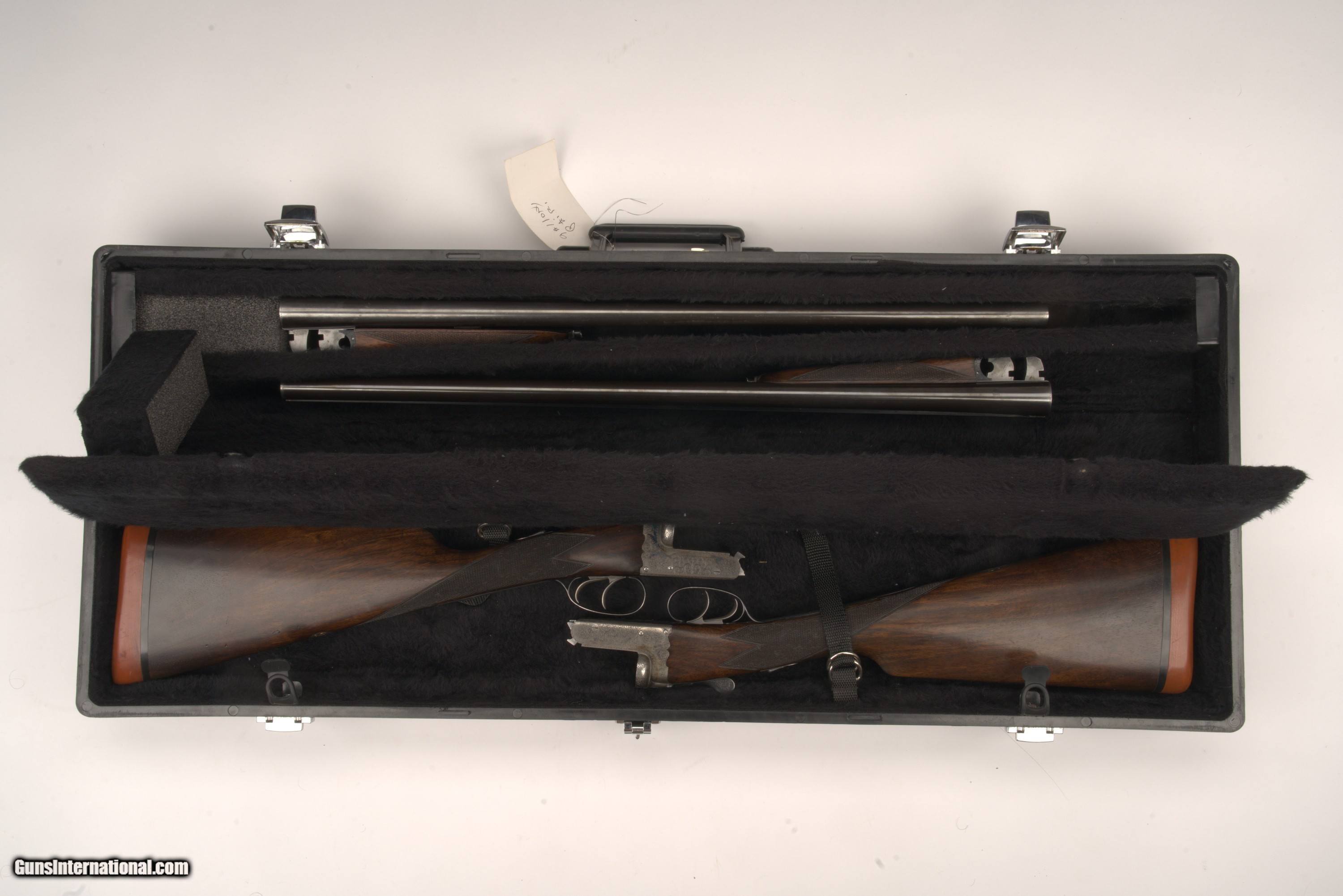 Description: -Manufacturer: Gallyon & Sons -Model: The Norfolk Model (#1 of Matched Pair) -Serial Number: 12257 -USED -Gauge/Caliber: 12 Gauge -Chamber Size: 2 1/2" -Year Manufactured: -Barrel Length: 25" -SXS Right Barrel Marking: Gallyon & Sons -SXS Left Barrel Marking: Cambridge, Kings Lynn & Norwich -Hand: Left Hand -Length of Pull: Front Trigger- 15 1/2" & Back Trigger- 14 3/4" -Drop at Comb: 1 3/8" -Drop at Heel: 2 1/8" -Fixed Chokes SXS: Right Barrel- .711 MOD & Left Barrel- .685 EX FULL -Ejectors: No -Trigger Type: Double Trigger -Stock Type: English Straight -Receiver Finish: Case Color (worn from age) -Weight: 6lbs 10oz -Country of Origin: England -Action: Break Action Box Lock -Stock/Forend Finish Originality: Original -Receiver Finish Originality: Original -Barrel Finish Originality: Original -Bore Condition: Good -Items the Firearm comes with: Double Gun Aftermarket Hard Case -Current Damages Explained: Surface Scratching on LH & RH side of stock/forend. Minor dents LH & RH side stock/forend. Minor denting on checkering on the stock/forend. Over all in great shape. -Barrel Damages: Normal Wear. Minor markings on the barrel and some blueing fade. Faded finish where forend meets barrel. Minor fading on tips of barrel. Very Clean barrel. -Dents or Deep Gouges: See stock/forend damages. -Rust or Corrosion: NONE -Firearm Condition: Very Good: In perfect working condition, no appreciable wear on working surfaces, no corrosion or pitting, only minor surface dents or scratches. -Manufacturer: Gallyon & Sons -Model: The Norfolk Model (#2 of Matched Pair) -Serial Number: 12258 -USED -Gauge/Caliber: 12 Gauge -Chamber Size: 2 1/2" -Year Manufactured: -Barrel Length: 25" -SXS Right Barrel Marking: Gallyon & Sons -SXS Left Barrel Marking: Cambridge, Kings Lynn & Norwich -Hand: Left Hand -Length of Pull: Front Trigger- 15 1/2" & Back Trigger- 14 3/4" -Drop at Comb: 1 3/8" -Drop at Heel: 2 1/8" -Fixed Chokes SXS: Right Barrel- .727 CYL & Left Barrel- .698 FULL -Ejectors: No -Trigger Type: Double Trigger -Stock Type: English Straight -Receiver Finish: Case Color (worn from age) -Weight: 6lbs 10oz -Country of Origin: England -Action: Break Action Box Lock -Stock/Forend Finish Originality: Original -Receiver Finish Originality: Original -Barrel Finish Originality: Original -Bore Condition: Good -Items the Firearm comes with: Double Gun Aftermarket Hard Case -Current Damages Explained: Surface Scratching on LH & RH side of stock/forend. Minor dents LH & RH side stock/forend. Minor denting on checkering on the stock/forend. Over all in great shape. -Barrel Damages: Normal Wear. Minor markings on the barrel and some blueing fade. Faded finish where forend meets barrel. Minor fading on tips of barrel. Very Clean barrel. -Dents or Deep Gouges: See stock/forend damages. -Rust or Corrosion: NONE -Firearm Condition: Very Good: In perfect working condition, no appreciable wear on working surfaces, no corrosion or pitting, only minor surface dents or scratches. This is a USED GUN and the actual photos of the gun you will receive. Please feel free to contact us if you would like to make an offer on this gun. Not the model you are looking for? Give us a call or email today and we will be happy to help find the right gun for you! If you contact us directly, we offer a 3% Cash or Check Discount, do not charge shipping on orders over $3,000, and also do not charge out of state taxes. There will be a $40 shipping charge for any firearms under $3,000. Shotgun Gauge: 12 Gauge Manufacturer: Gallyson & Sons Model: The Norfol Model True Pair Serial Number: 12257 & 12258 Barrel Length: 25 Condition: USED Price: $6,500.00 Buy Now Contact Seller |
