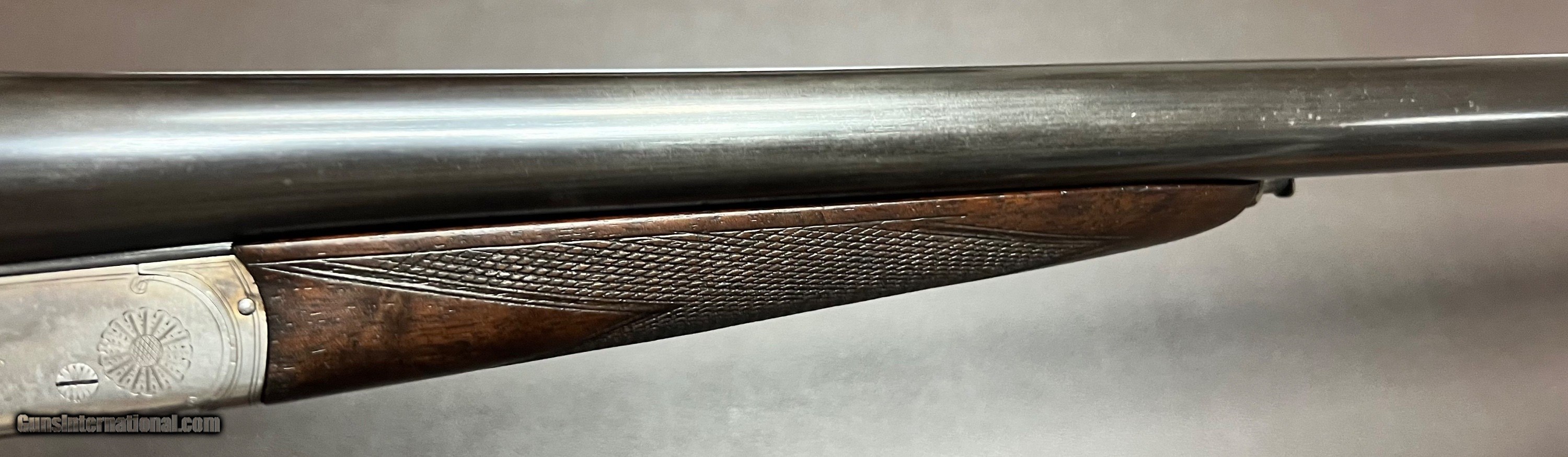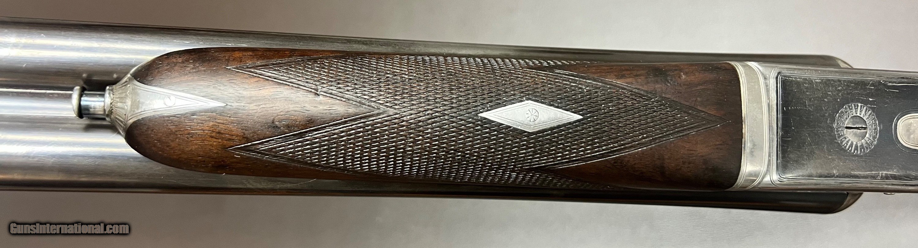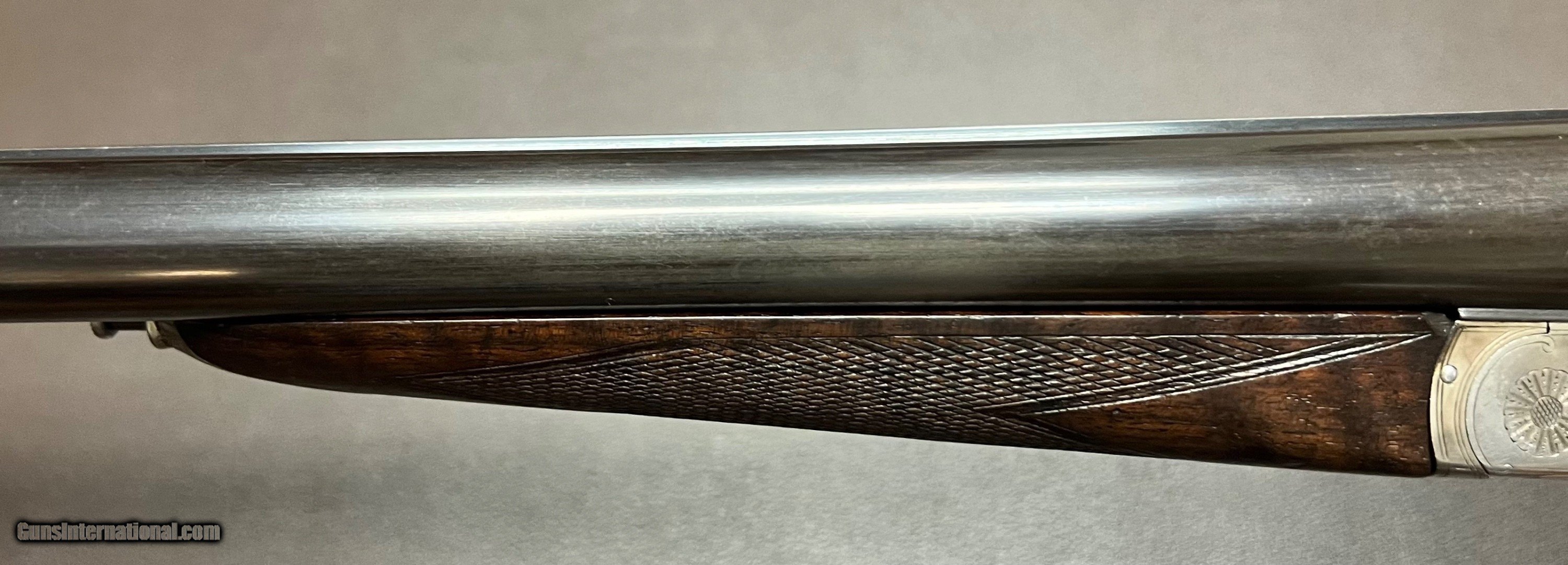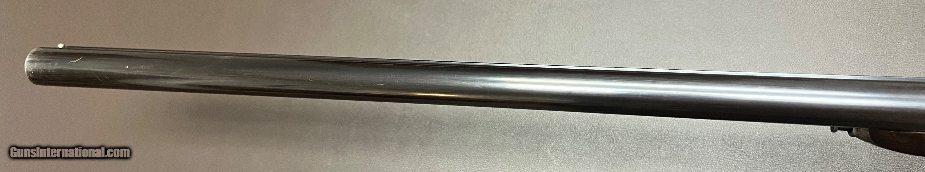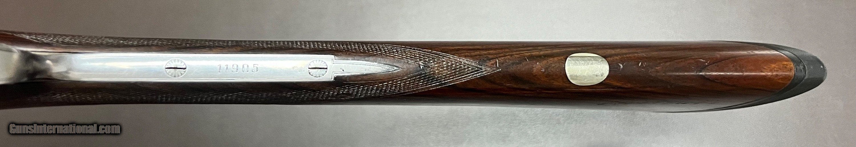 Description: H. Clarke & Sons Leicester 12GA lightweight boxlock ejector 25" ejector Churchill rib barrels with single front bead 2 1/2" 1 1/8oz nitro proof Chokes: .010/.018 IC/LM Bore measurements: .729/.729 proofed at .729/.729 unaltered from 1979 London reproof Minimum wall thickness R:0.027 L:0.026 Lockup is tight as new, gun closes like a vault Bores are bright & clean Crisp trigger pulls with perfectly timed ejectors Barrels ring like a church bell Auto safety Figured straight grip stock with splinter forend, both with their original flat top checkering LOP 14 7/8" DAC 1 7/16 DAH 2 1/4 Cast off 1/8" at heel 6lbs 0oz Very nice original condition lightweight boxlock ejector with light wear from use. The screws and pins on this gun are perfect and some case color still remains (all in protected areas). Classic high quality very well built lightweight English game gun. Curio/Relic: Yes Shotgun Gauge: 12 Gauge Price: $975.00 Buy Now Contact Seller |
