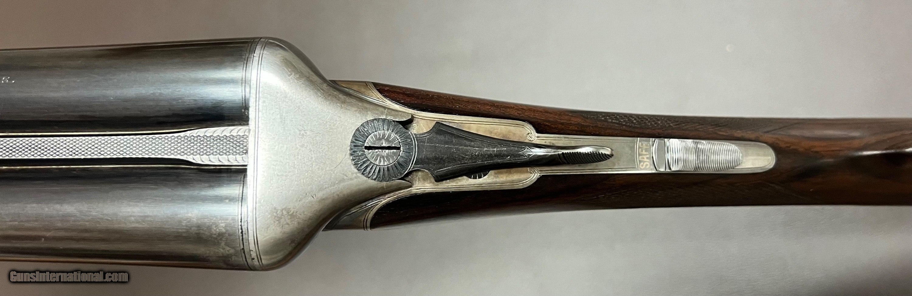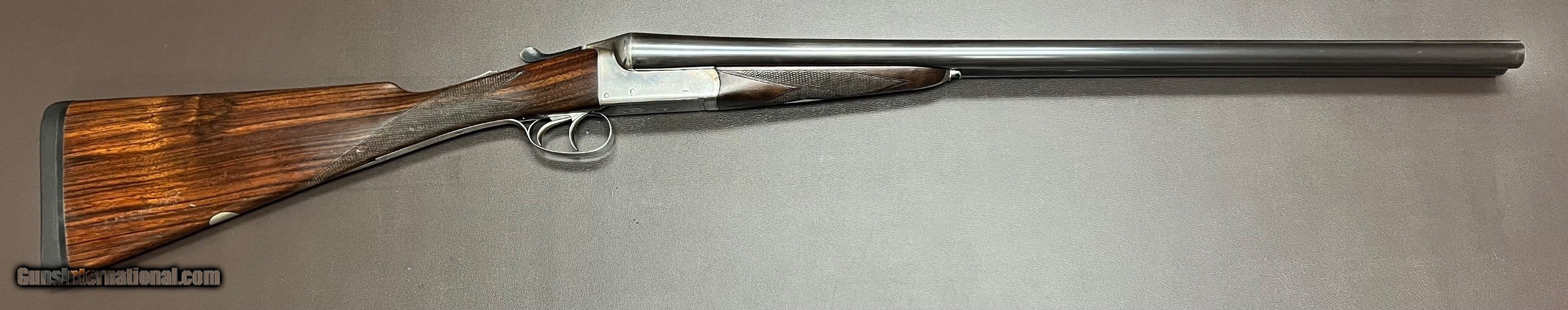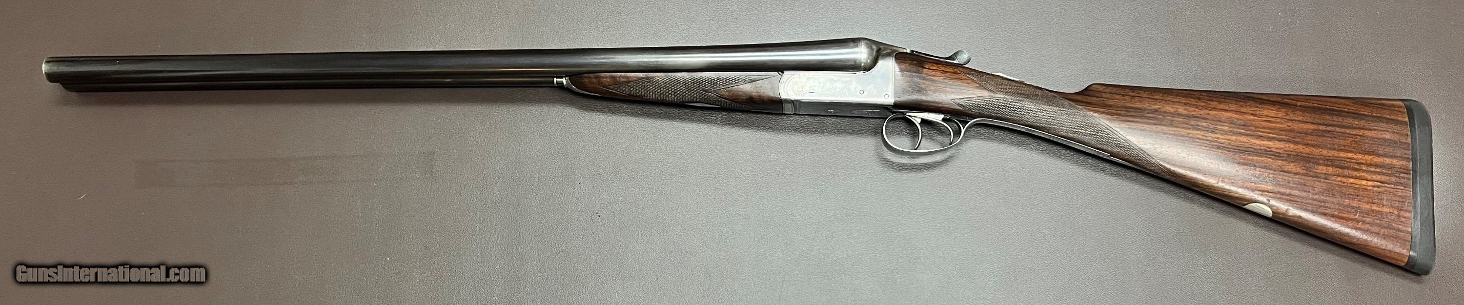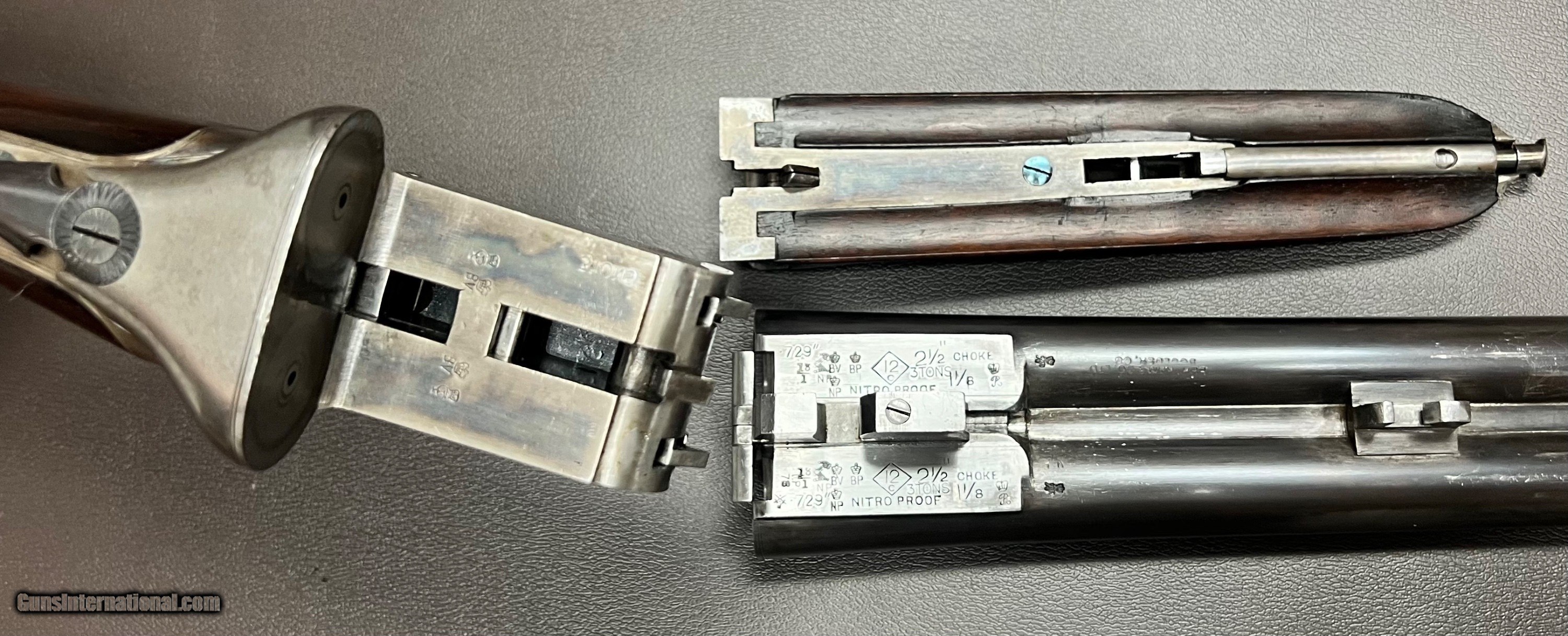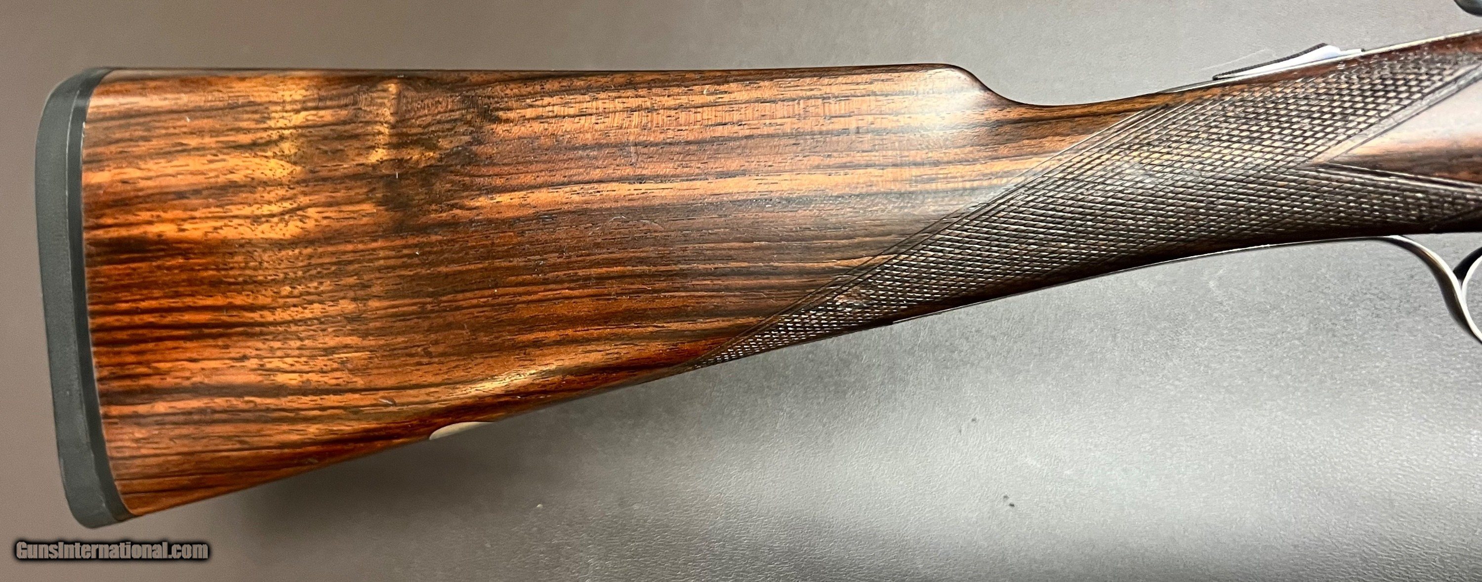 Description: H. Clarke & Sons Leicester 12GA lightweight boxlock ejector 25" ejector Churchill rib barrels with single front bead 2 1/2" 1 1/8oz nitro proof Chokes: .010/.018 IC/LM Bore measurements: .729/.729 proofed at .729/.729 unaltered from 1979 London reproof Minimum wall thickness R:0.027 L:0.026 Lockup is tight as new, gun closes like a vault Bores are bright & clean Crisp trigger pulls with perfectly timed ejectors Barrels ring like a church bell Auto safety Figured straight grip stock with splinter forend, both with their original flat top checkering LOP 14 7/8" DAC 1 7/16 DAH 2 1/4 Cast off 1/8" at heel 6lbs 0oz Very nice original condition lightweight boxlock ejector with light wear from use. The screws and pins on this gun are perfect and some case color still remains (all in protected areas). Classic high quality very well built lightweight English game gun. Curio/Relic: Yes Shotgun Gauge: 12 Gauge Price: $975.00 Buy Now Contact Seller |