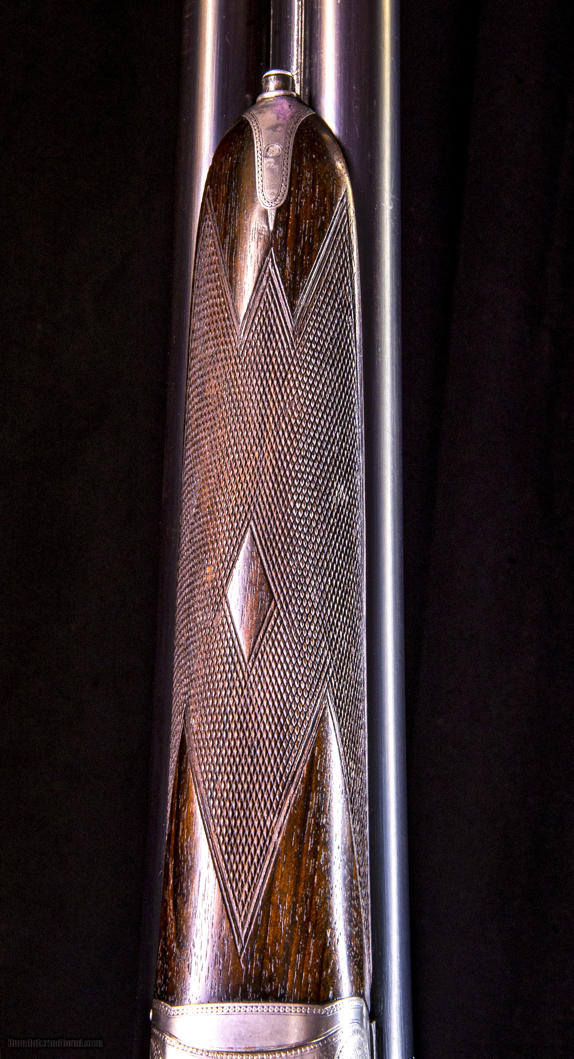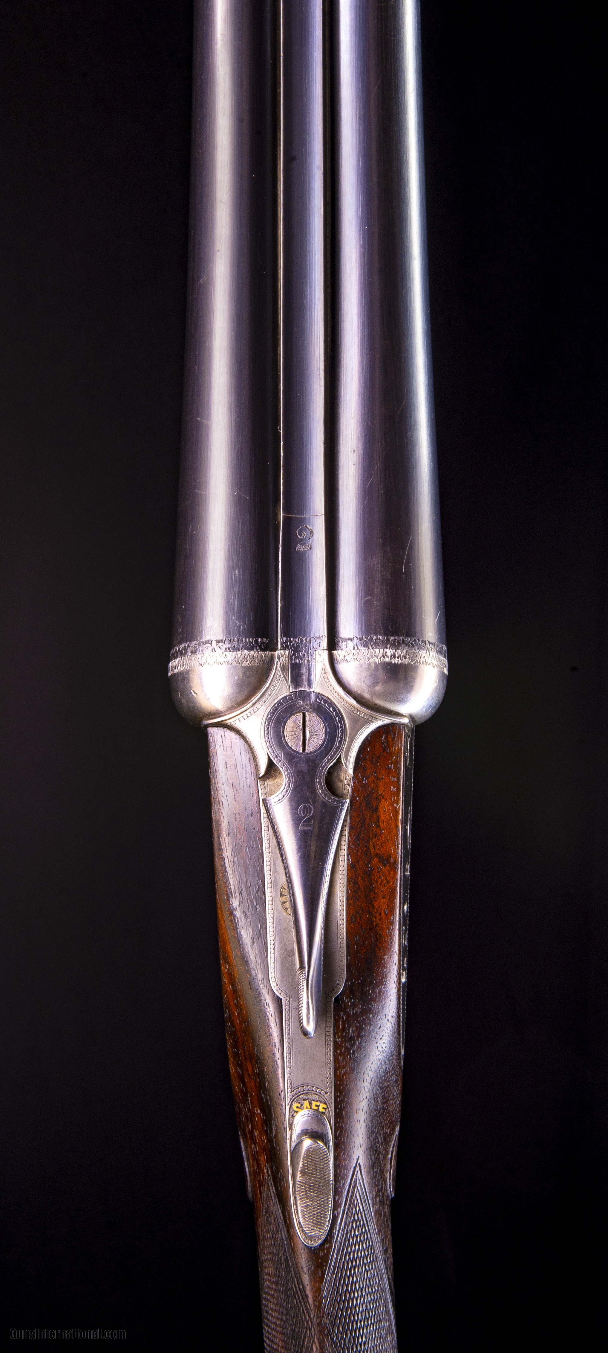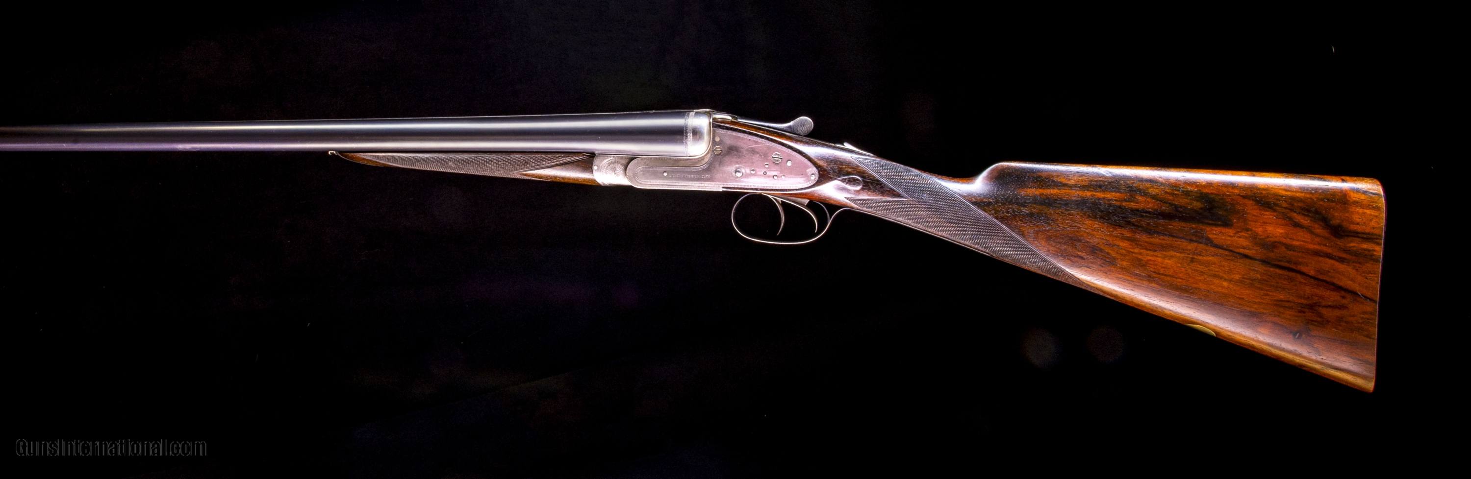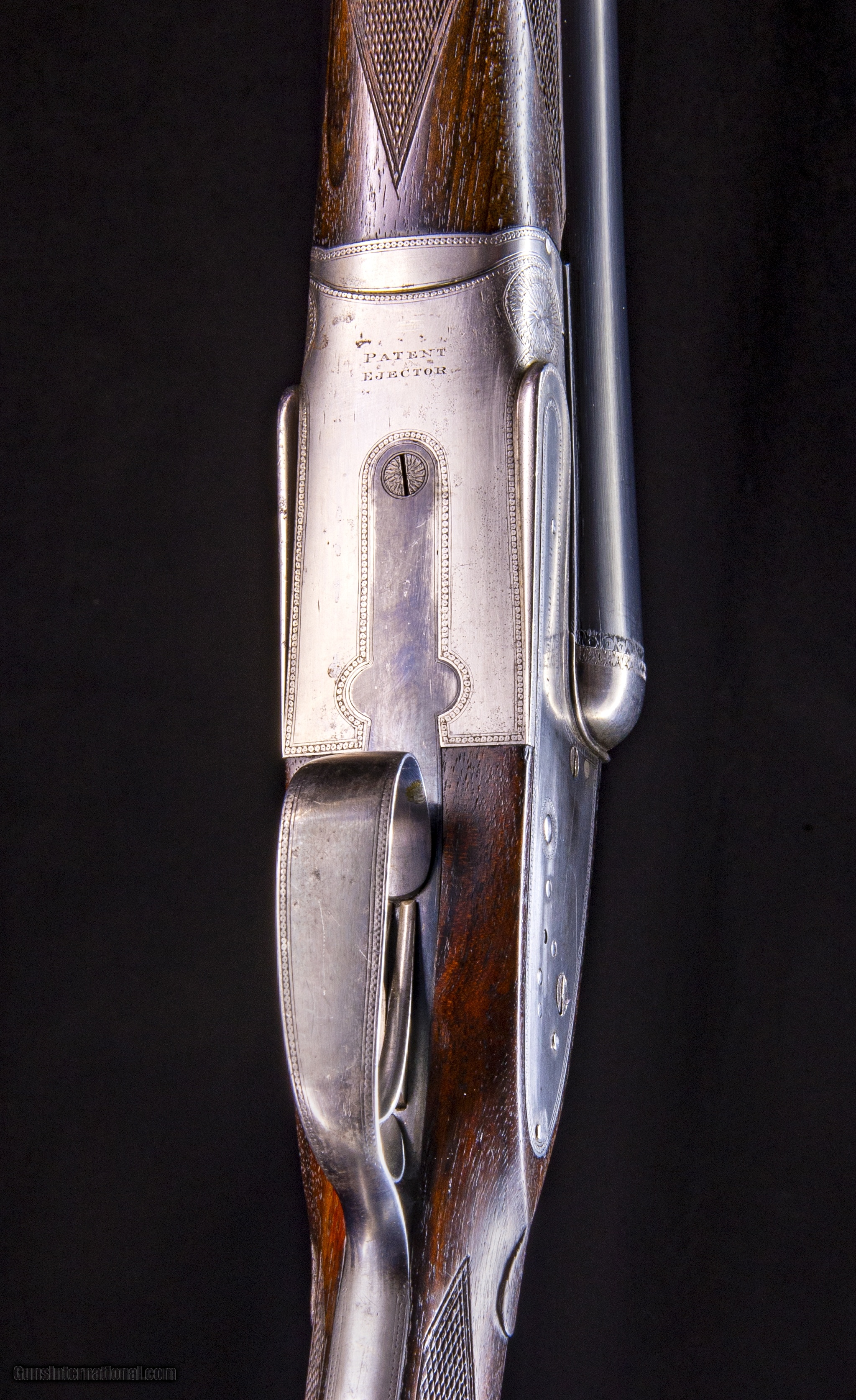 Description: Hammerless Sidelocks - This fine shotgun dates to my favorite period in English gun making, 1897-1904. The serial number records are sketchy but would guess to 1903. While not embellished with fancy and ornate engraving, I assure you that the internals\' of this shotgun are of the same quality as the best guns that London produced during this period. This includes Boss, Purdey, and Holland & Holland guns. *This gun is tight and shows perfect bores.