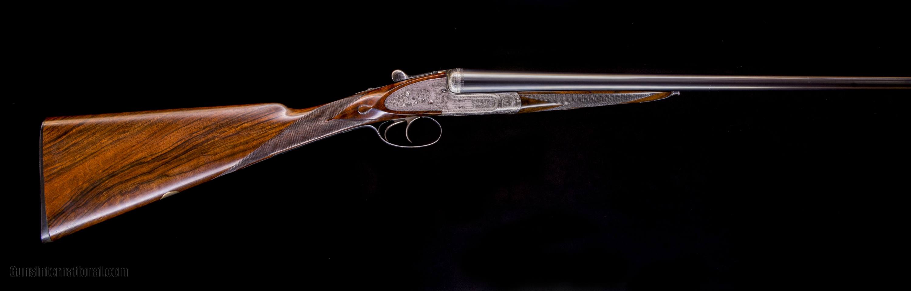 Description: Hammerless Sidelocks - Great dimensions and light at 6 lbs. 2 oz. with 29" barrels! That is the same weight of my Woodward 16 with 29" barrels. This gun comes up super. I don\'t know how they did it. Hussey guns are of known high quality, extremely respected among our trade. *Note the long length of pull and that this gun is in its maker\'s case.