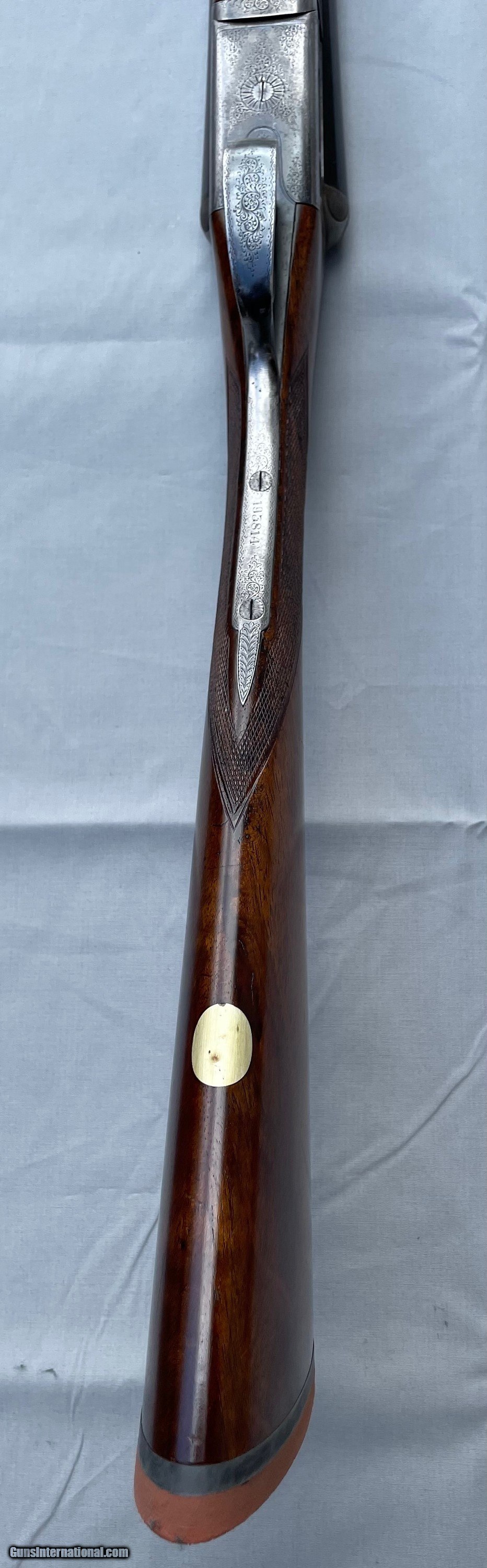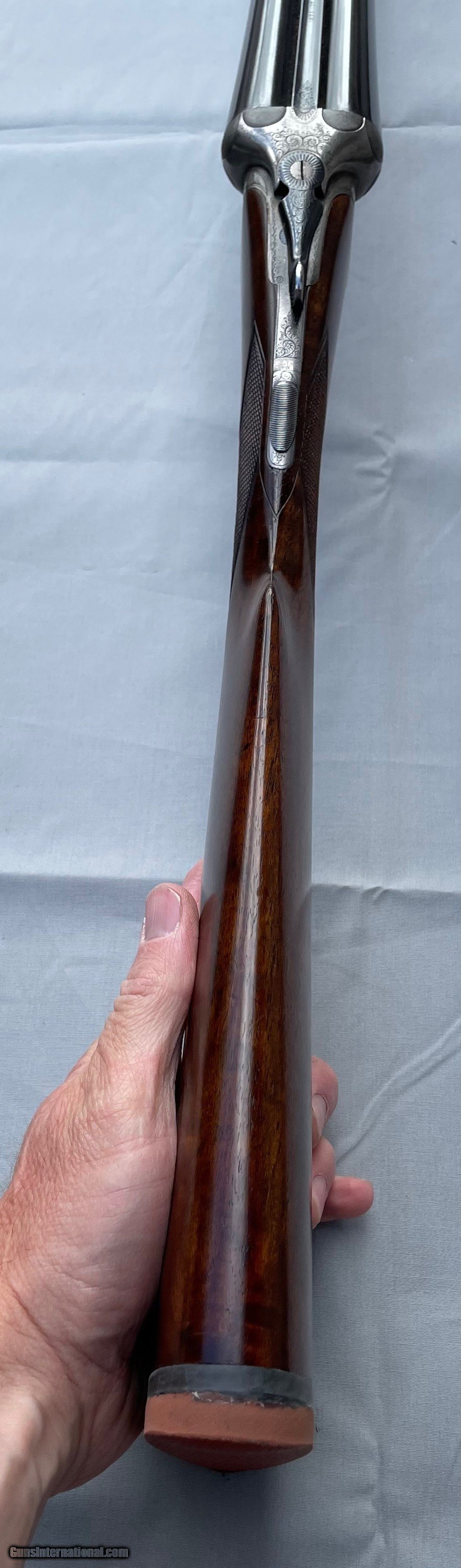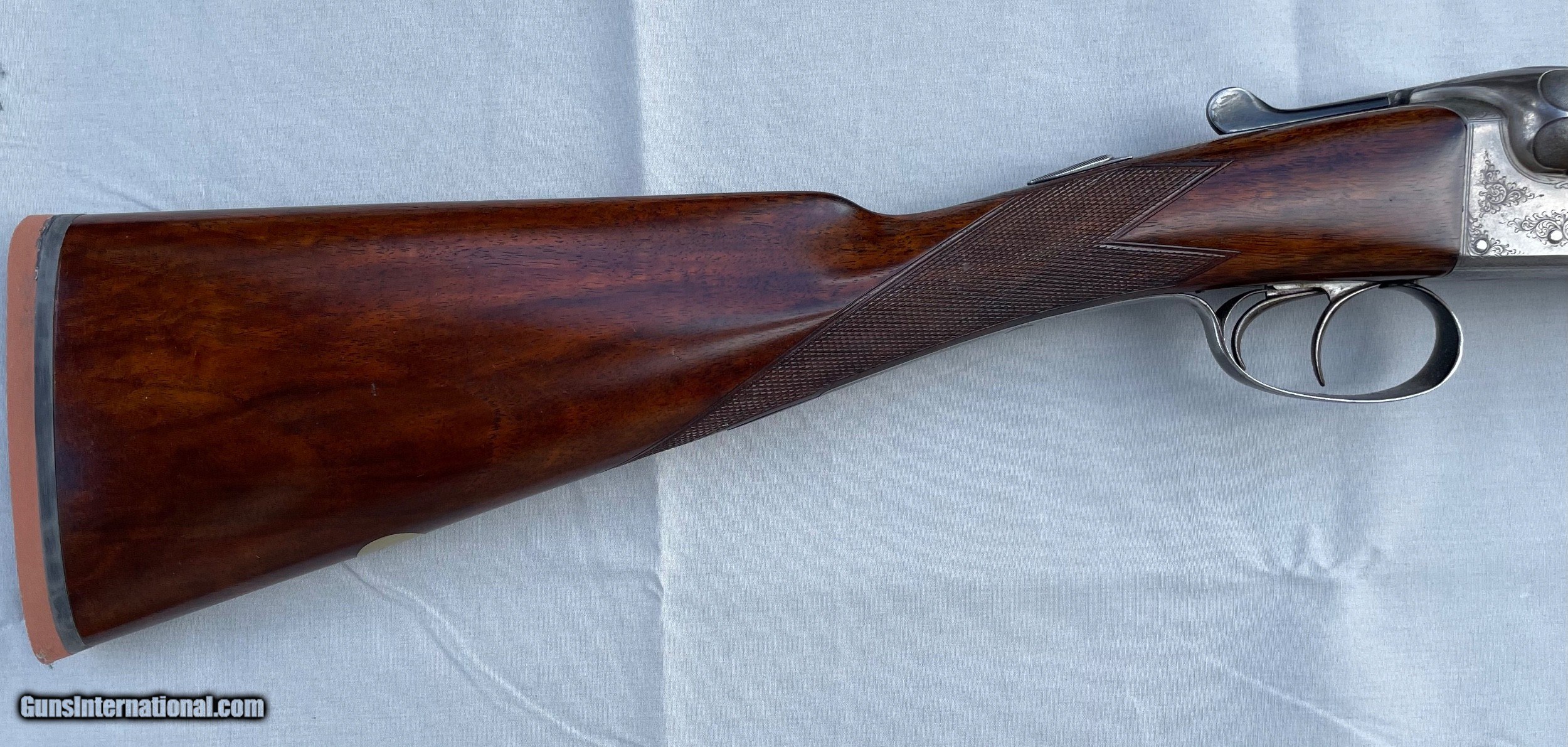 Description: Sold pending funds. This is a dynamite English Double!! It's in excellent shape! DOC 1.5" DOH 2.5" Lop 14.25". weight is 6.25 lb. Chambers are 2.5 inches barrels are 28 inches long. This is a light dynamic shotgun!! You can carry this gun all day and it's a delight to shoot. Chocked IC and MOD. You simply won't find modern guns arhat are this well made and this dynamic for ten times the price. SOLD Curio/Relic: Yes Shotgun Gauge: 12 Gauge Manufacturer: H Monk |