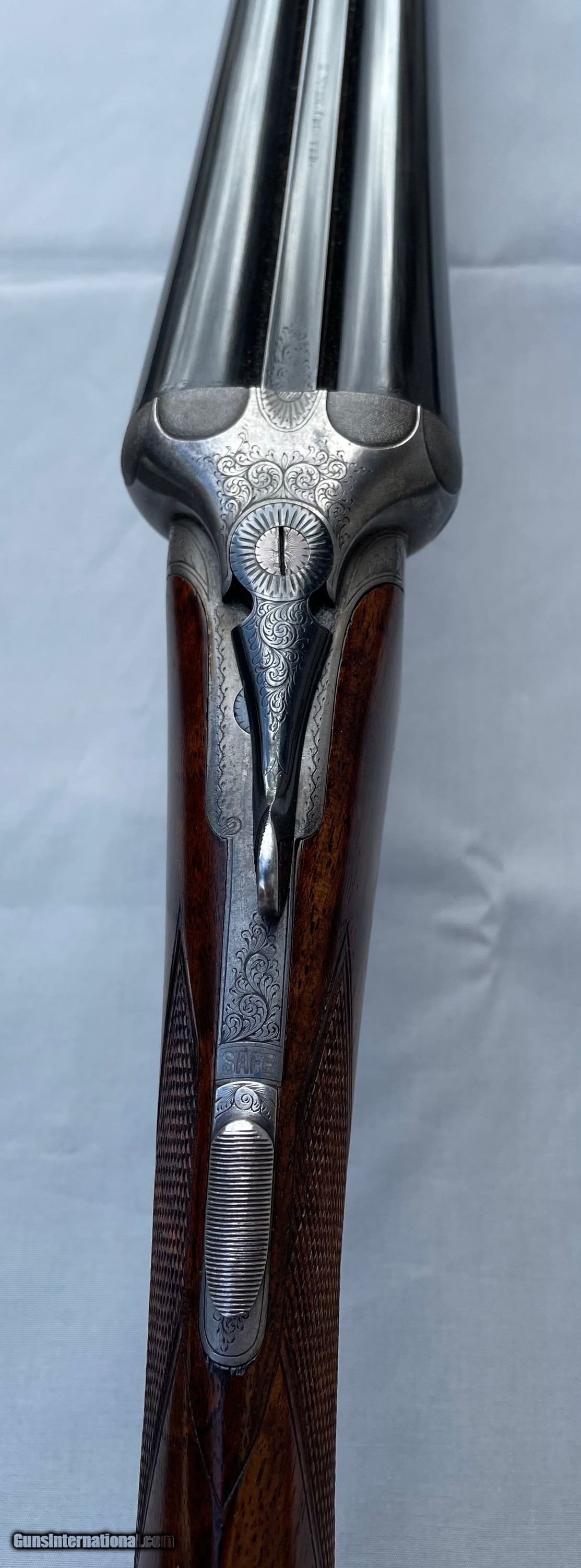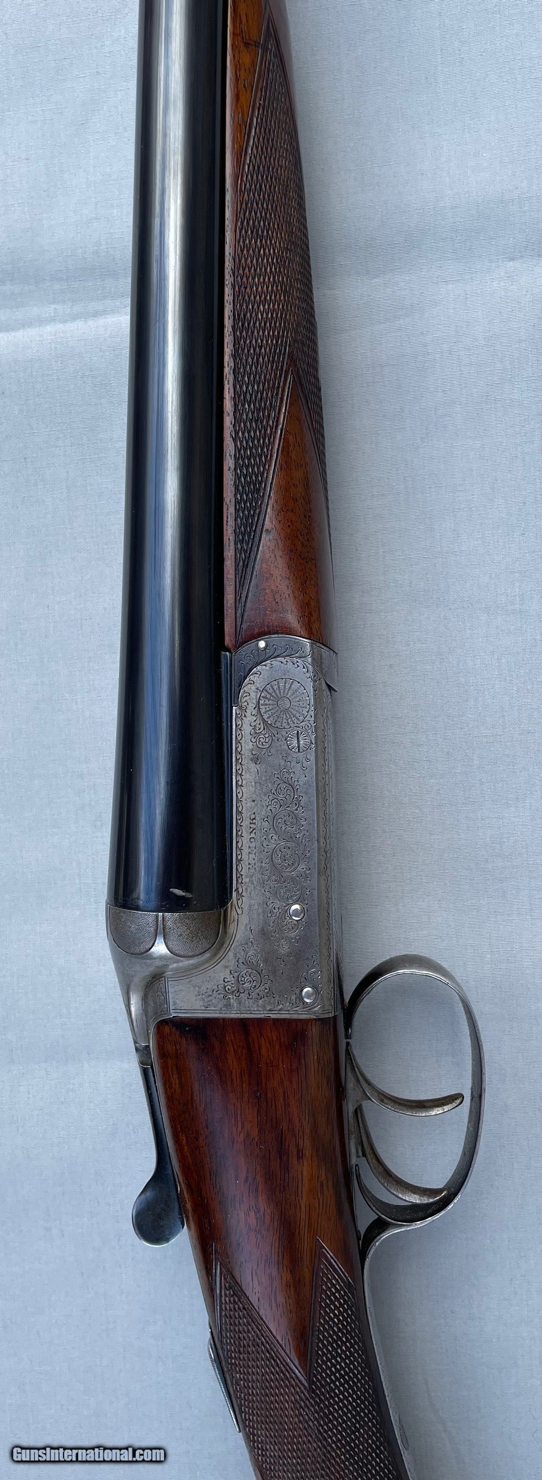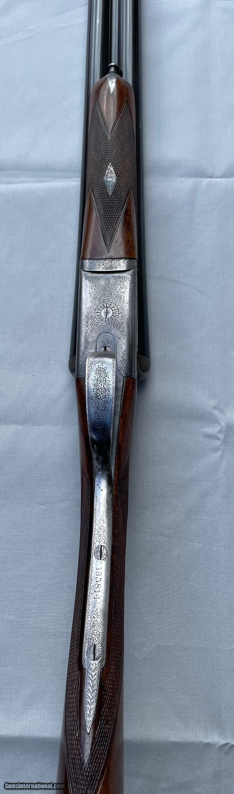 Description: Sold pending funds. This is a dynamite English Double!! It's in excellent shape! DOC 1.5" DOH 2.5" Lop 14.25". weight is 6.25 lb. Chambers are 2.5 inches barrels are 28 inches long. This is a light dynamic shotgun!! You can carry this gun all day and it's a delight to shoot. Chocked IC and MOD. You simply won't find modern guns arhat are this well made and this dynamic for ten times the price. SOLD Curio/Relic: Yes Shotgun Gauge: 12 Gauge Manufacturer: H Monk |