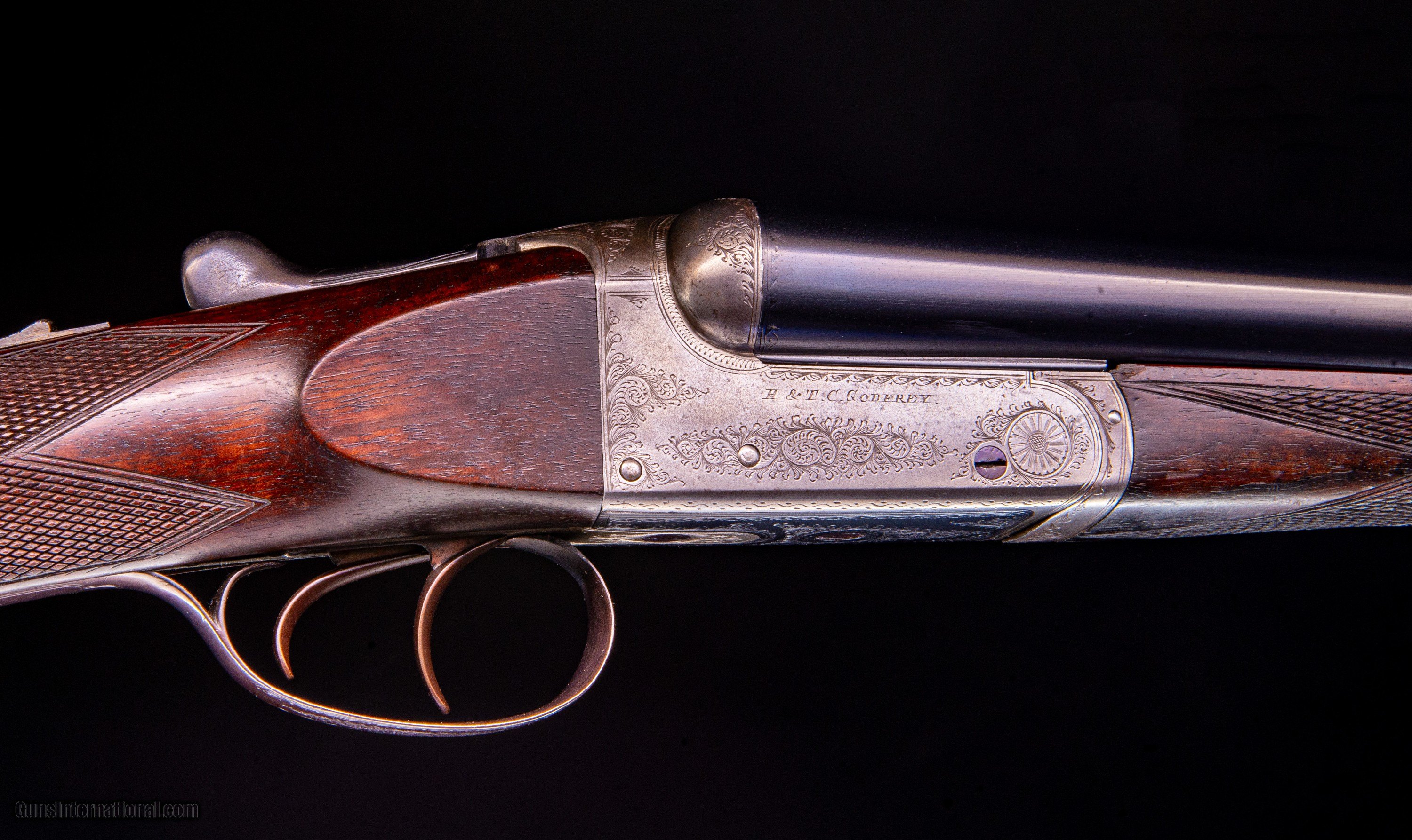 *H & T.C Godfrey are recorded as selling guns out of the market town of Saffron Walden 1955-1970, although some of their guns have earlier proof marks. We make this one 1940. *** Note: To see this gun with high resolution photos and a zoom-in feature, go to the vintagedoubles main site and search for the gun ID: 5990 or browse the main site to see our full gun collection.