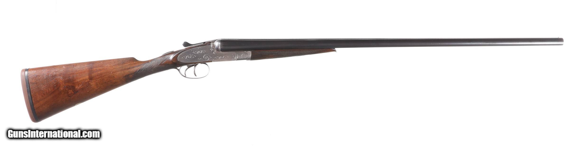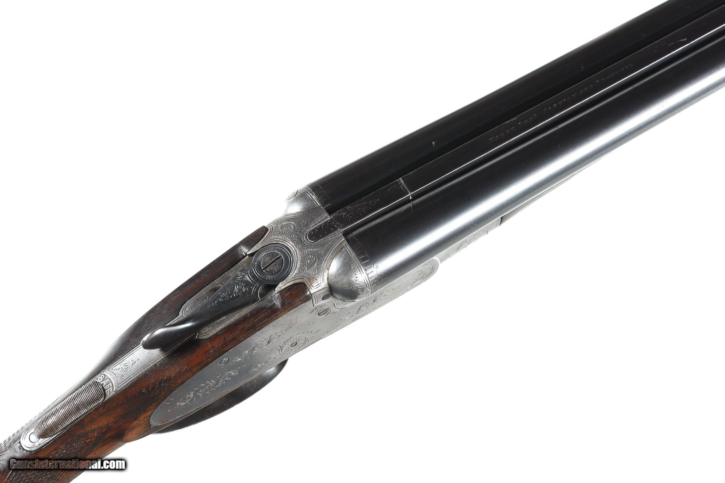 Description: Hardy Brothers double sidelock 20 Ga. with 28" Bbls choked Imp,Cytl & Mod with 2 1/2" chambers. Double triggers with lifters. English straight stock with pad. 14 1/2" LOP 1 1/2" DAC 2 1/4" DAH 5 pnd 9 oz. Condition, Very good with barrels retaining most of their refinish with some prior oxidation showing. Bores are bright and lock us is solid. Receiver and locks remain bright with some softness to the engraving. Stocks are very good full sized and having some minor impressions but no distress. Mechanically fine 5 lbs 9 oz • Free Shipping, No Credit Card Fees. • Lay-a-way available for this firearm. • 1/3 Down, a 1/3 in 30 Days, 1/3 in 60 Days. SOLD Curio/Relic: Yes Manufacturer: Hardy Bros. Model: Sidelock Serial Number: 62579 Barrel Length: 28 |