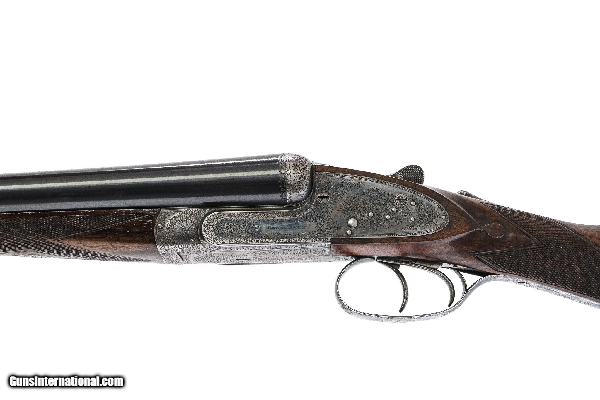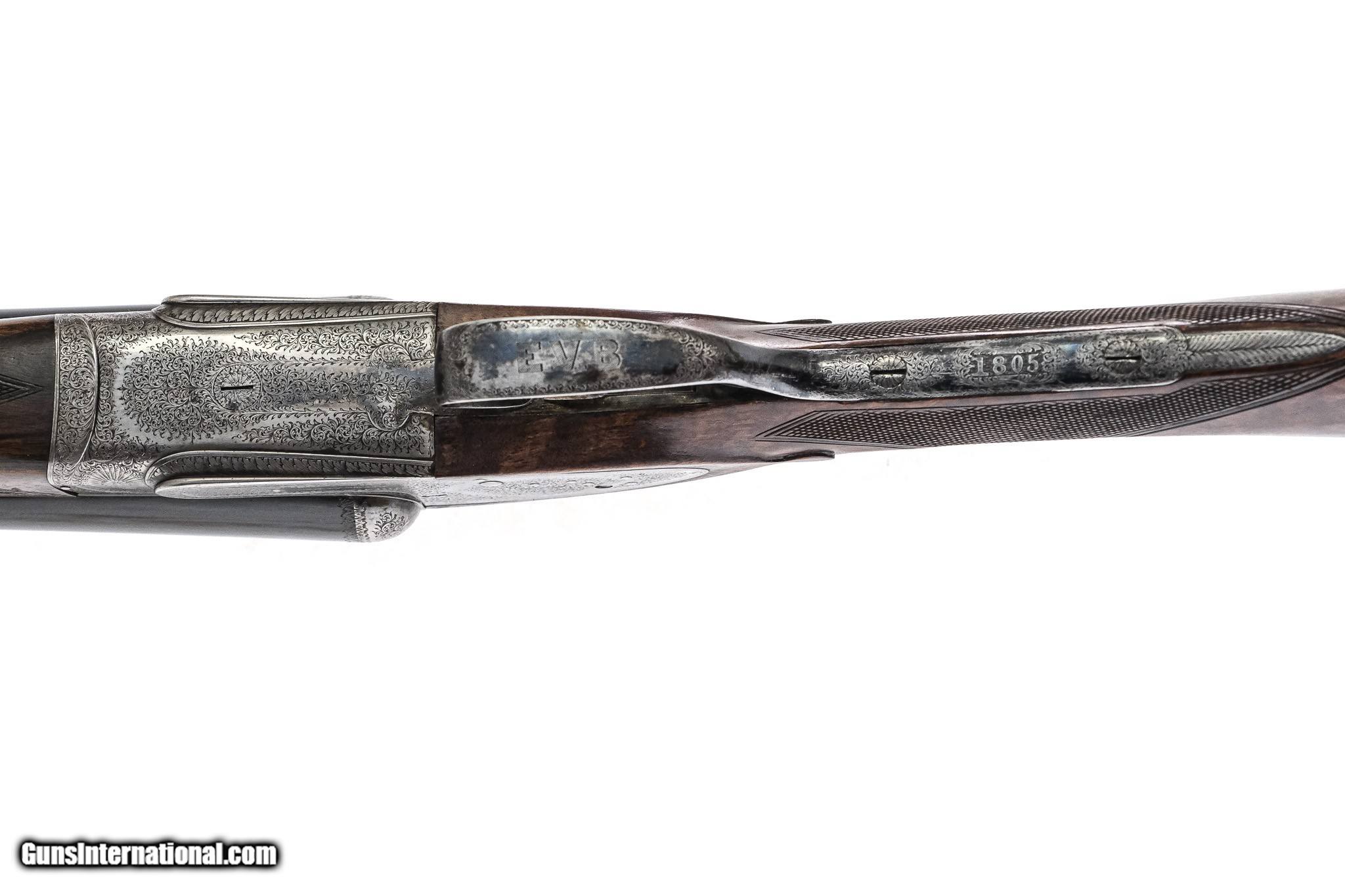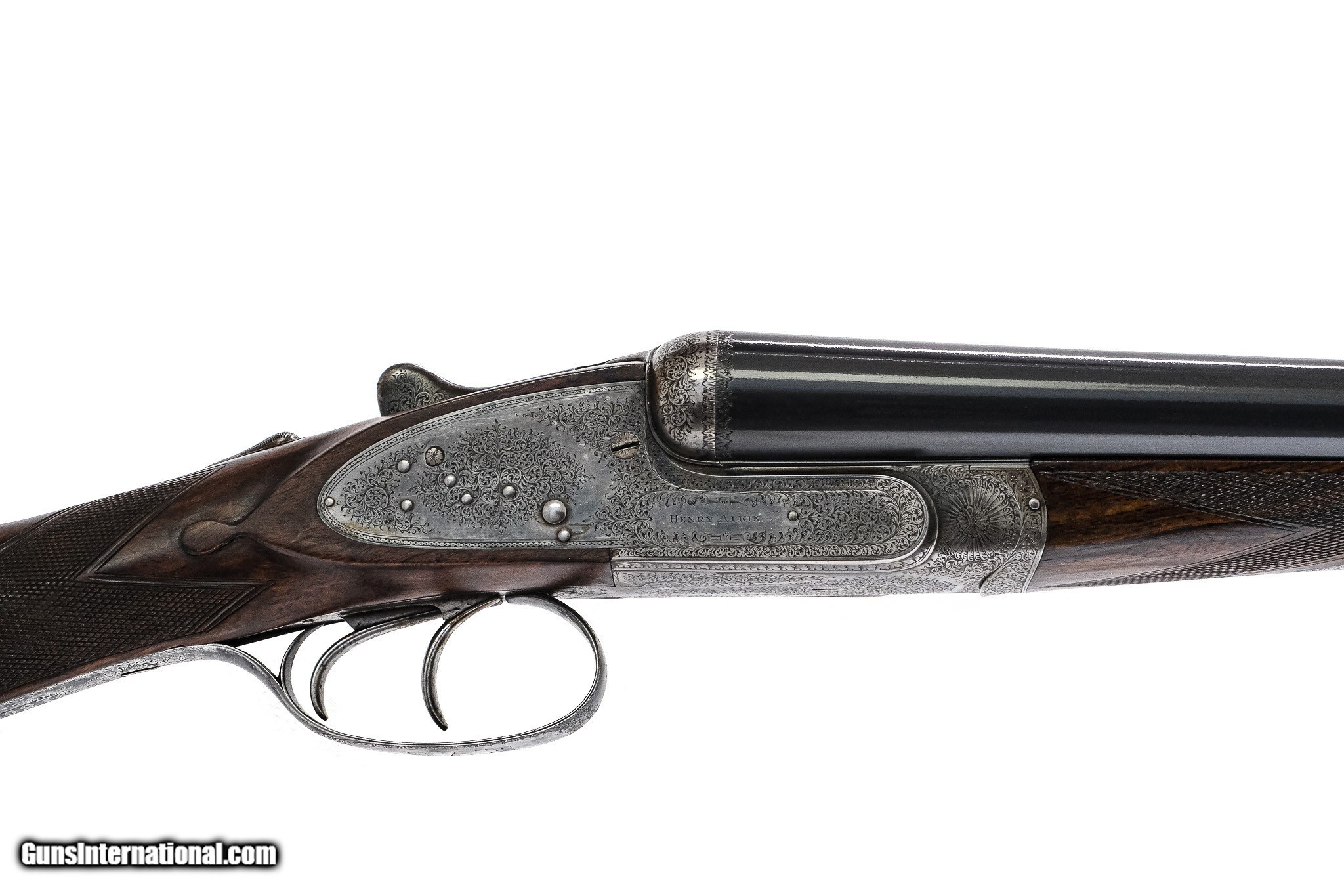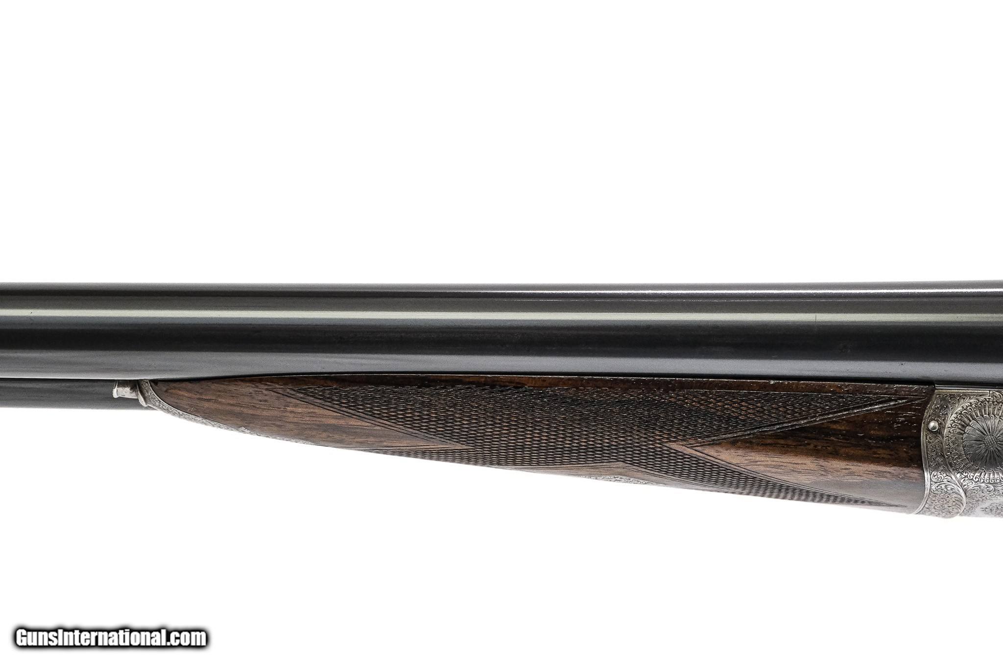 Description: Henry Atkin - Pre-War, SxS, 12ga. 28" Barrels Choked CYL/CYL. Straight grip with diamond wrist and checkered butt, double triggers, automatic ejectors, drop points, splinter forend, game rib, pre-war full sidelock shotgun featuring the highest quality workmanship, beautiful miniature scroll engraving which remains sharp, traces of case coloring, gun remains tight and is extremely clean throughout, available for immediate delivery. Inv: 25491 6 lbs. 0 oz. 14 ¼” x 1 ½” x 2 3/8” $7,999.00 SOLD |