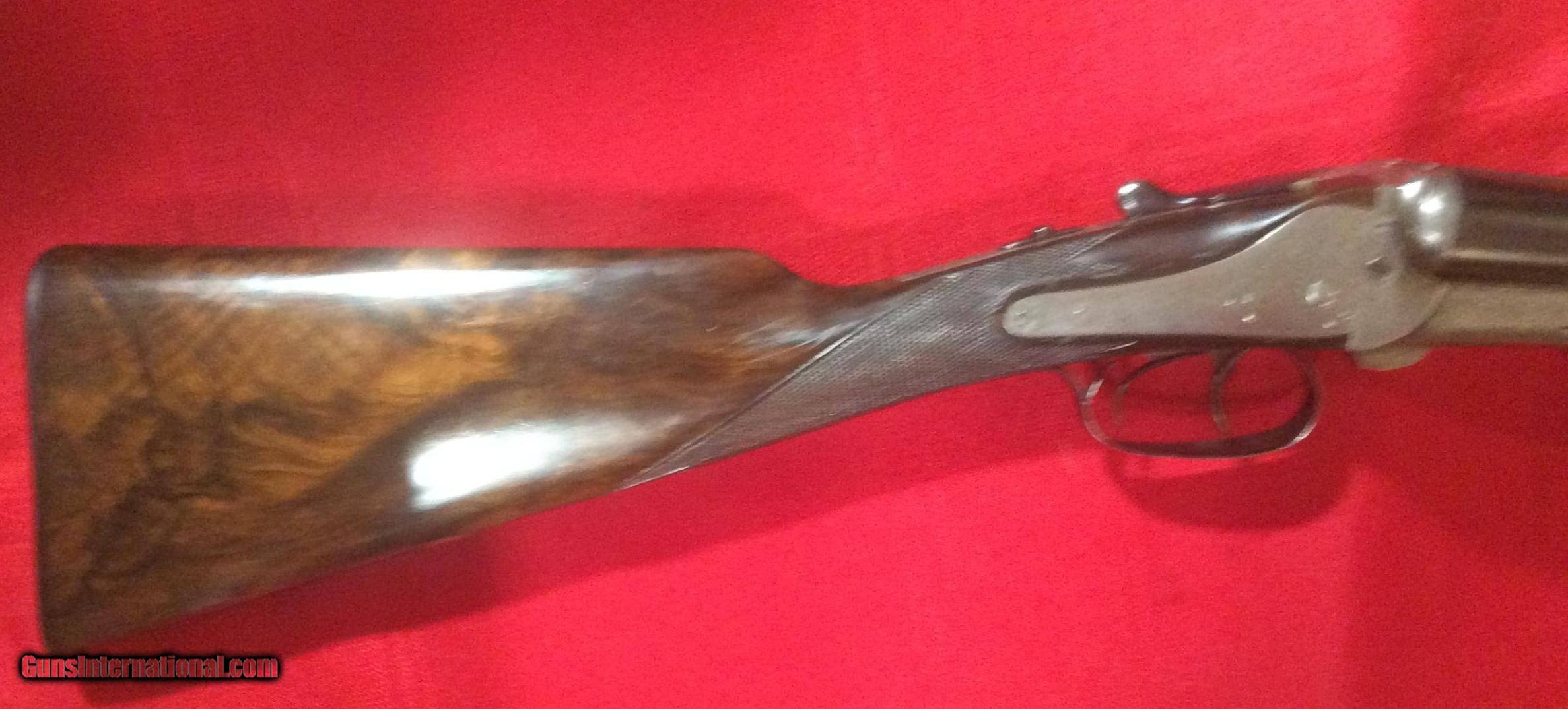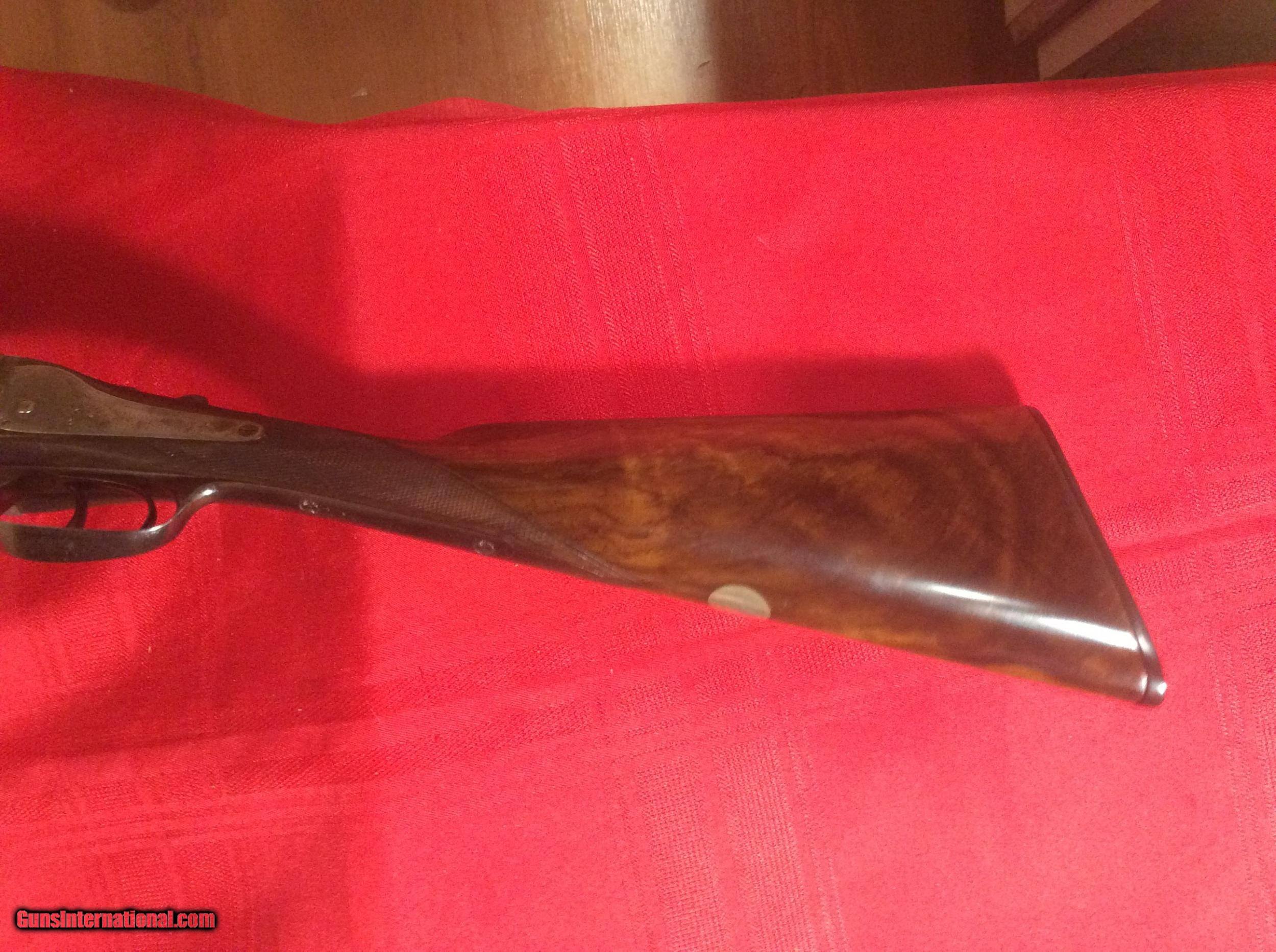 Description: Henry Atkin 12 gauge side lock ejector. Made 1887.30" barrels C/F. .021 barrel walls. .735 bores. Nitro proof 3 tons. Anson & Deely fore end. Needham ejectors. Westley Richards type top lever. 1 3/4" X 2 3/4" X 14".to plate, no cast. Finely checkered stock, nicely engraved action. 1887. 6 lbs. 12 oz. SOLD Antique: Yes Shotgun Gauge: 12 Gauge |