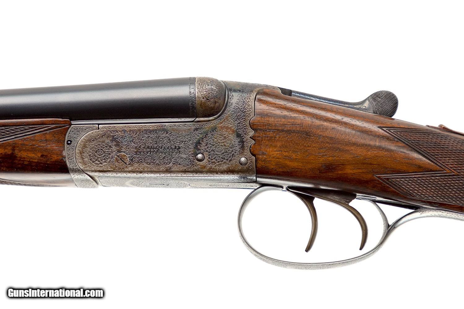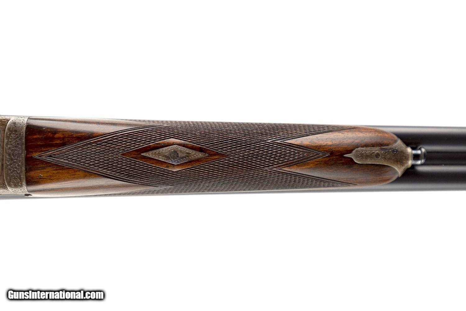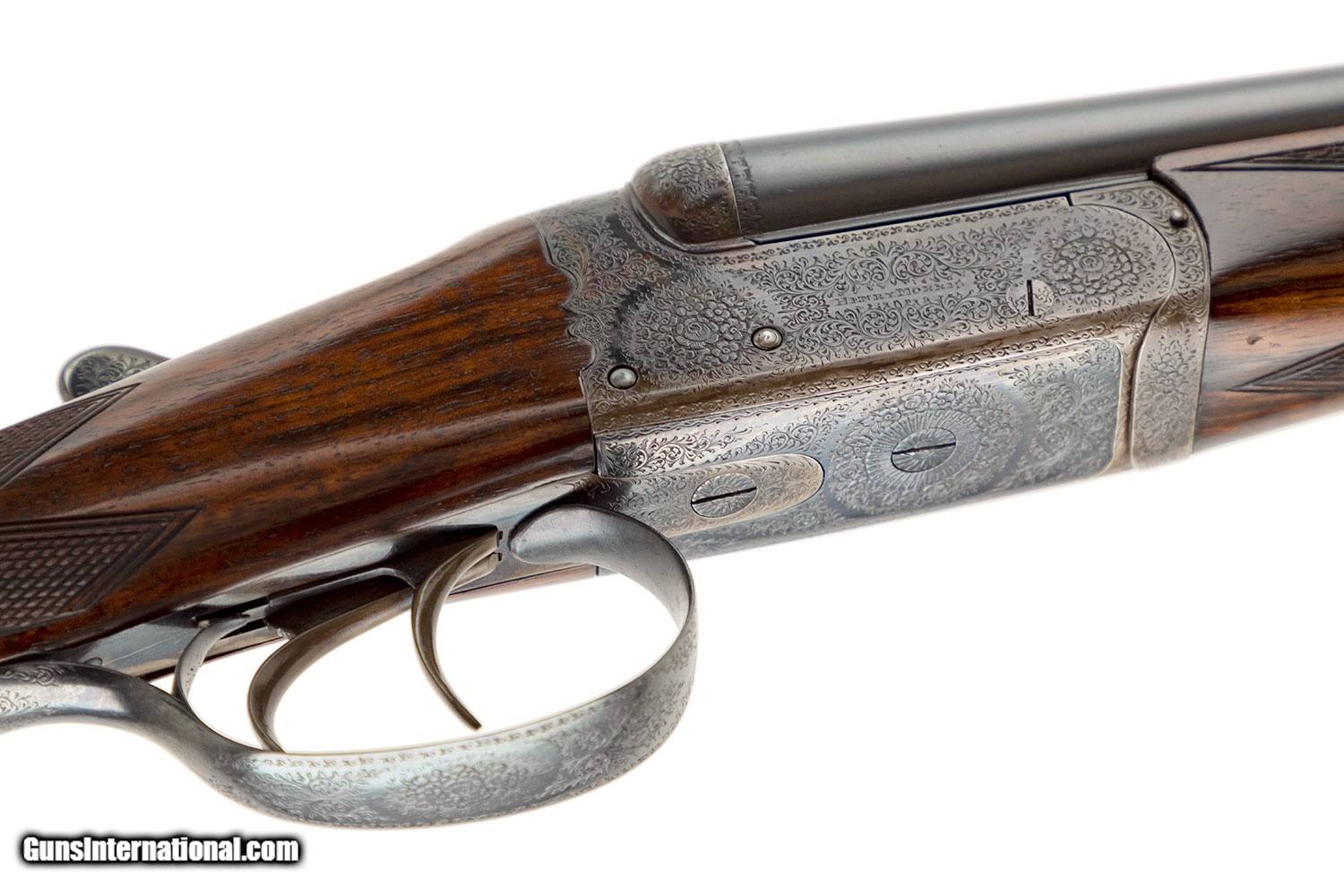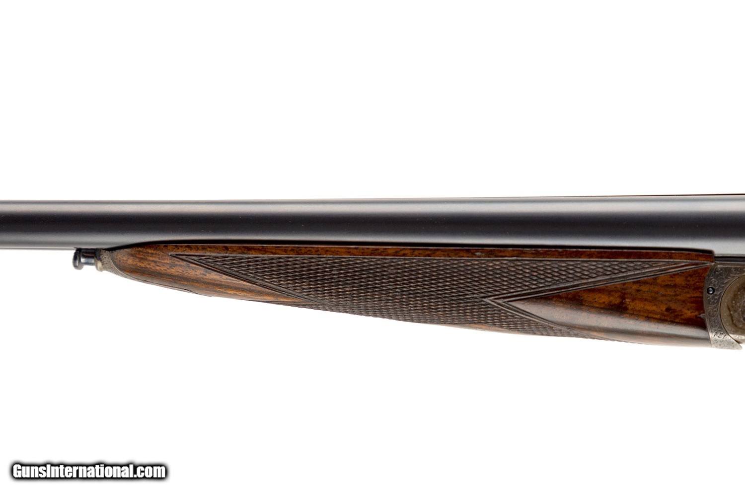 Description: SN# 19XX 29" SOLID RIB BARRELS (.022 AND .024 CONSTRICTIONS) 3" CHAMBERS BIRMINGHAM PROOF; NP 3" 5 TON 7/16 OZ DOUBLE TRIGGERS EJECTORS SPLINTER FOREARM ENGLISH GRIP RECOIL PAD GREAT CONDITION 4LBS 6 OZ 2" DAH 1 1/2" DAC 14" LOP CASED SOLD |
