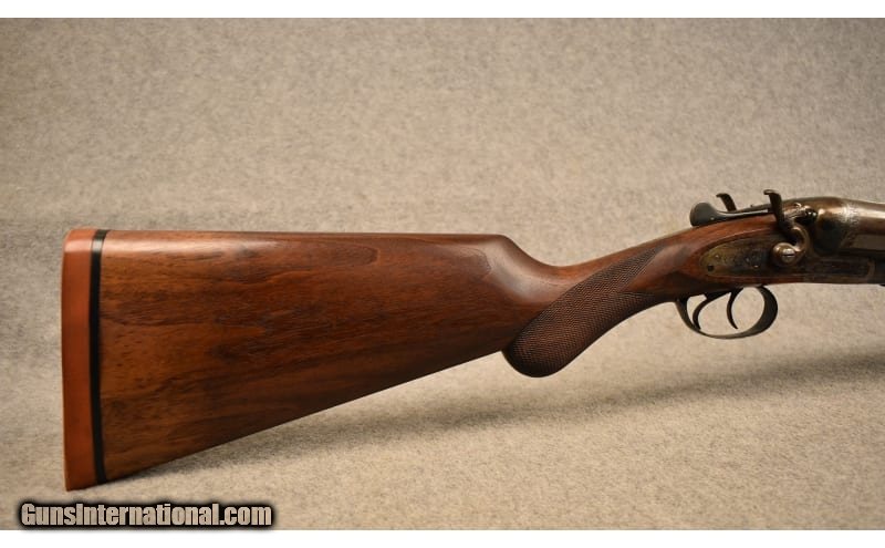 Description: This J & W Tolley 10 gauge is in very good condition for its age. Manufactured around the turn of the century, the damascus barrel and scroll work are in very good condition. The stock is probably not original. Nice addition to any collection. 10 Gauge SOLD Chambers: 10 gauge side by side Metal Condition: Very Good Wood Condition: Very Good Bore Condition: Very Good Barrels: 32" Damascus Stock Dimensions: LOP 15" and 15 1/2 Fore End: Wood Butt Pad: Rubber Weight: 8 Sights: Front Bead Item Location: Kansas City, KS |