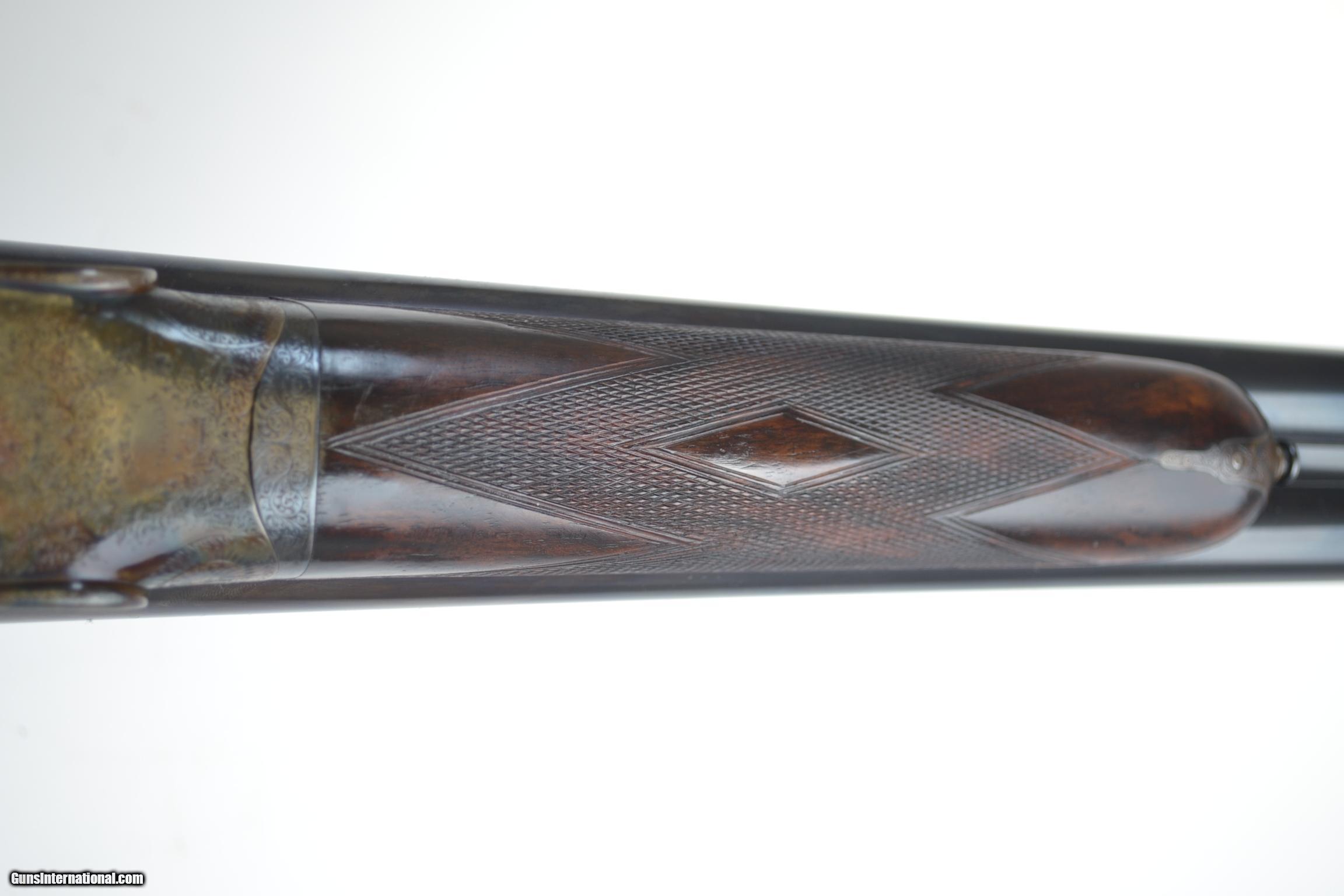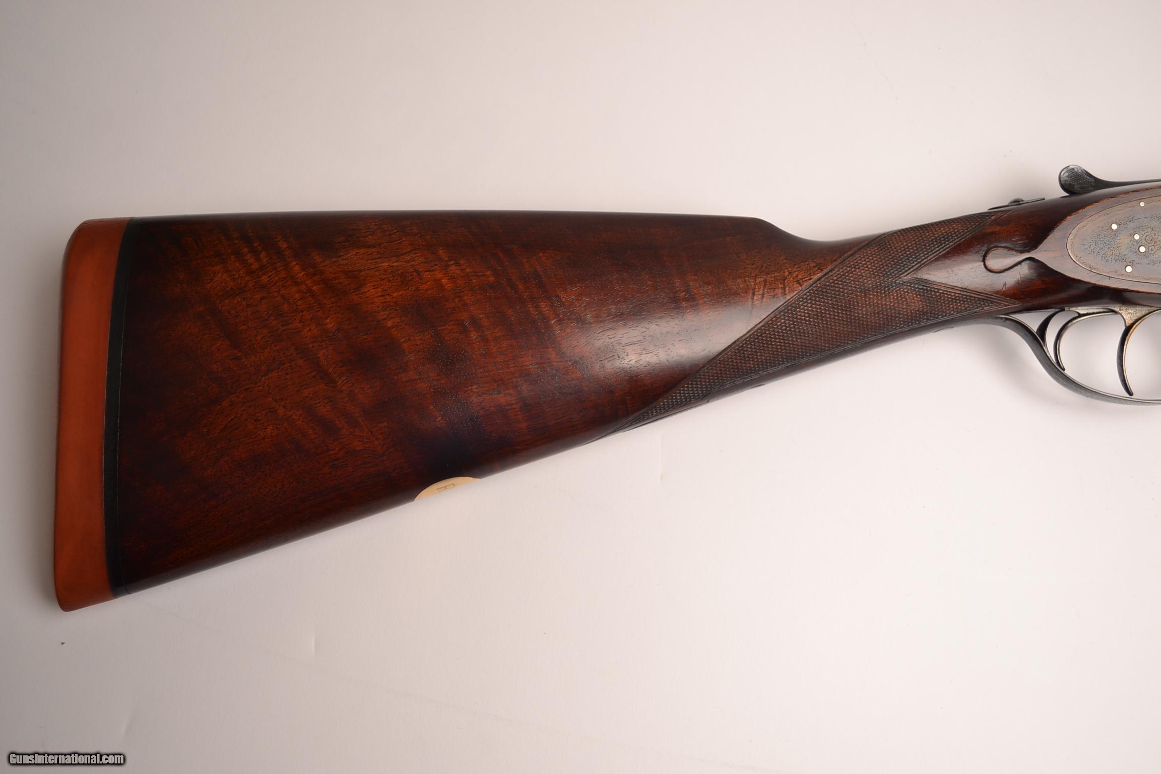 Description: James Purdey & Sons - Matched Pair, 12ga. 30” barrels choked M/F. Consecutive serial numbers, straight grip, pads, double trigger, AE, Whitworths steel barrels, marked 1 & 2. Splinter forend, completely London quality refinish, sharp engraving. Older guns that present themselves very well, excellent wood, motor case. Call for more details. A great value. Inv# 37919 & 37920 LOP – 14 ¾” + Price - $24,900.00 for pair SOLD |