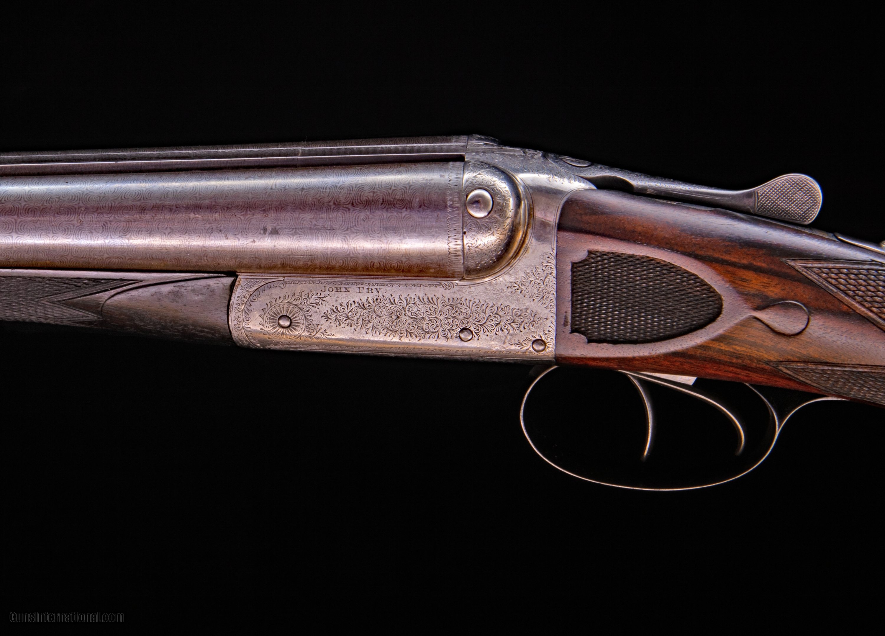 Description: Boxlocks - I do not know a lot about John Fry but that he was a gunmaker in the town of Derby in England. He was a direct descendent of William Fry, a gunmaker in Derby established in 1847. If you put a scope cross hair on a map of England, you would center it about right on the town of Derby. Derby is the original home of Rolls Royce. Condition: