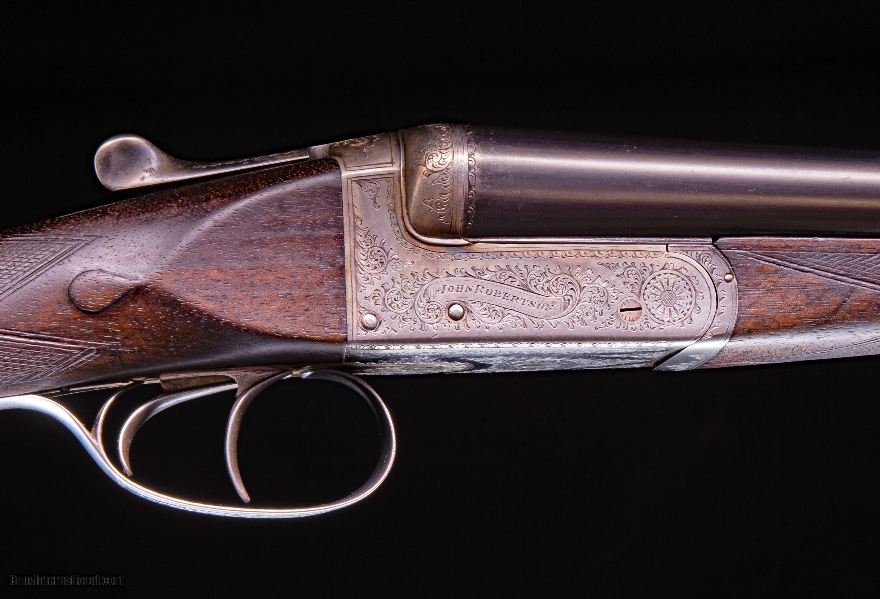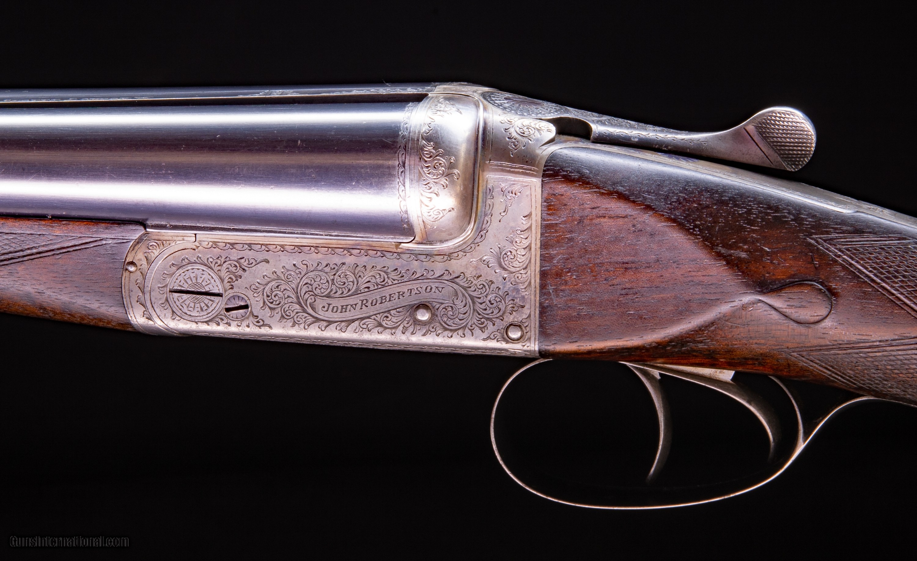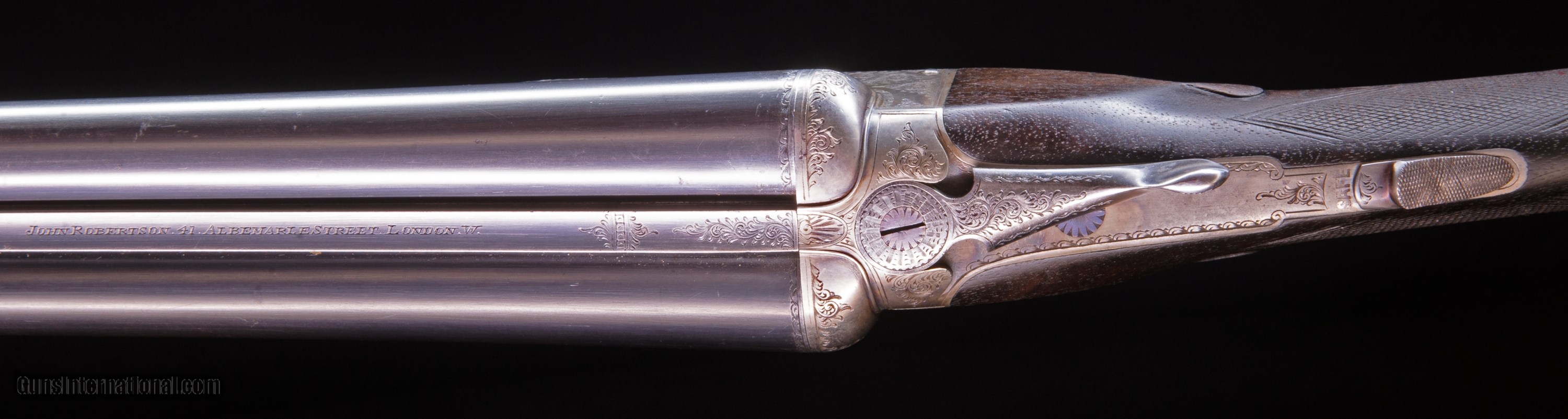 "Before World War I the British market was dominant, but this changed to the American market after the war. Some boxlocks were produced for the first time in the history of the firm. These boxlocks, of superb quality, were usually sold bearing the name "Robertson.""