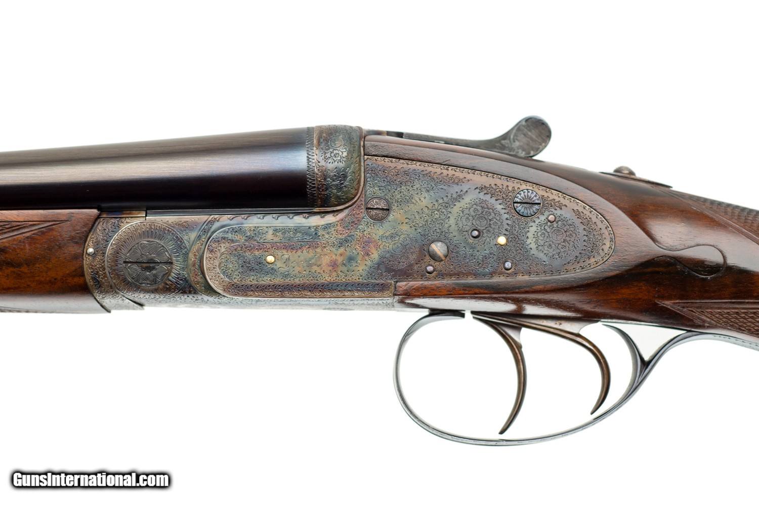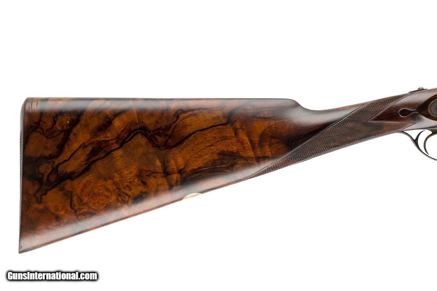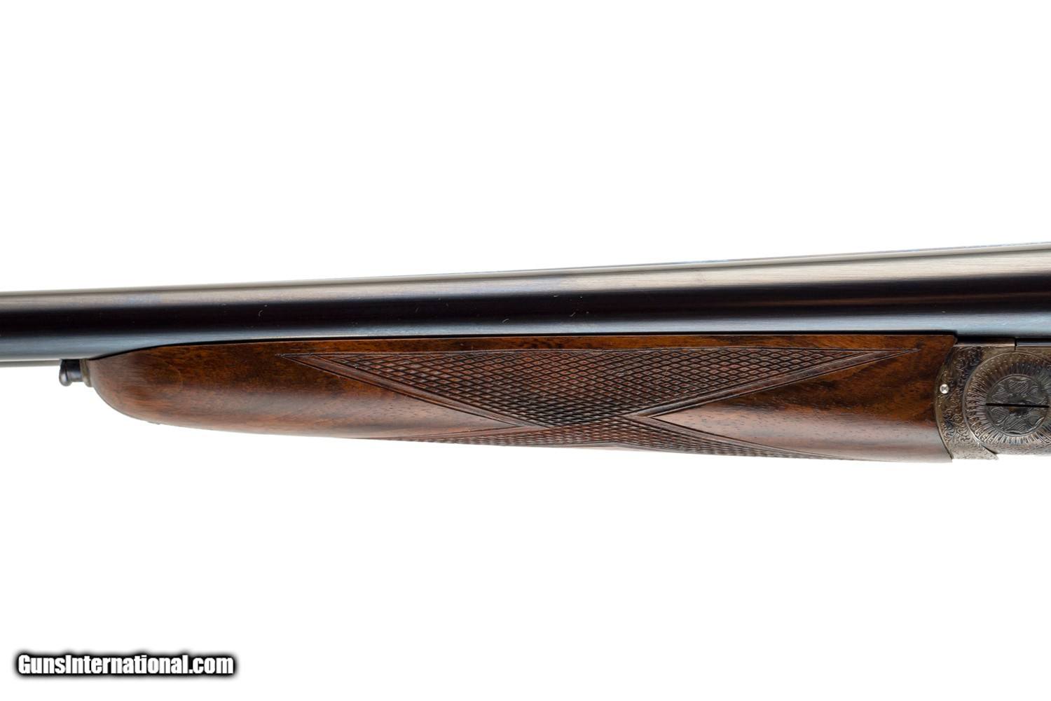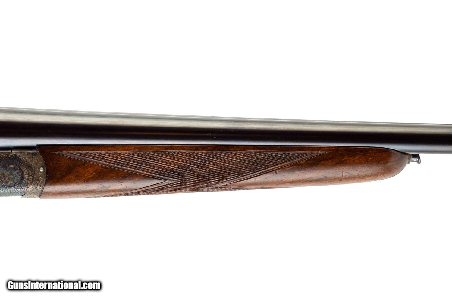 Description: 26" FULL AND FULL 3" CHAMBERS DOUBLE TRIGGER EJECTORS SPLINTER FOREARM ENGLISH GRIP CHECKERED BUTT MAKERS CASE AS NEW 4LBS 14 OZ 2 1/4 DAH 1 3/8 DAC 14 3/4 LOP SOLD |