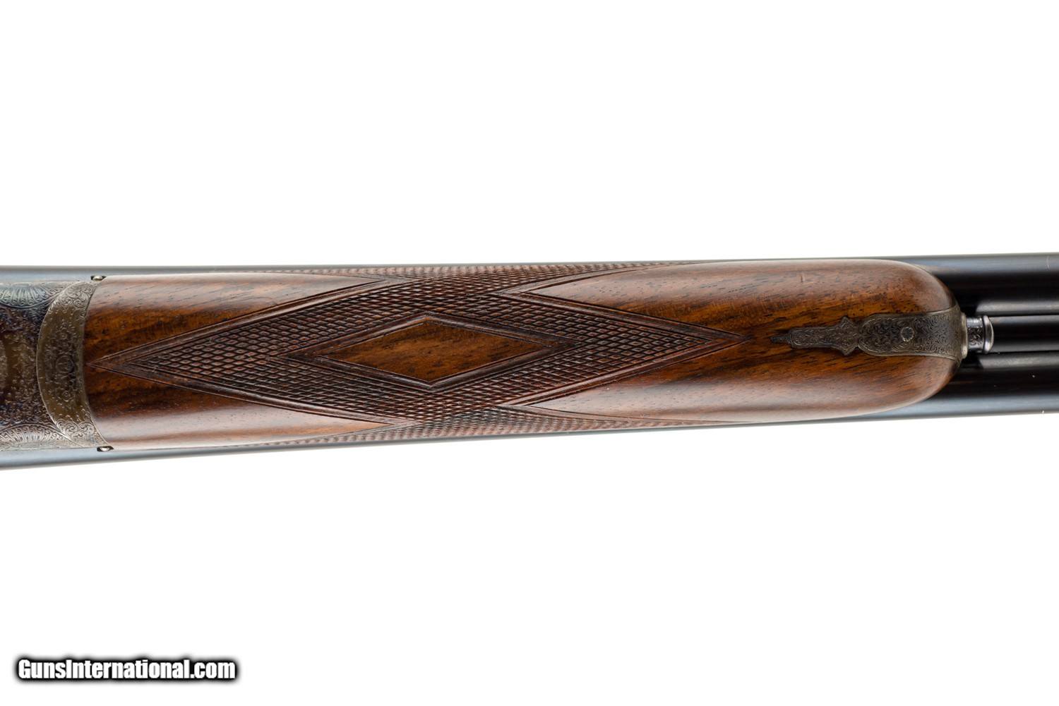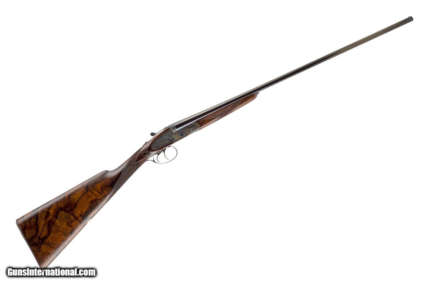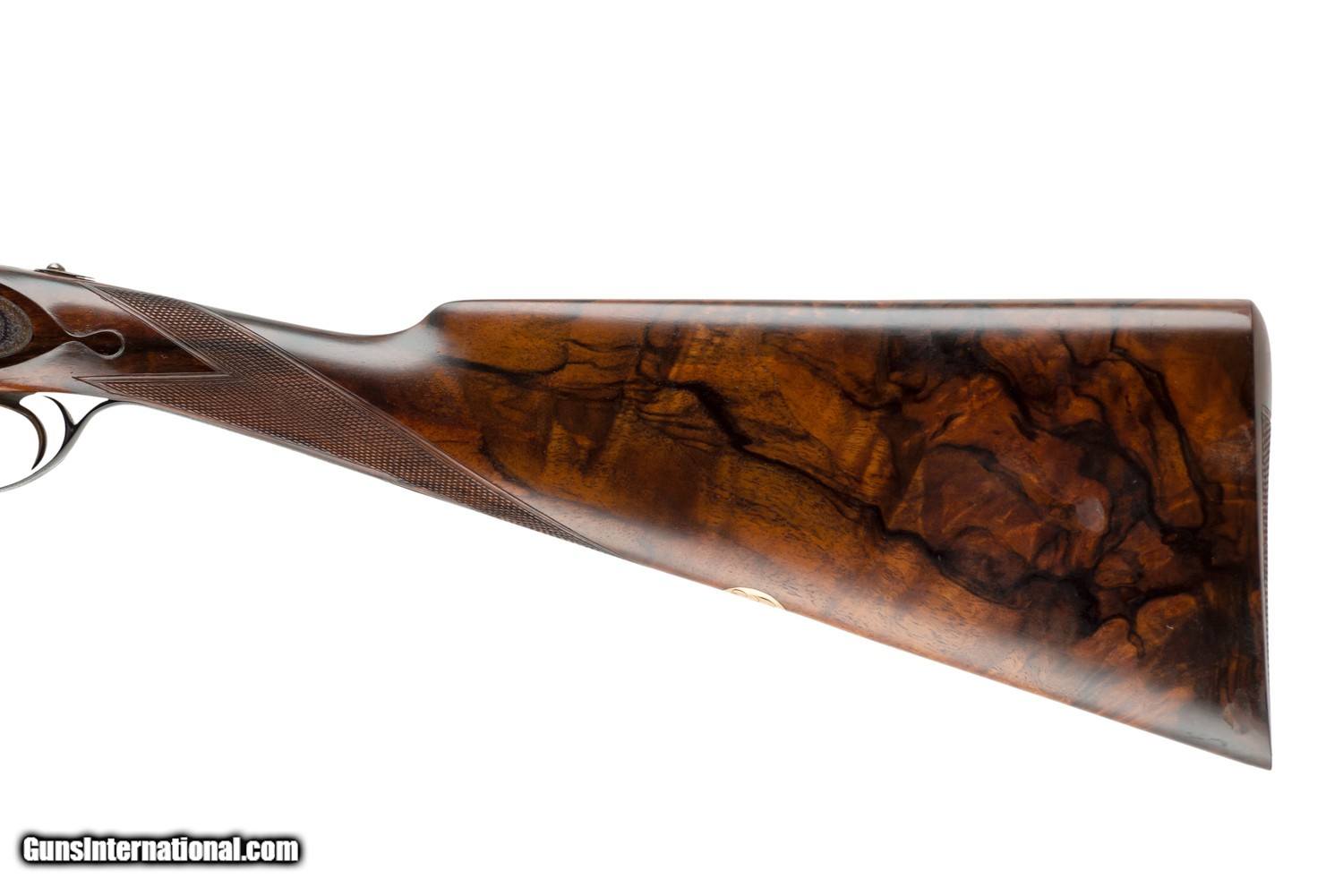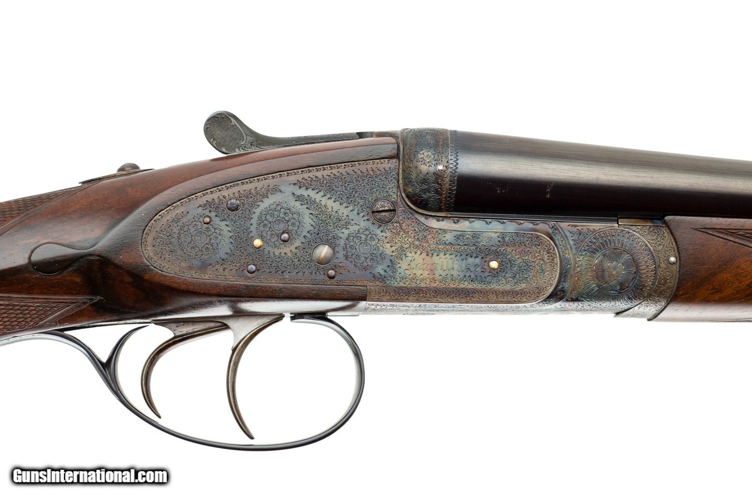 Description: 26" FULL AND FULL 3" CHAMBERS DOUBLE TRIGGER EJECTORS SPLINTER FOREARM ENGLISH GRIP CHECKERED BUTT MAKERS CASE AS NEW 4LBS 14 OZ 2 1/4 DAH 1 3/8 DAC 14 3/4 LOP SOLD |