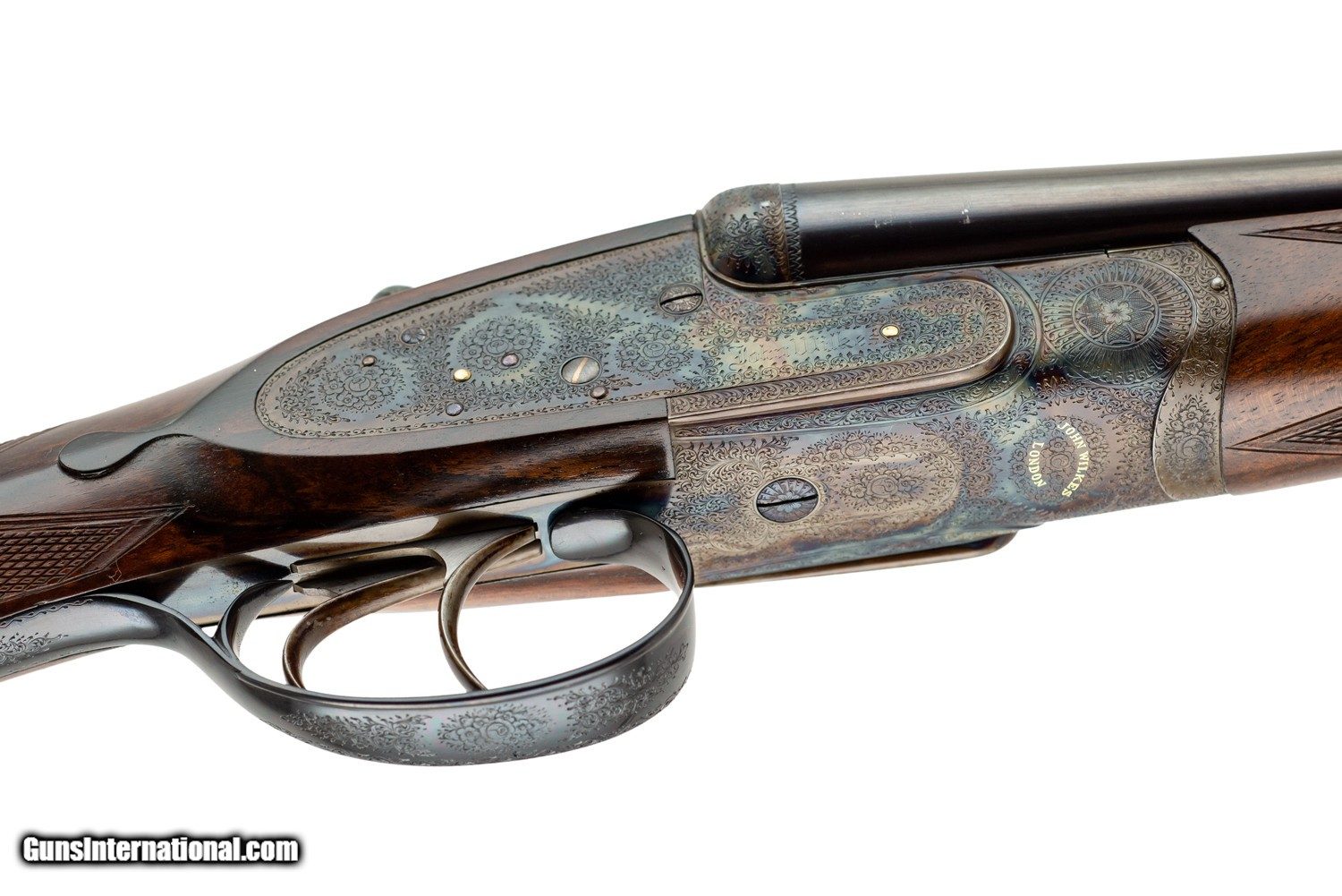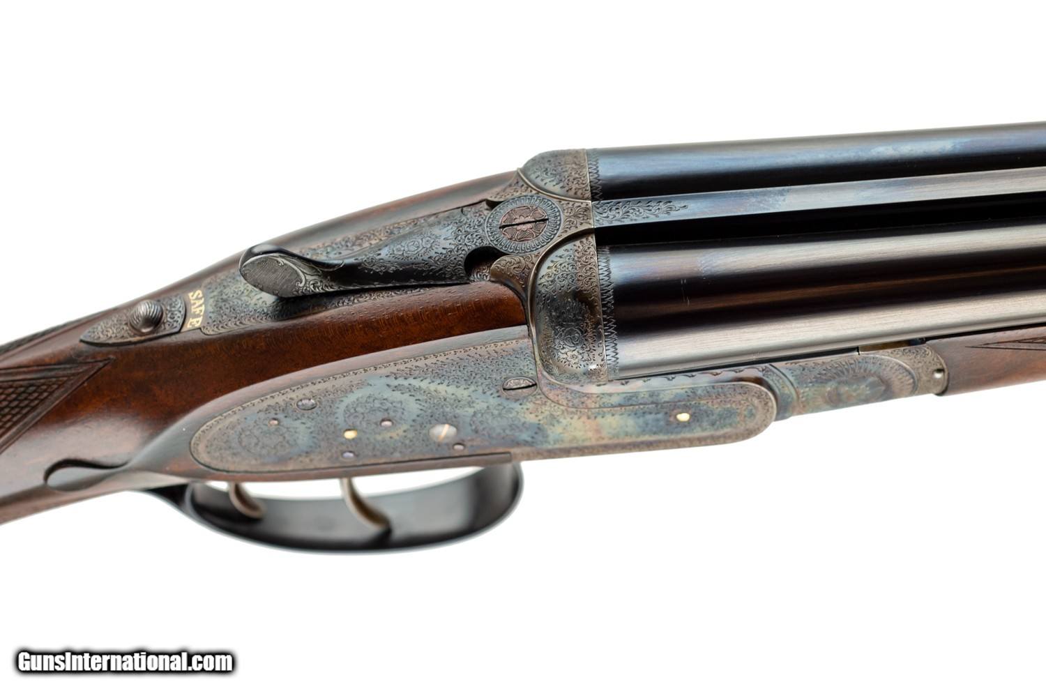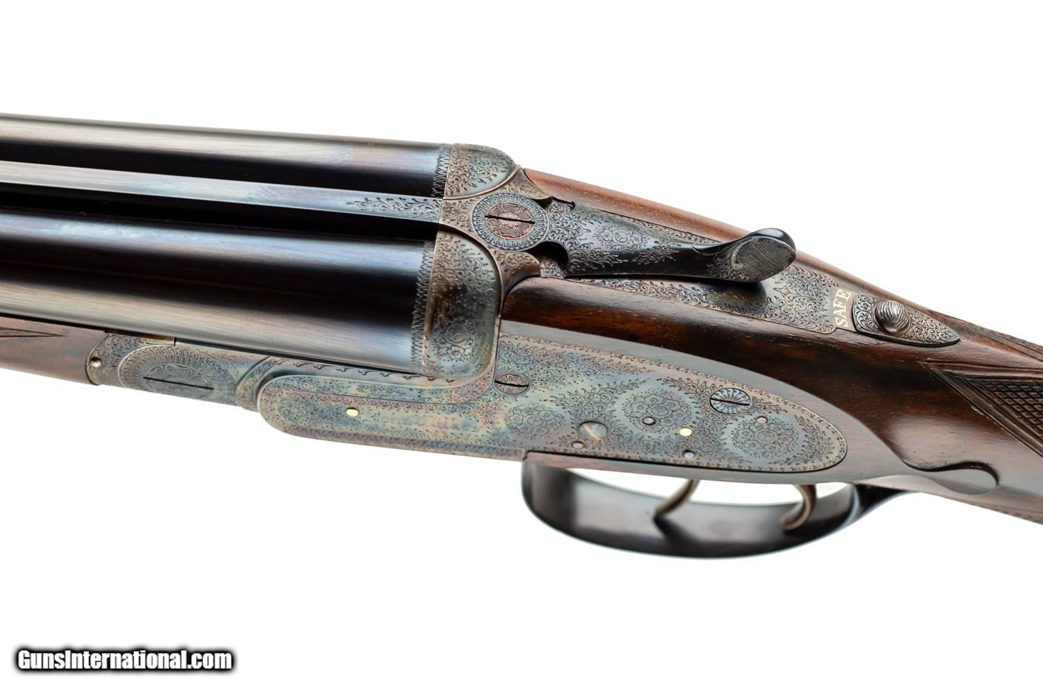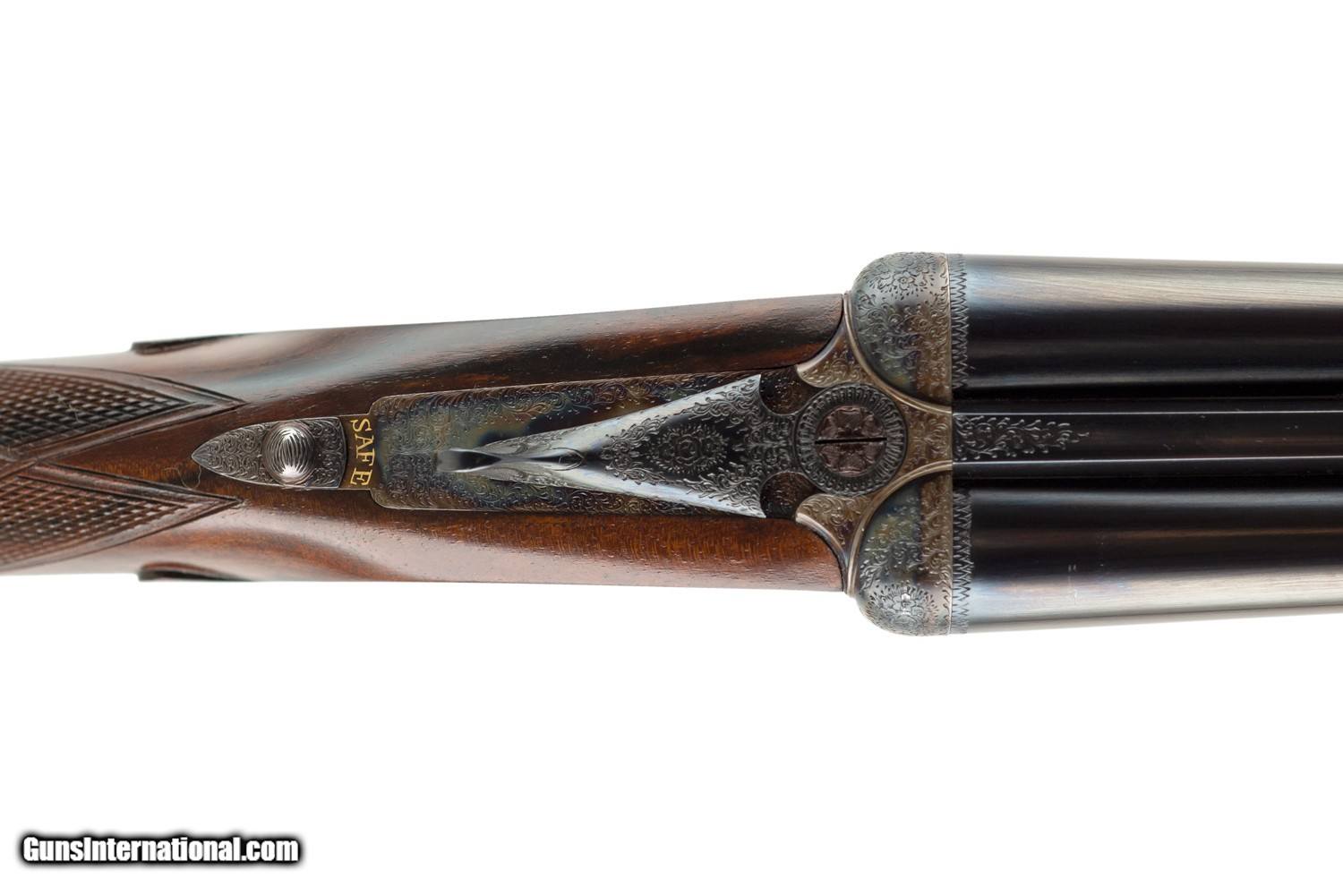 Description: 26" FULL AND FULL 3" CHAMBERS DOUBLE TRIGGER EJECTORS SPLINTER FOREARM ENGLISH GRIP CHECKERED BUTT MAKERS CASE AS NEW 4LBS 14 OZ 2 1/4 DAH 1 3/8 DAC 14 3/4 LOP SOLD |