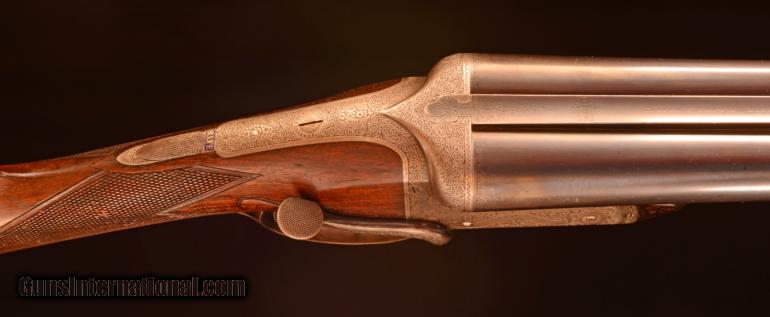 Description: Side lever, elegantly engraved, This gun wreaks quality! Many fine features include over hanging sears, and auto ejectors. Smythe has a very interesting history. Try this link for an interesting read how he blew up the town! ://thenorthernecho.co.uk/features/blogs/staff/echomemories/4586360.How_bowls_began_with_a_bang/ SOLD Manufacturer: Joseph F. Smythe Serial Number: 1197 Ejectors: Yes Barrels: 29\ Barrel Type: Steel Action: Boxlock ejector Gauge Info: 12 gauge Stock Comb: 1 1/2\ Stock Heel: 2\ Stock Cast: 1/8\ LOP: 14 3/4\" over Leathe Weight: 6 lbs. 8 oz. Choke Left: .012 IC Choke Right: .004 Skeet 1 Proof:Nitro: Nitro 2 1/2\" 3 Tons Minimum Wall Thickness Left: .020 Minimum Wall Thickness Right: .025