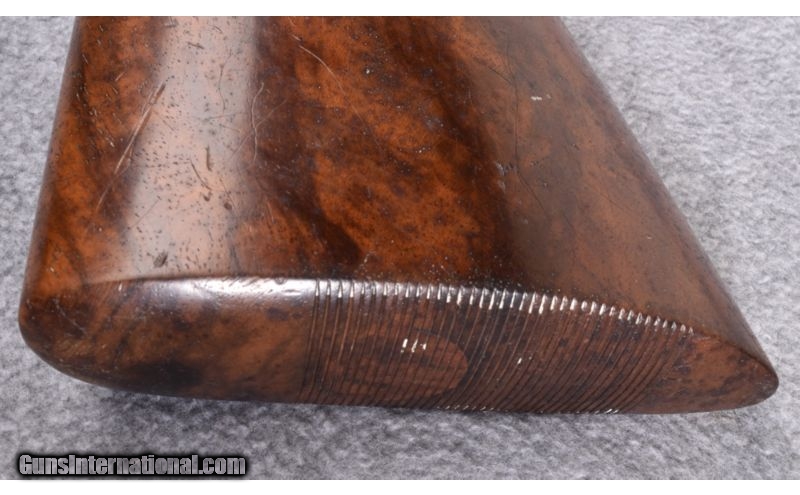 Description: Action show no remaining case color and barrels are turning a brownish patina. Bores are bright and excellent and action remains tight. Wood shows hunting marks with worn checkering. Cast for a right hand shooter. SOLD Manufacturer: S/N 16XXX Caliber Info: 12 GA Chambers: 2 3/4" with Ejectors & Automatic Safety Metal Condition: Good Wood Condition: Fair Bore Condition: Excellent Barrels: 28 Triggers: Double Stock: Checkered Walnut English Grip Stock Dimensions: 14 3/8" LOP Fore End: Checkered Walnut Splinter Butt Pad: Checkered Weight: 6 1/2 LB Sights: Single Front Bead Chokes: Improved Cylinder/Improved Modified Item Location: Short Pump, VA |