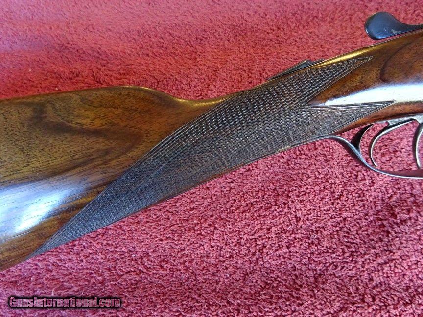 Description: K D RADCLIFFE, COLCHESTER, BIRMINGHAM PROOFS, 12 GAUGE, 25" BARRELS. CHURCHILL RIB, IC AND MODIFIED, EXCELLENT BLUE, MIRROR BRIGHT BORES, AUTOMATIC EJECTORS. COIN FINISH FRAME WITH FINE ENGLISH SCROLLWORK, UNUSUAL SCULPTURED FENCES, ALL METAL NICELY ENGRAVED, TOP LEVER TO THE RIGHT, TIGHT ON FACE. STRAIGHT GRIP STOCK, SPLINTER FOREARM WITH ANSON RELEASE, ENGLISH WALNUT WITH DARK STREAKS, FINE CHECKERING, 1 1/2" 2 1/2" 14 3/8", SOLID PAD, 6 POUNDS .ONE OUNCE NICE ULTRA LIGHT 12 GAUGE. HANDSOME PRE-WAR DOUBLE. 2 1/2" CHAMBERS 1 1/8 PROOF SLIGHT CAST OFF $1750.00 + $50.00 Insured shipping to an FFL address. See all Pats listings We also have hundreds of pieces of ORIGINAL gun company advertising & memorabilia available for sale. We have no reprints or reproductions. Email for more information. SOLD Curio/Relic: Yes |