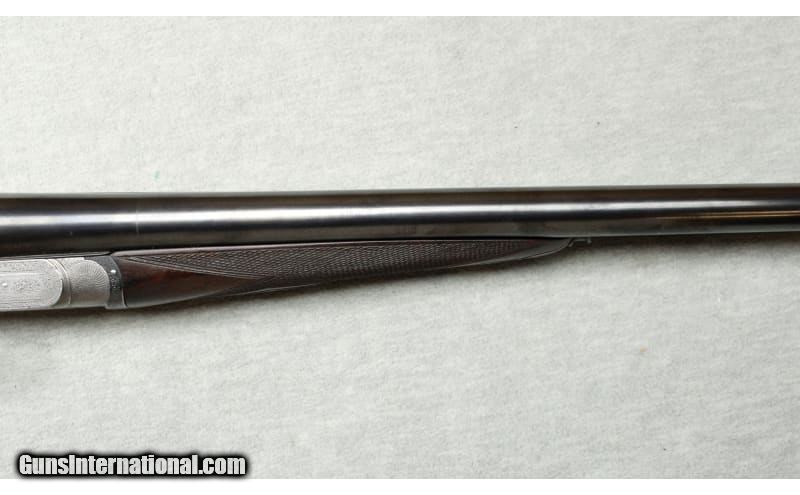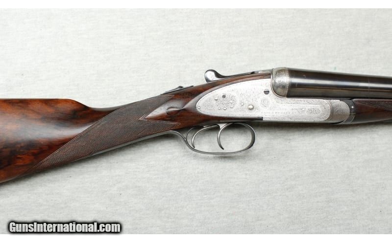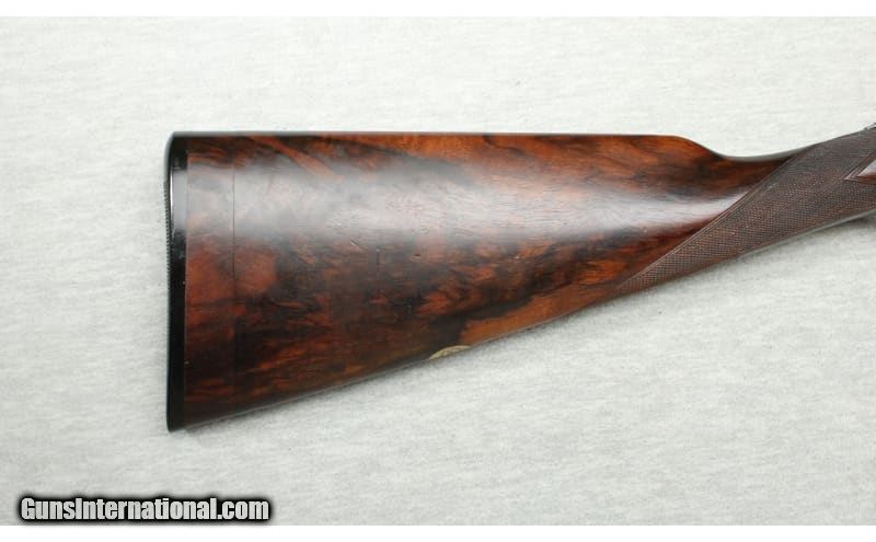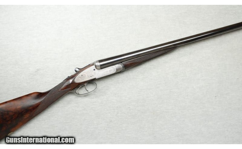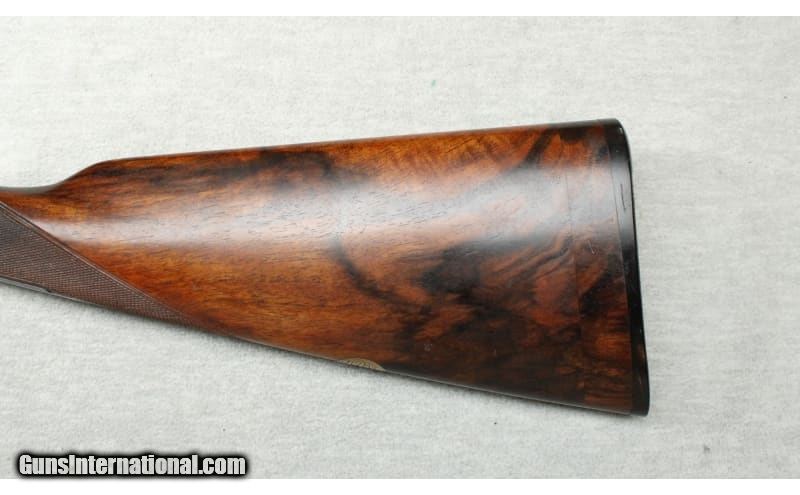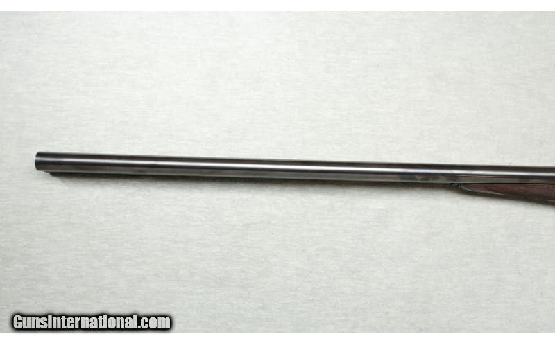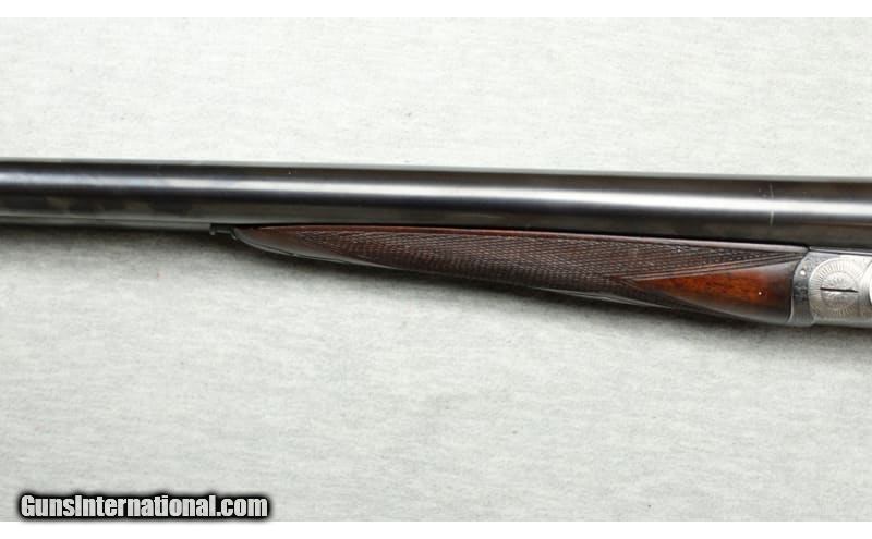 Description: Lang & Hussey "Imperial" Grade Sidelock in 12 gauge. This shotgun is in excellent condition. It features 27 3/4 Inch barrels choked Cylinder/Cylinder with 2 3/4" chambers. It has double triggers and splinter forend with a frontal Anson release. It has a straight stock with a LOP of 14 1/2 inches. It has very nice wood with excellent black/brown contrast. It has very fine rose bouquet and scroll engraving that is very well cut. The barrels inside & out are excellent. No Box. 12 Gauge SOLD Chambers: 2 3/4 Inches Metal Condition: Excellent Wood Condition: Excellent Bore Condition: Bright Triggers: Silver bead on solid rib Stock Dimensions: LOP 14 1/2 Inches Fore End: Splinter forend with a frontal Anson release Butt Pad: Plastic pad Weight: 6 lbs 10 oz Chokes: Cylinder/Cylinder Item Location: La Vista, NE |
