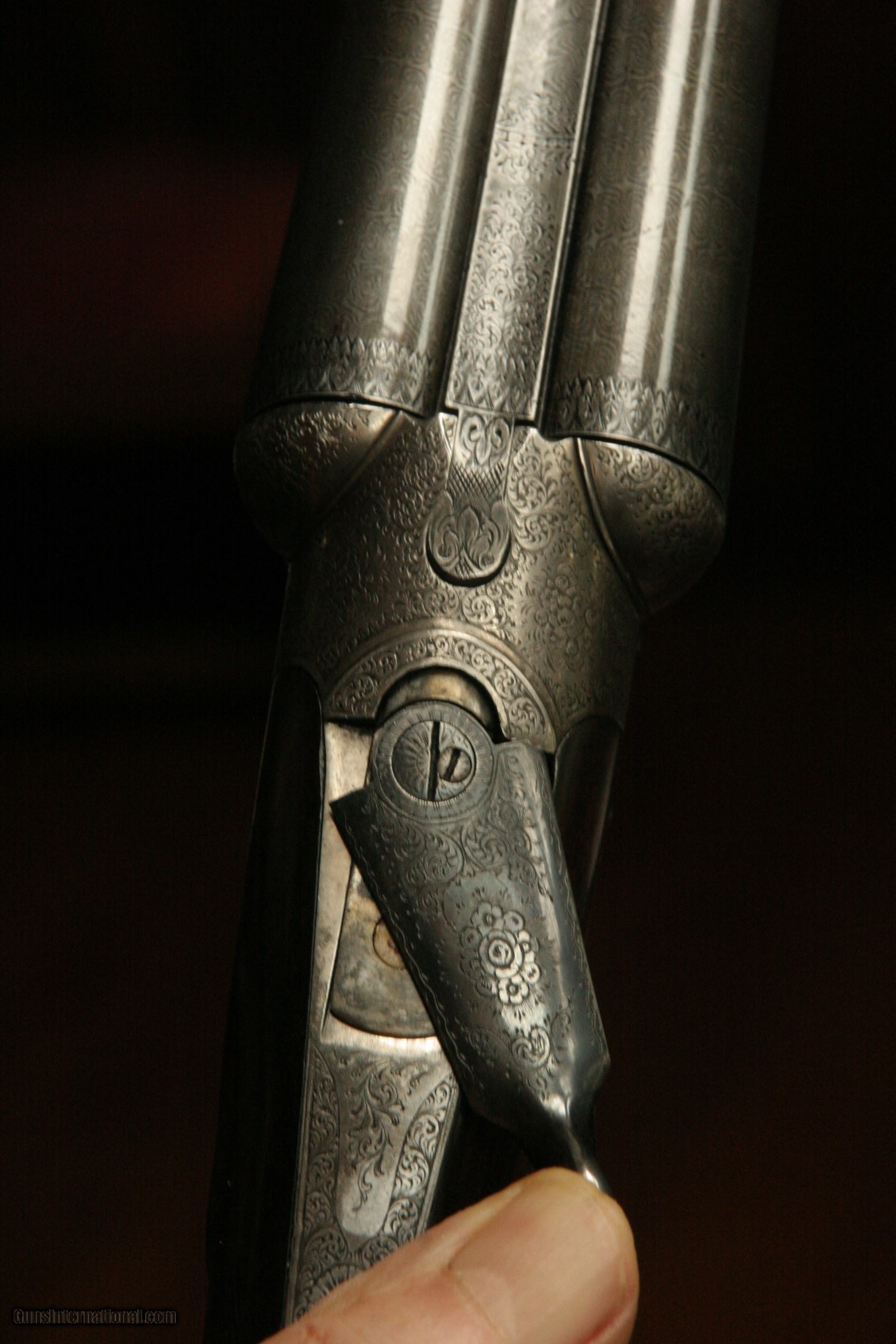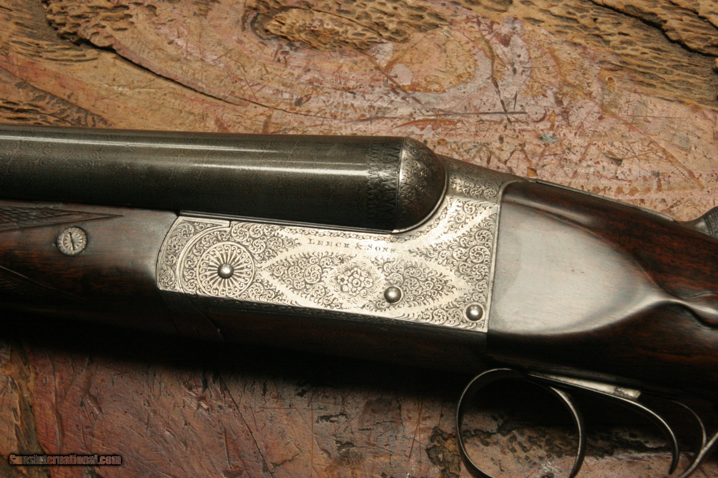 Description: LEECH & SON, CHELMSFORD, ENGLAND-- 20b. EJECTOR; STRAIGHT GRIP; LOP: 14-1/4" OVER EXC. JOSTAM PAD. DAC: 1-5/16" DAH: 1-3/4". THIS GUN WEIGHS EXACTLY 5lb. - 8.7 oz. I AM BEGINNING TO FIND HOMES FOR MY DOUBLE GUN JOURNAL COLLECTION OF AMERICAN AND BRITISH FINE DOUBLE GUNS. THE DOUBLE GUN JOURNAL RETAINS PUBLICATION RIGHTS TO THIS AND ALL OTHER GUNS CURRENTLY OFFERED--FOR ARTICLES TO BE PUBLISHED IN THE FUTURE. FOR GUNS : PLEASE EMAIL ME THROUGH GUNS INTERNATIONAL WITH YOUR QUESTIONS AND OFFERS. TO ORDER DGJ BACK ISSUES AND OUR OTHER EXCLUSIVE PRODUCTS, PLEASE CALL: 800.447.1658 ( 231.536.7439) ( VISA. MC. AMEX Accepted) Thanks, Daniel & Joanna Côté SOLD Curio/Relic: Yes |