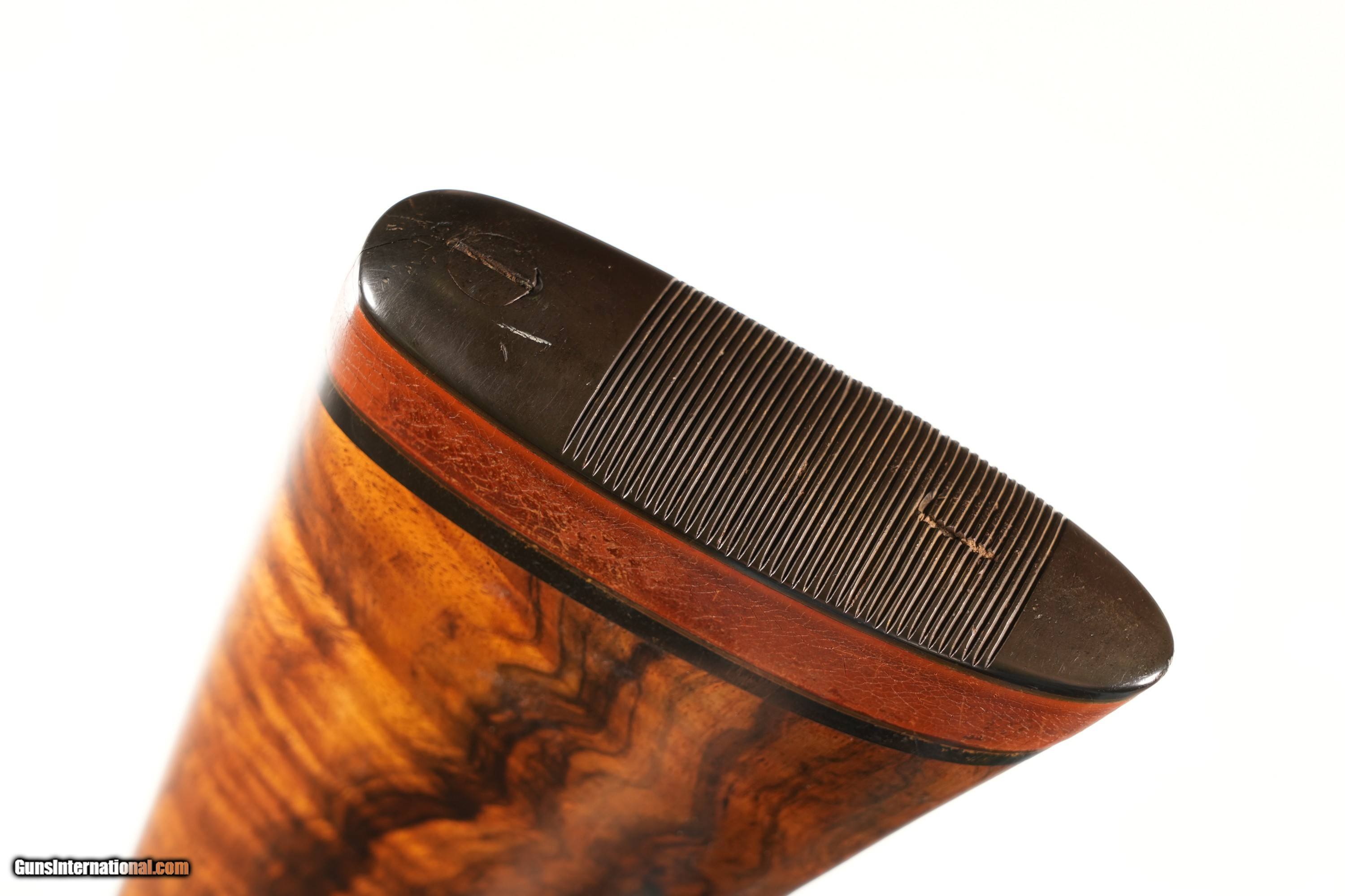 Description: 12 GA Serial # 14452 Fine scroll engraving with teardrop carved stock, leather stock extension, Gun Gold inlayed No. 2 likely of a pair, choked IC/IC, 2 1/2" chambers, LOP 14 3/4", with ejectors Barrel 26 Modern • Free Shipping, No Credit Card Fees. • Lay-a-way available for this firearm. • 1/3 Down, a 1/3 in 30 Days 1/3 in 60 Days. SOLD Manufacturer: Lewis Model: Boxlock Serial Number: 14452 Barrel Length: 26 |