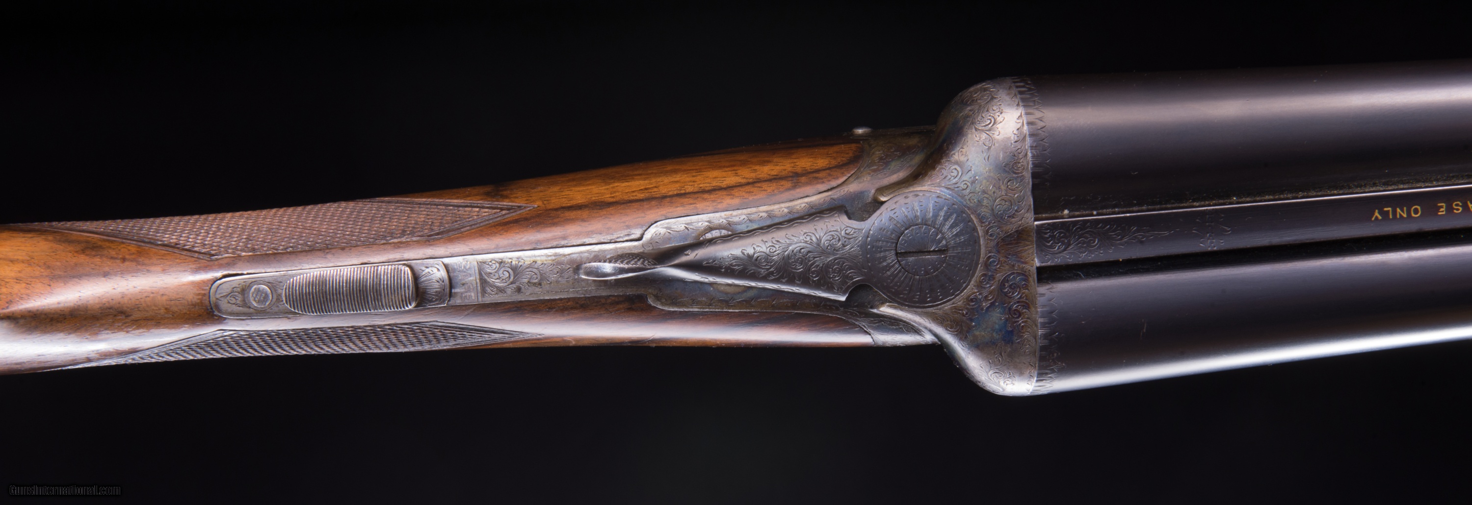 Description: Boxlocks - *** Note: To see this gun with high resolution photos and a zoom-in feature, go to the vintagedoubles main site and search for the gun ID: 4150 or browse the main site to see our full gun collection. SOLD Manufacturer: Linsley Brother 2" ~ Weighs in at 5 lbs. 5 oz. ! Model: None Serial Number: 2411 Ejectors: Yes Barrels: 27 Barrel Type: Steel Action: Box lock ejector Gauge Info: 12 gauge Stock Comb: 1 5/8 Stock Heel: 2 3/16 Stock Cast: 1/4 LOP: 14 1/4" to leather b Weight: 5 lbs. 5 oz. Choke Left: .019 light full or t Choke Right: .006 Skeet Proof:Nitro: 2 Minimum Wall Thickness Left: .025 Minimum Wall Thickness Right: .019 |