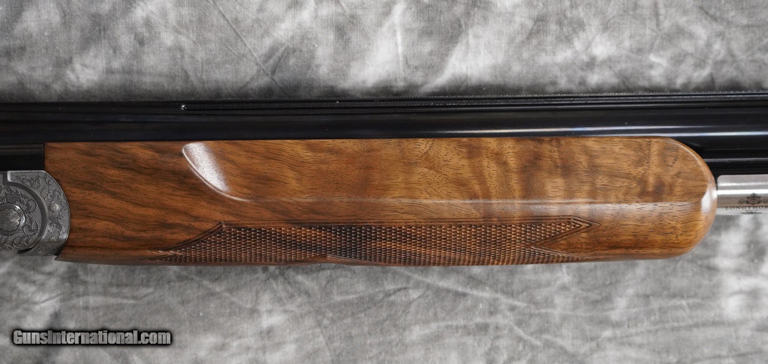 Description: New Longthorne 2011 Valkyrie Sporting 12GA with 30" factory choke tubed, monolithic barrels, flat-tapered sporting rib. Nitride finished trigger-plate action with fully engraved side-plates featuring detailed scrolls, scalloped action and decorated top-lever and forearm iron, single selective trigger. Factory adj. comb sporting stock with right-hand palmswell and beavertail forearm. Includes factory case, chokes and tools. SOLD Shotgun Gauge: 12 Gauge |