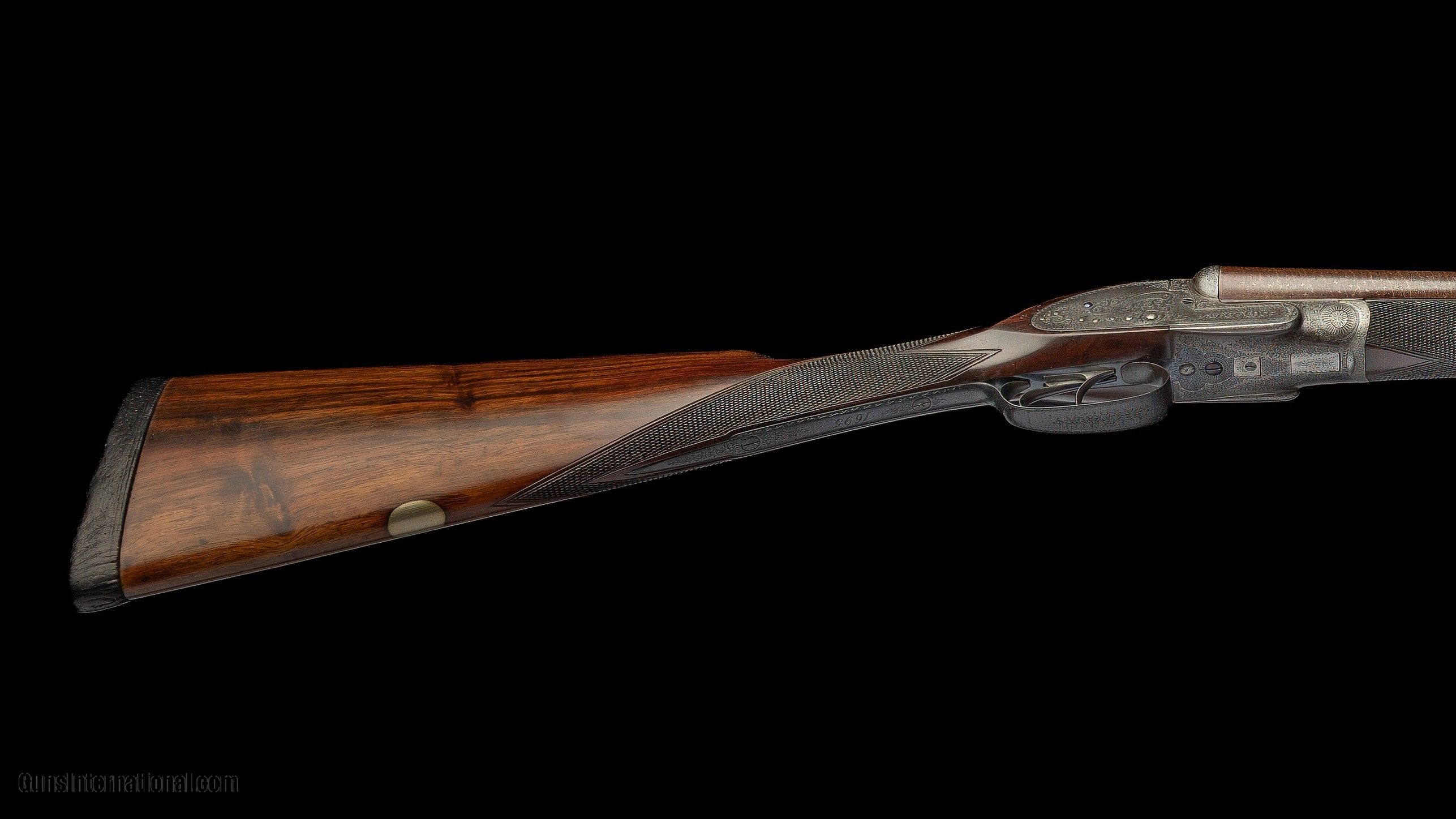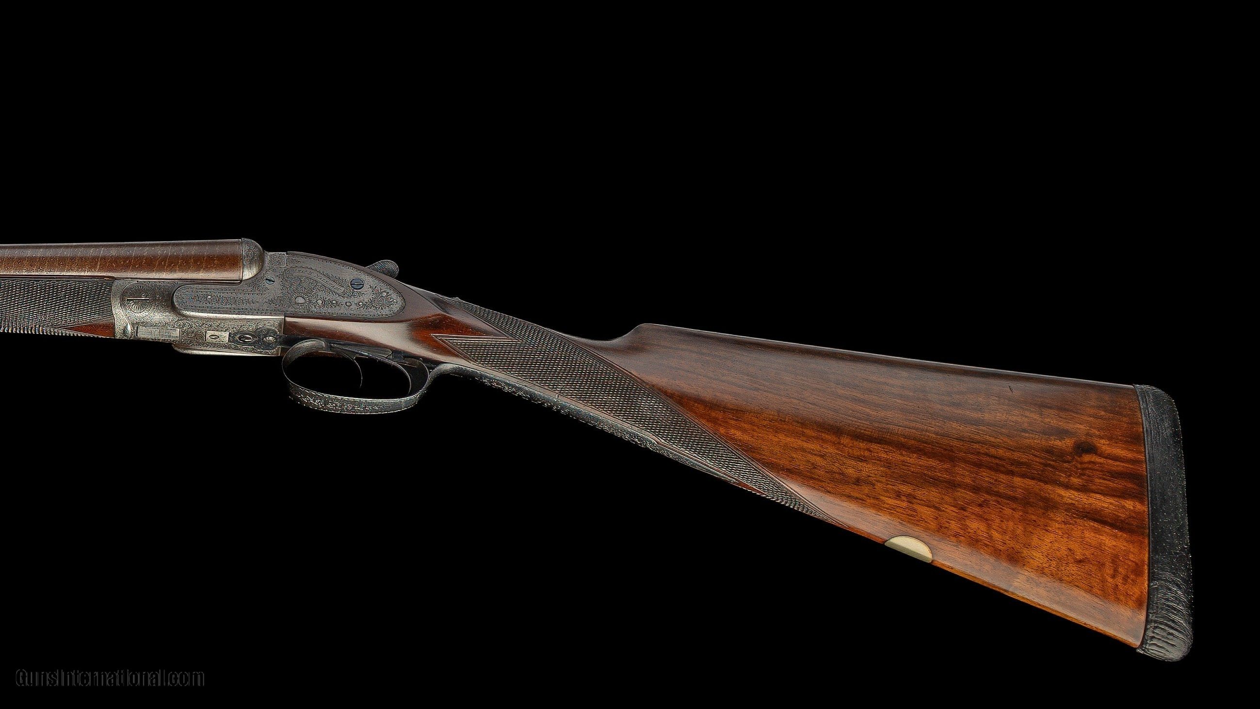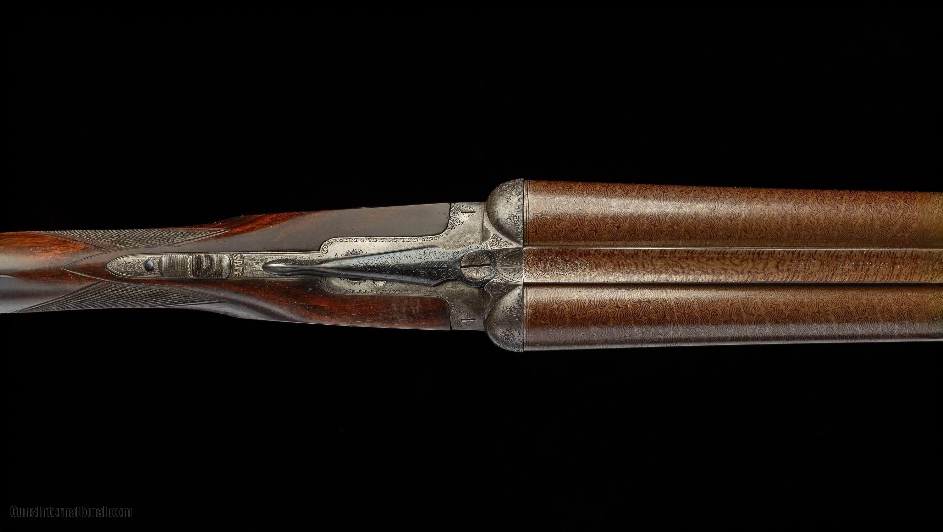Description: Northern Wings and Clays is pleased to announce the acquisition of the personal gun collection of famed shooter and former owner of Atkin, Grant and Lang London, Mr. Cyrill Adams. Mr. Adams the author of Live Pigeon Trap Shooting and Lock, Stock and Barrel was extraordinarily influential in shaping the continuing legacy of English Shot Guns worldwide. Mr. Adams’ unwavering attention to detail was well known and highly respected. All of the guns in his collection represent his commitment to detail and excellence. Northern Wings and Clays thanks the family of Mr. Adams for accepting our offer to purchase and represent this collection. For more information about Mr. Adams please visit Cyril S. Adams1938-2020 | Shooting Sportsman Magazine Maleham SLE 16ga 30” Barrel This excellent example of Maleham’s work is circa 1878. From a store in London and produced in Sheffield they manufactured entirely bespoke guns. Damascus barrels in a light brown tone modified in England to accommodate modern 2 ¾’ cartridges and re-proofed up to 1 1/8oz. loads. Tipping the scales at 6lbs 4ozs this is an excellent example of a fine English field gun. The beauty and mechanical quality of Maleham’s is well known and not duplicated in today’s firearms. Included is a well- traveled leather case. SOLD Antique: Yes Shotgun Gauge: 16 Gauge Manufacturer: MALEHAM Model: SLE Serial Number: 1695 Barrel Length: 30 Bore: EXCELLENT Chambers: 2 3/4 Ejectors: AUTO SELECTIVE EJECTORS Condition: EXCELLENT Metal Condition: EXCELLENT Wood Condition: EXCELLENT Bore Condition: EXCELLENT Barrels: SIDE BY SIDE Barrel Type: SXS Action: S/S SIDE LOCK EJECTOR Triggers: DOUBLE Stock: ENGLISH STRAIGHT GRIP Stock Comb: 1 5/8 Stock Heel: 2 7/8 Fore End: SPLINTER Butt Pad: LEATHER COVERED PAD LOP: 15 1/4 Rib: SOLID CONCAVE SMOOTH Finish: ANTIQUE COIN Sights: BRASS BEAD Manufacture Date: 1878 Chokes: IMPROVED CYLINDER IMPROVED CYLINDER Engraving: FINE ENGLISH SCROLL ENGRAVING Extras: SNAP CAPS Case: ORIGNAL LEATHER CASE Item Location: MICHIGAN |