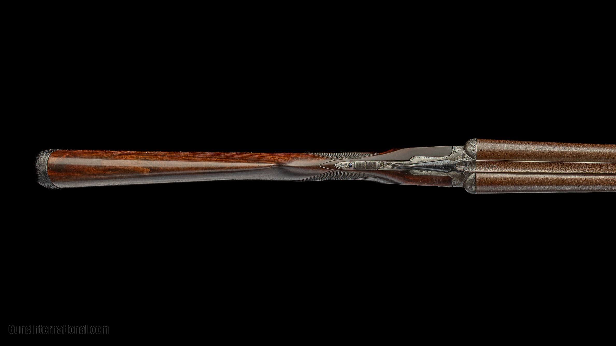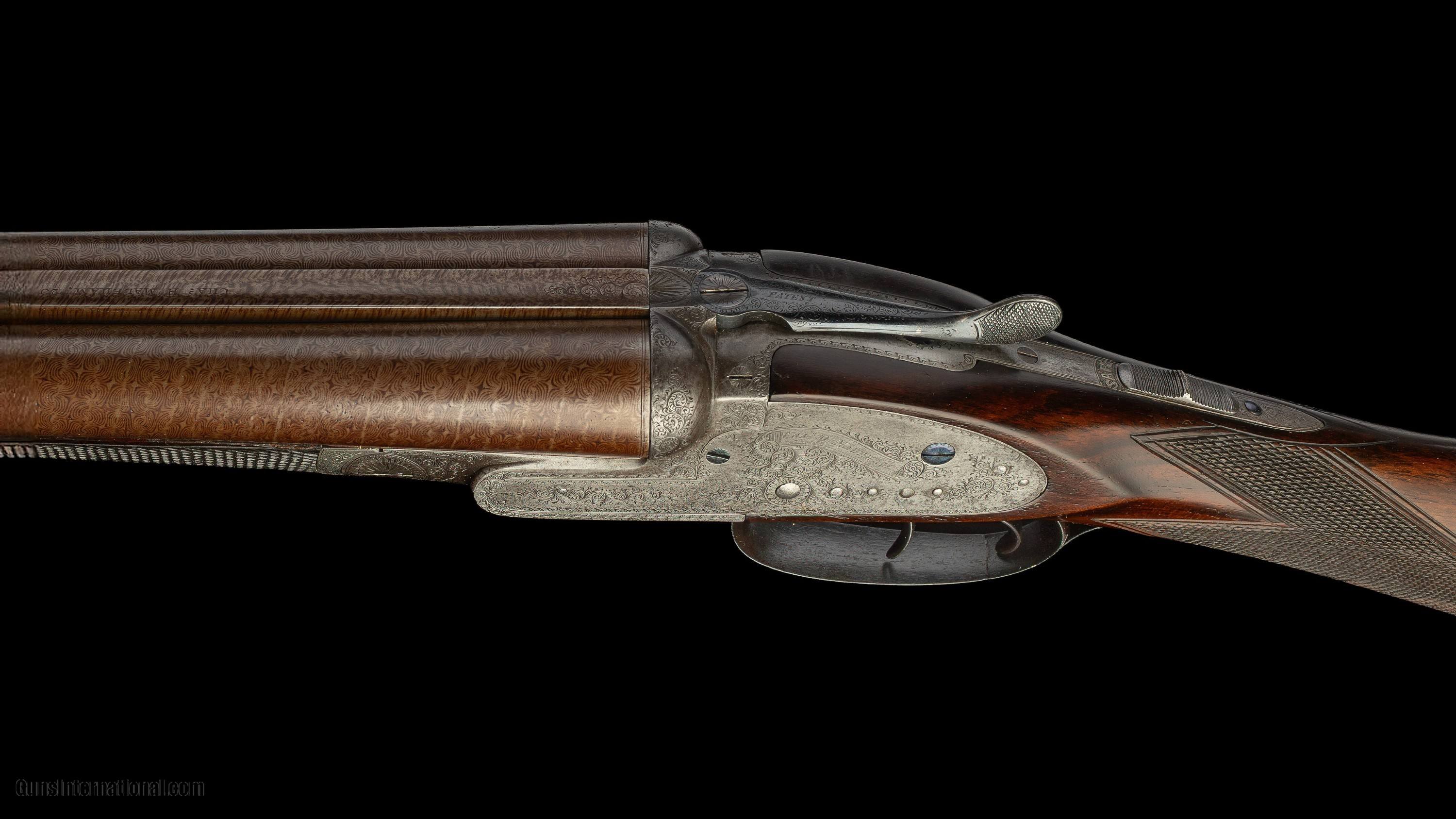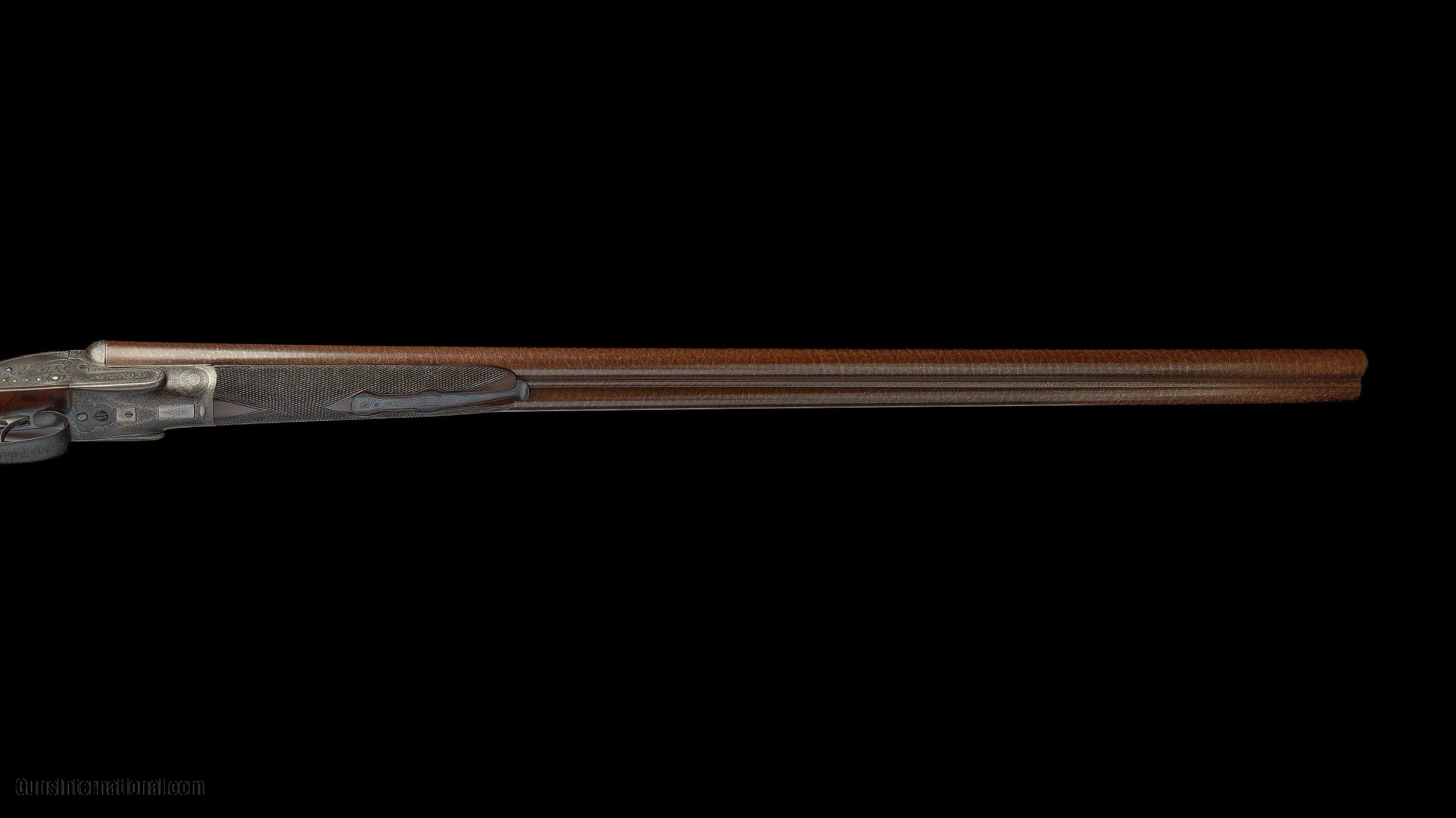 Description: Northern Wings and Clays is pleased to announce the acquisition of the personal gun collection of famed shooter and former owner of Atkin, Grant and Lang London, Mr. Cyrill Adams. Mr. Adams the author of Live Pigeon Trap Shooting and Lock, Stock and Barrel was extraordinarily influential in shaping the continuing legacy of English Shot Guns worldwide. Mr. Adams’ unwavering attention to detail was well known and highly respected. All of the guns in his collection represent his commitment to detail and excellence. Northern Wings and Clays thanks the family of Mr. Adams for accepting our offer to purchase and represent this collection. For more information about Mr. Adams please visit Cyril S. Adams1938-2020 | Shooting Sportsman Magazine Maleham SLE 16ga 30” Barrel This excellent example of Maleham’s work is circa 1878. From a store in London and produced in Sheffield they manufactured entirely bespoke guns. Damascus barrels in a light brown tone modified in England to accommodate modern 2 ¾’ cartridges and re-proofed up to 1 1/8oz. loads. Tipping the scales at 6lbs 4ozs this is an excellent example of a fine English field gun. The beauty and mechanical quality of Maleham’s is well known and not duplicated in today’s firearms. Included is a well- traveled leather case. SOLD Antique: Yes Shotgun Gauge: 16 Gauge Manufacturer: MALEHAM Model: SLE Serial Number: 1695 Barrel Length: 30 Bore: EXCELLENT Chambers: 2 3/4 Ejectors: AUTO SELECTIVE EJECTORS Condition: EXCELLENT Metal Condition: EXCELLENT Wood Condition: EXCELLENT Bore Condition: EXCELLENT Barrels: SIDE BY SIDE Barrel Type: SXS Action: S/S SIDE LOCK EJECTOR Triggers: DOUBLE Stock: ENGLISH STRAIGHT GRIP Stock Comb: 1 5/8 Stock Heel: 2 7/8 Fore End: SPLINTER Butt Pad: LEATHER COVERED PAD LOP: 15 1/4 Rib: SOLID CONCAVE SMOOTH Finish: ANTIQUE COIN Sights: BRASS BEAD Manufacture Date: 1878 Chokes: IMPROVED CYLINDER IMPROVED CYLINDER Engraving: FINE ENGLISH SCROLL ENGRAVING Extras: SNAP CAPS Case: ORIGNAL LEATHER CASE Item Location: MICHIGAN |