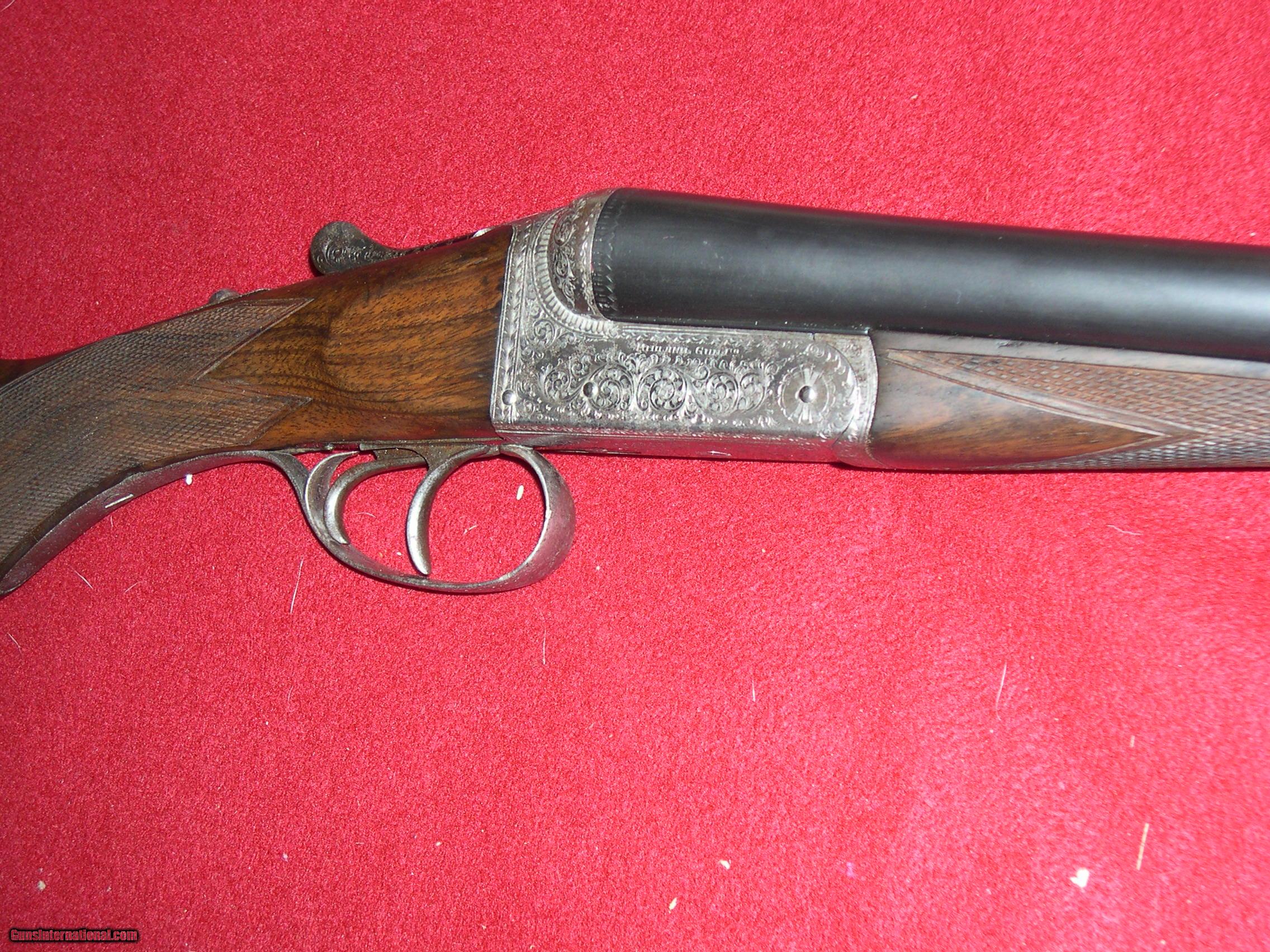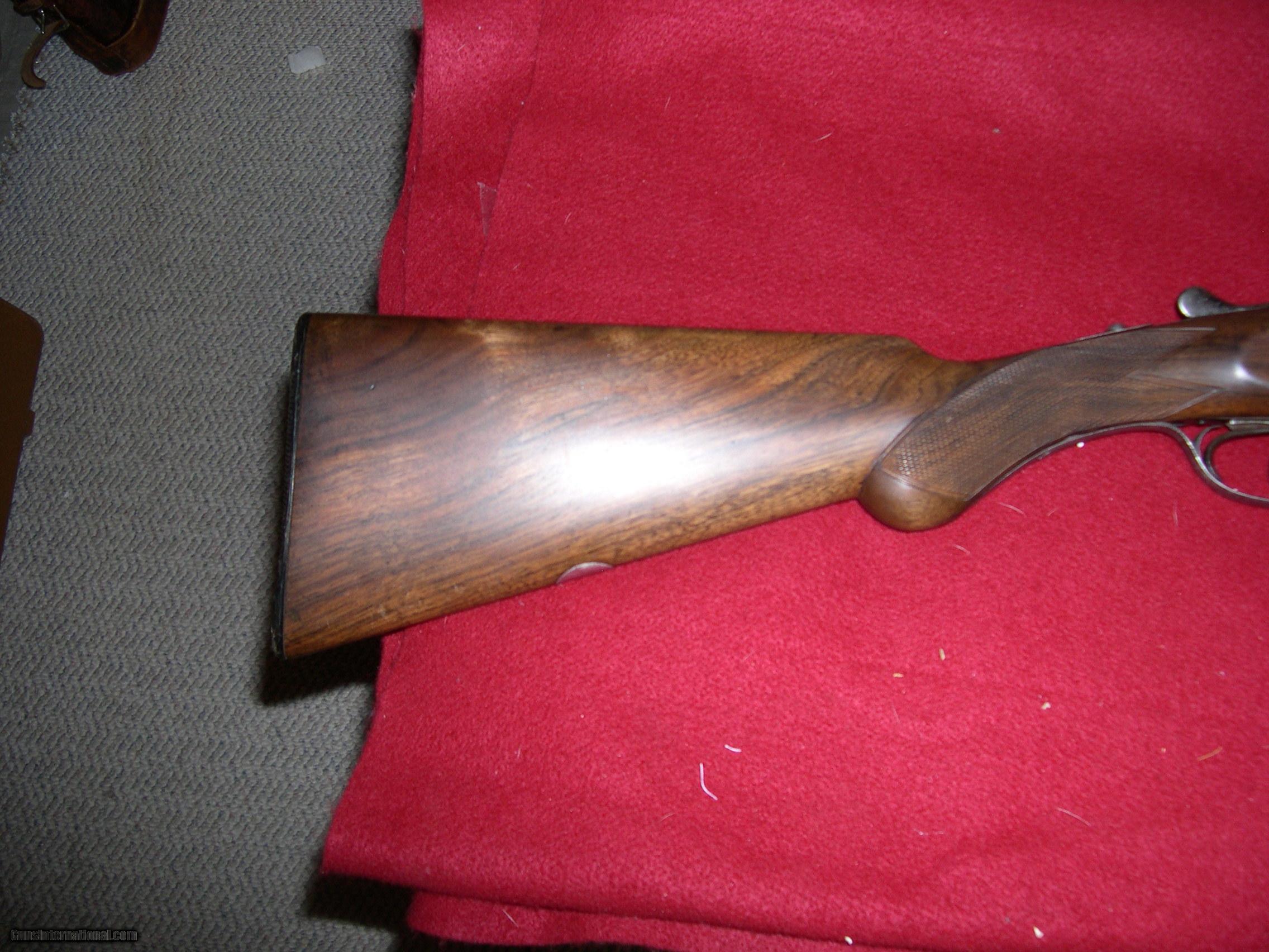 Description: Very nice Midland grade 4 with scroll engraving and in nice condition. The barrels were rust blued and stock redone by Keith Kearcher. This Midland is classic English style Prince of Wales stock with original horn butt plate. Dimension are LOP 14 ¼ DAC 1 5/8 DAH 2 3/8 has a cast of ½ inch and only weighs 6# 3oz. Nitro Proofed 1 ¼ load, 2 ¾ chamber and choked .035 full & cylinder. This Midland has been used but not abused and overall a great hunting gun and still collectible. . Priced to sell $1575.00 must be shipped to CCR or FFL dealer; buyer pays $55.00 shipping handling & insurance. For more information, call Bud at 509-465-8406 SOLD Curio/Relic: Yes |