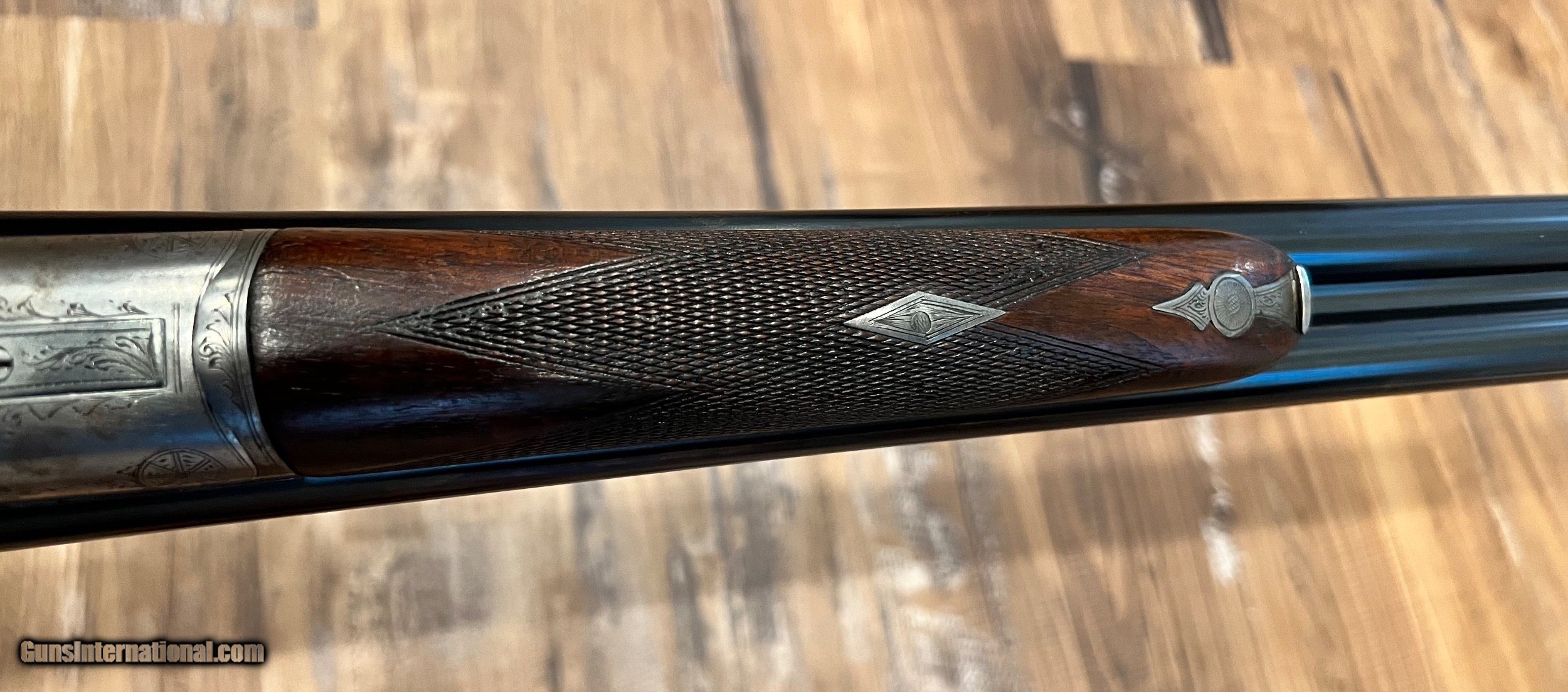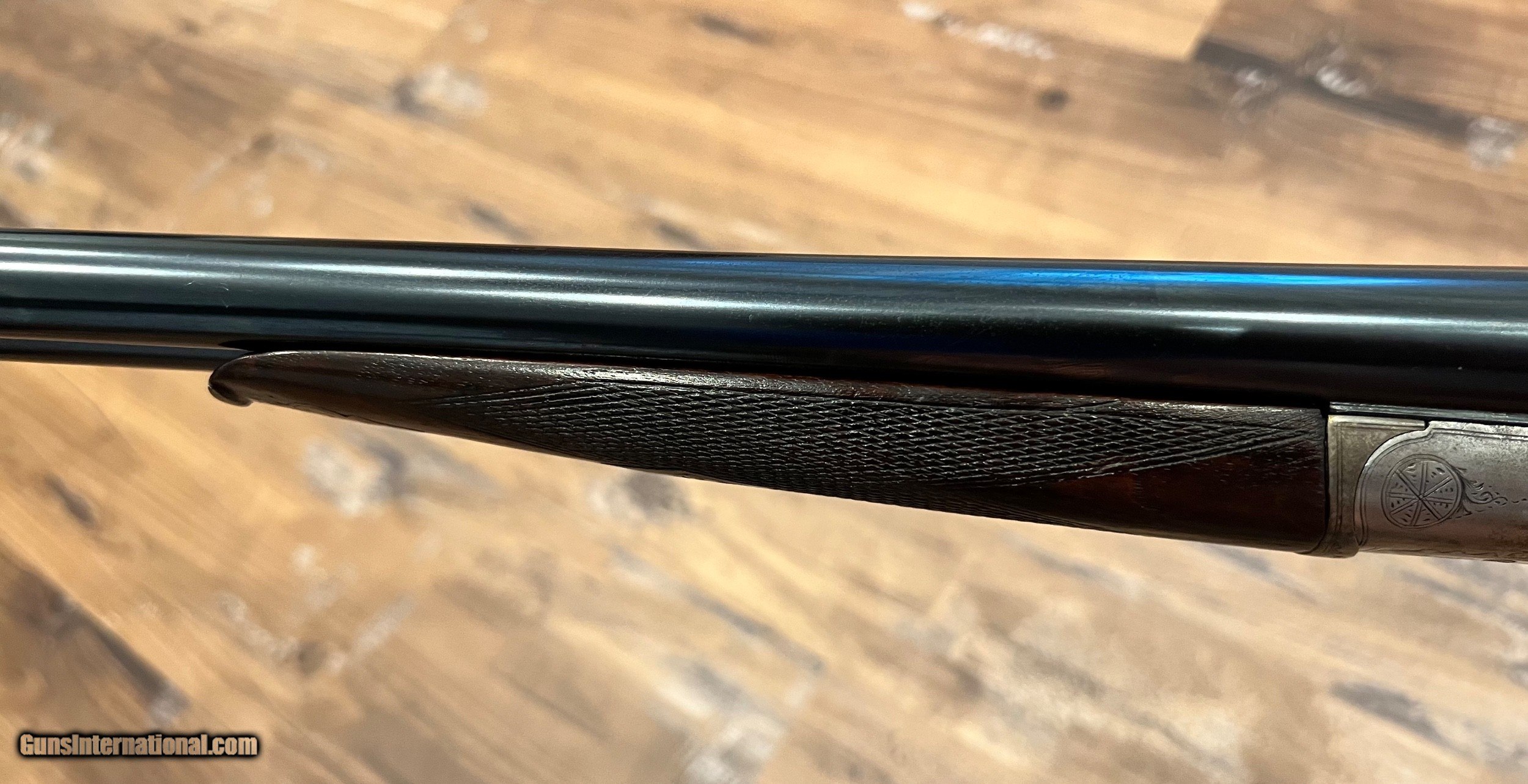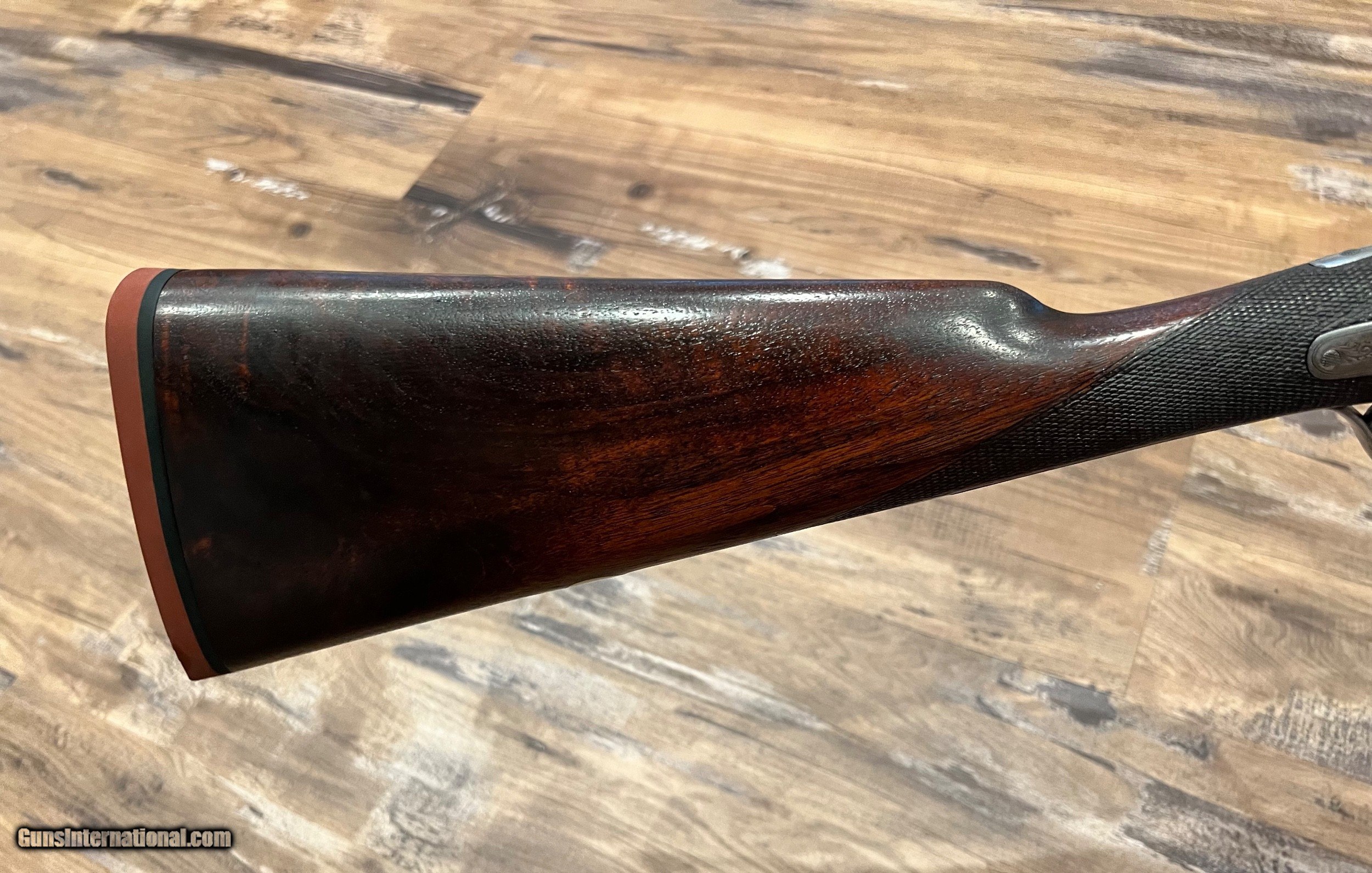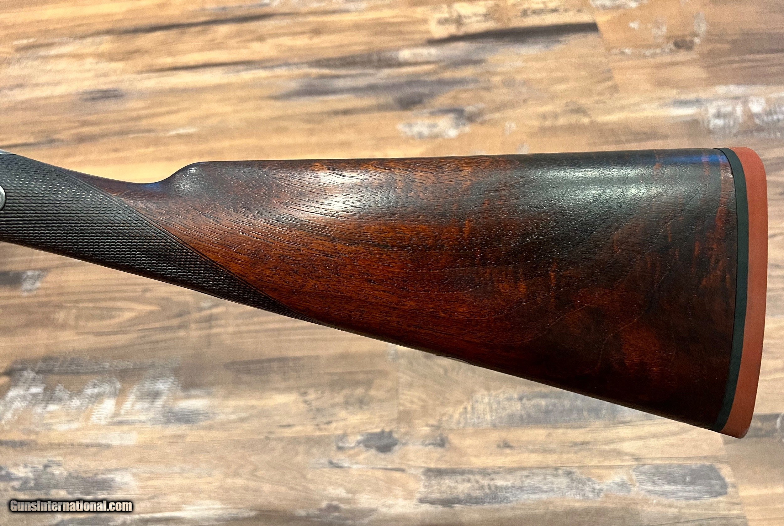 Description: Midland gun co 16ga hammergun 28" non ejector steel barrels with concave matted rib 2 1/2" 1oz nitro proof Bores measure .658/.658 Choked: Cylinder/Improved cylinder (.003/.008) Minimum wall thickness. R: 33/1000 L: 32/1000 LOP 14 5/8 DAC 1 1/2 DAH 1 7/8 Neutral cast 6lbs 2oz SN:96829 Made in 1932 Strong cross bolt action with tight lockup and mirror bores Very nice fast handling late production hammergun with steel barrels and great stock dimensions. Two boxes of RST 16GA shells included with the gun. SOLD Curio/Relic: Yes Shotgun Gauge: 16 Gauge |