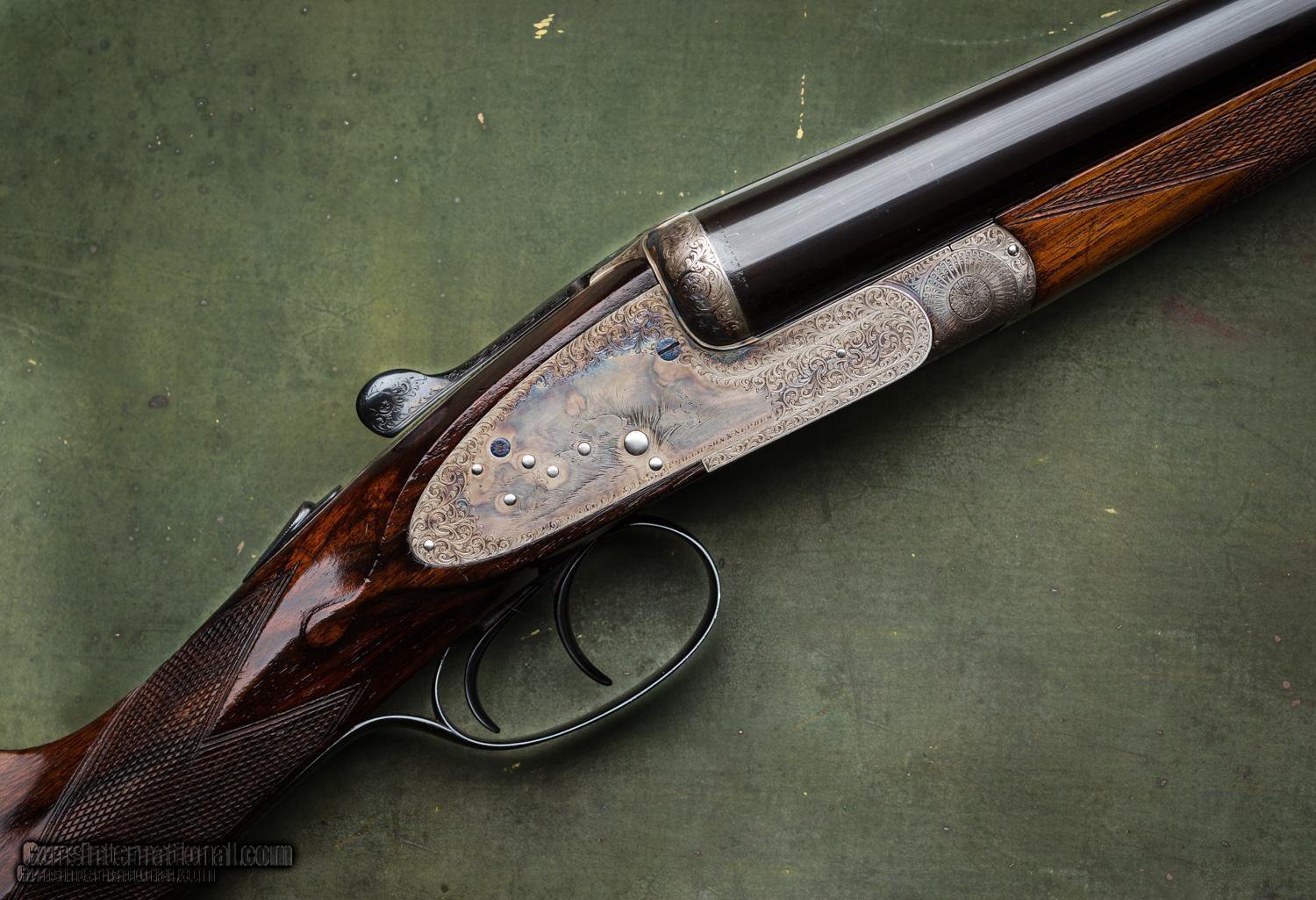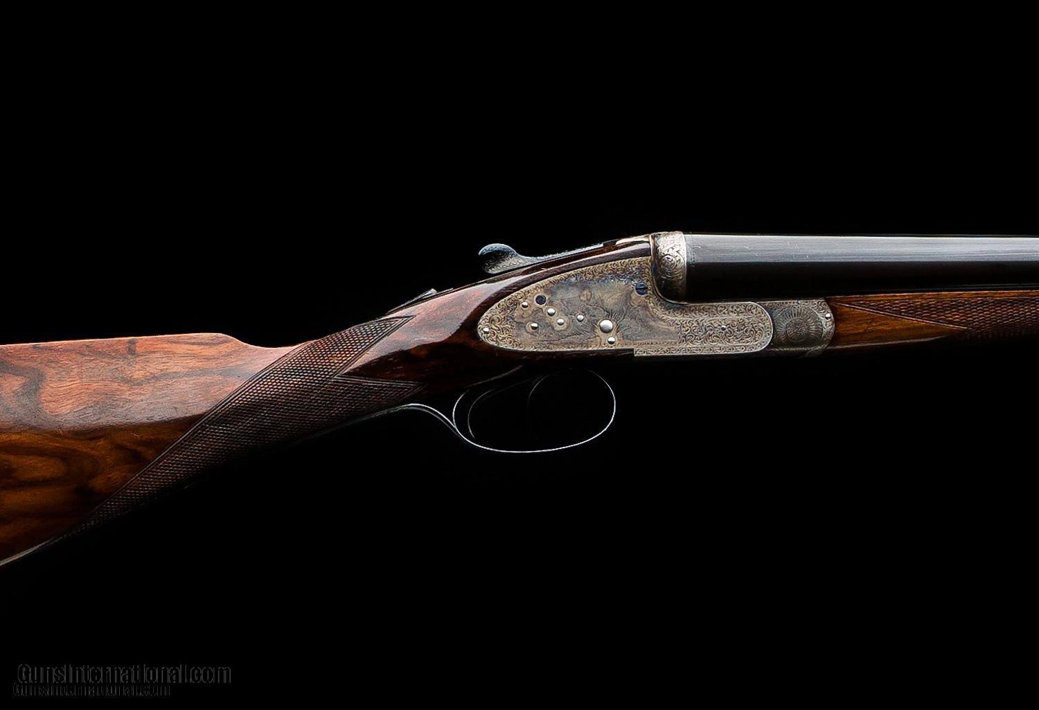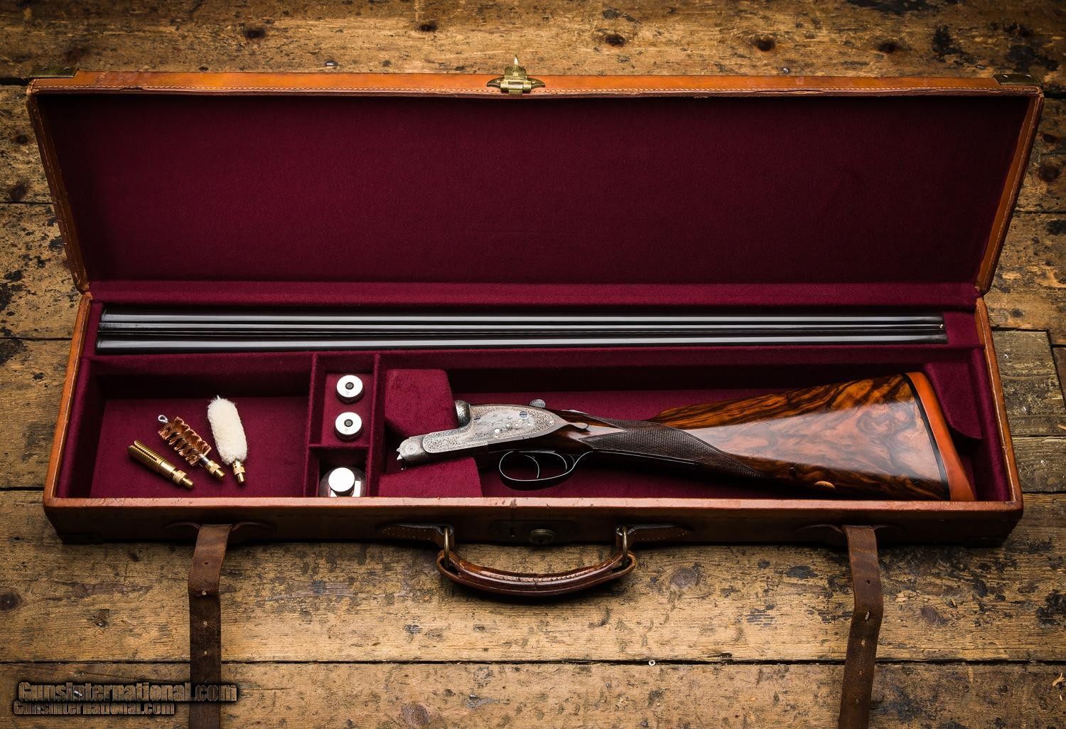 Description: Phillipson & Nephew 12ga. sidelock Ejector side x side, Stunning 12g sidelock ejector shotgun made by Phillipson & Nephew of Birmingham. Famous for making and supplying the majority of the trade with actions, they made a few guns under their own name which were always extremely well made, high end guns. This gun features 30" barrels, beautifully engraved sidelocks with game scene surrounded in scroll retaining some case colour, double triggers, handsome and highly figured walnut stock measuring 14 3/8" to centre. Cased with accessories in a leather case. A chance to acquire a very attractive, rare gun in excellent condition. Shotgun Gauge: 12 Gauge Manufacturer: Phillipson & Nephew Model: Best Double Barrel Length: 30 Condition: Excellent overall condition Price: POR Contact Seller |