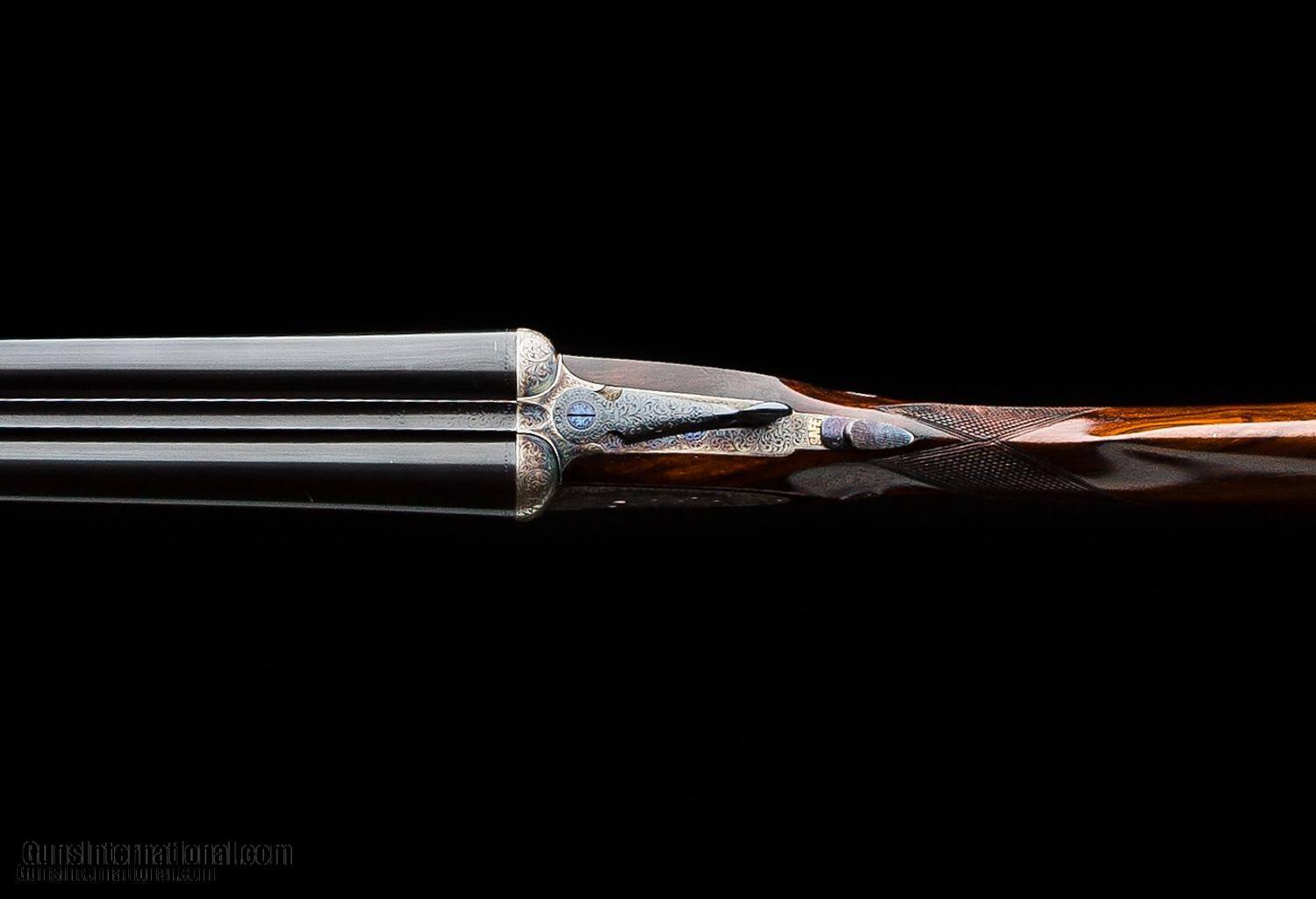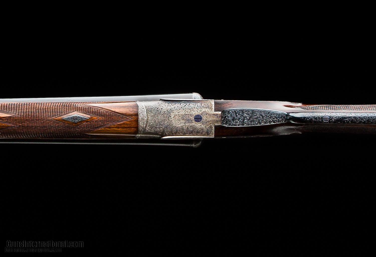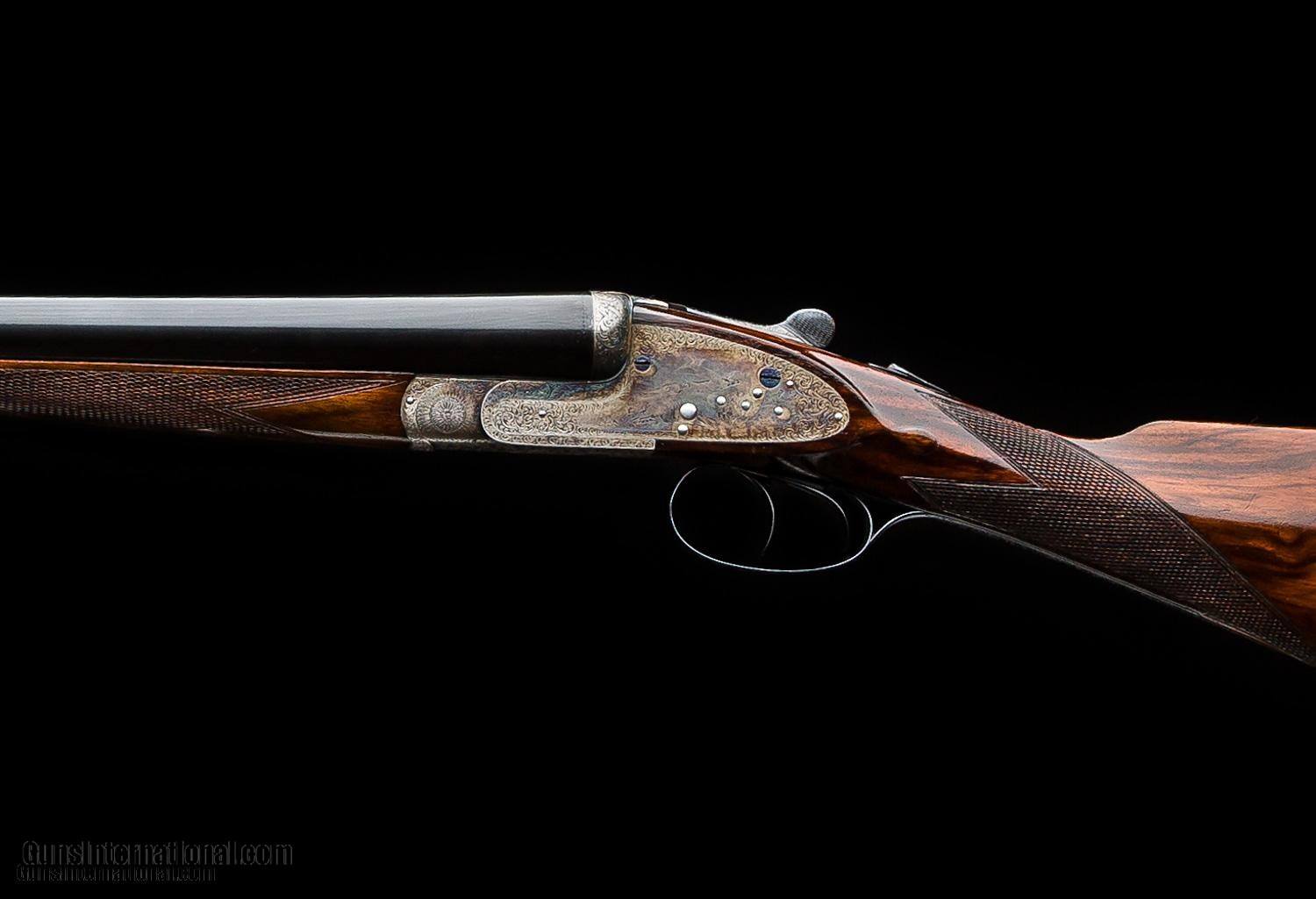 Description: Phillipson & Nephew 12ga. sidelock Ejector side x side, Stunning 12g sidelock ejector shotgun made by Phillipson & Nephew of Birmingham. Famous for making and supplying the majority of the trade with actions, they made a few guns under their own name which were always extremely well made, high end guns. This gun features 30" barrels, beautifully engraved sidelocks with game scene surrounded in scroll retaining some case colour, double triggers, handsome and highly figured walnut stock measuring 14 3/8" to centre. Cased with accessories in a leather case. A chance to acquire a very attractive, rare gun in excellent condition. Shotgun Gauge: 12 Gauge Manufacturer: Phillipson & Nephew Model: Best Double Barrel Length: 30 Condition: Excellent overall condition Price: POR Contact Seller |