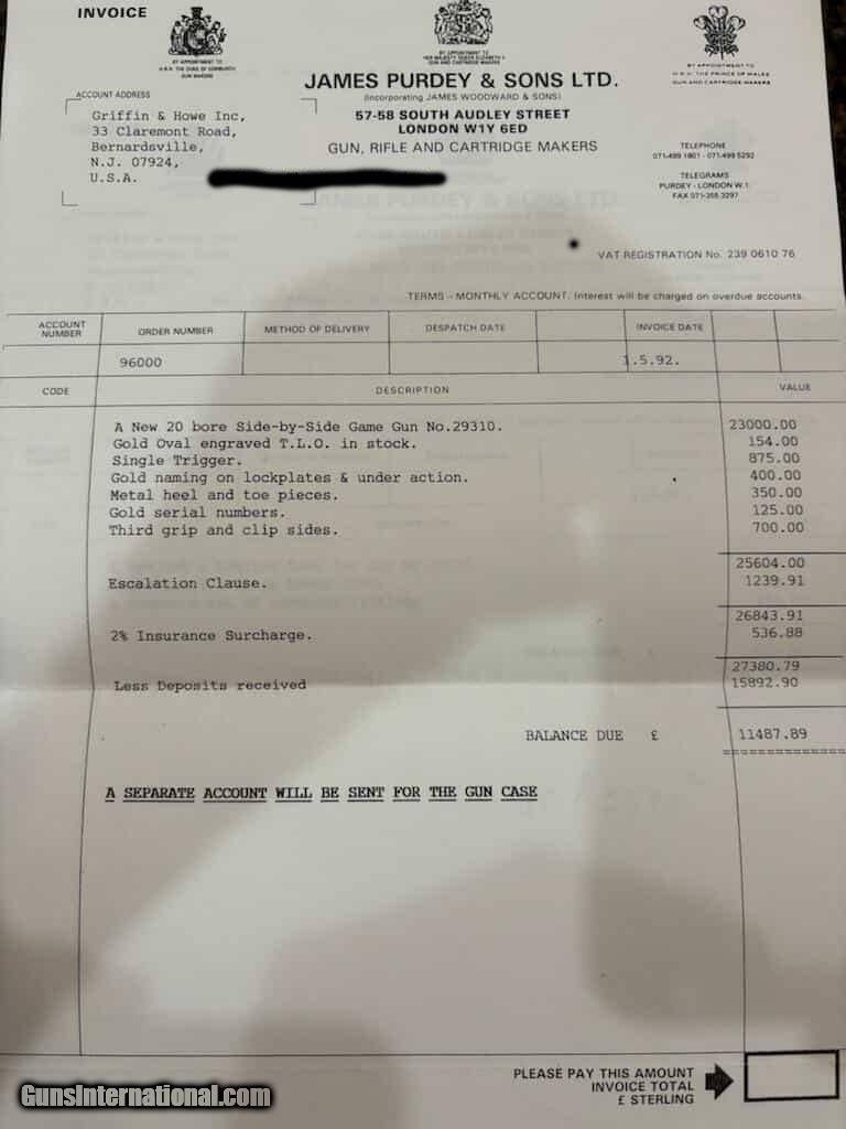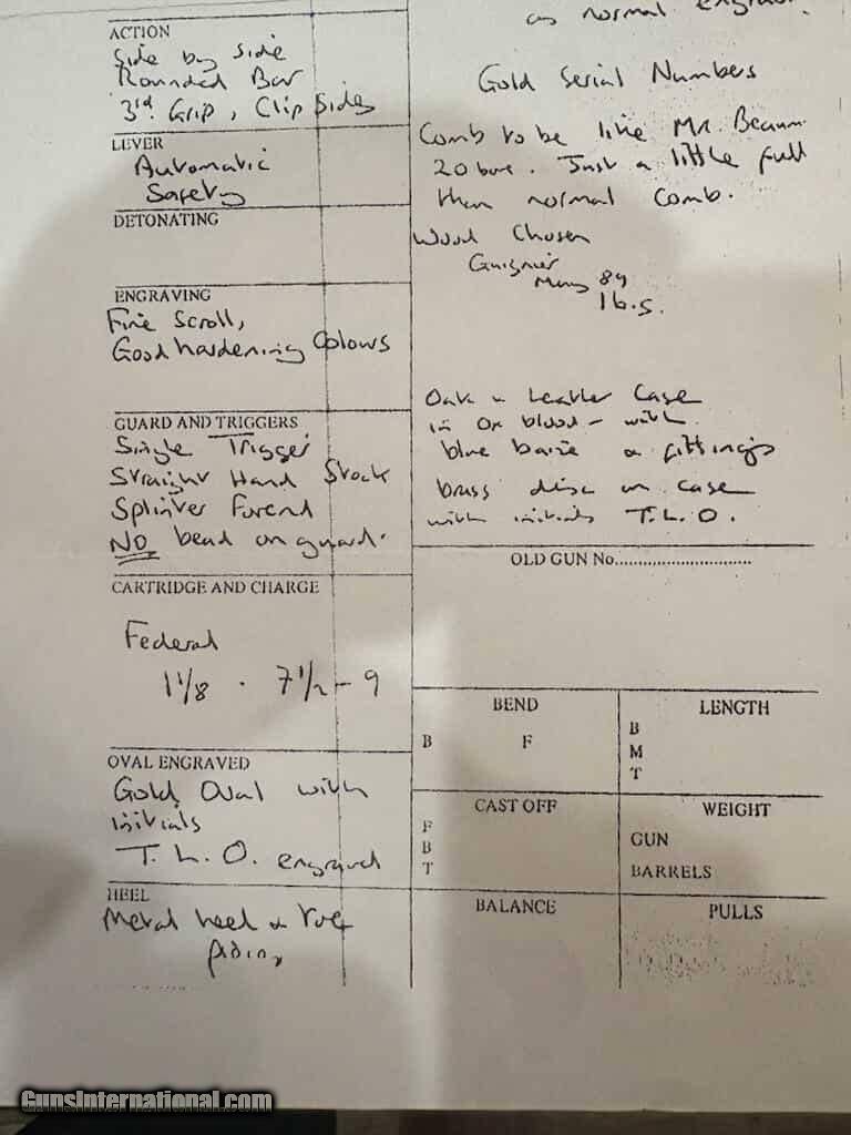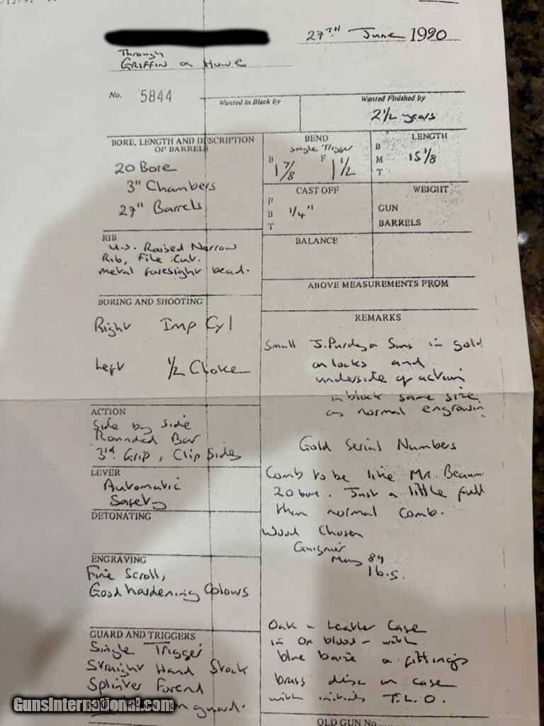 Description: 1992 - Purdey 20ga, 3", 27", IC / M, Single Trigger, LOP 15-1/8", Drop 1-1/2" to 1-7/8", Slight Cast Off, Weight 6 lbs.