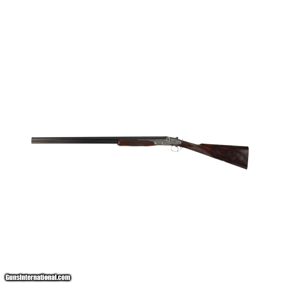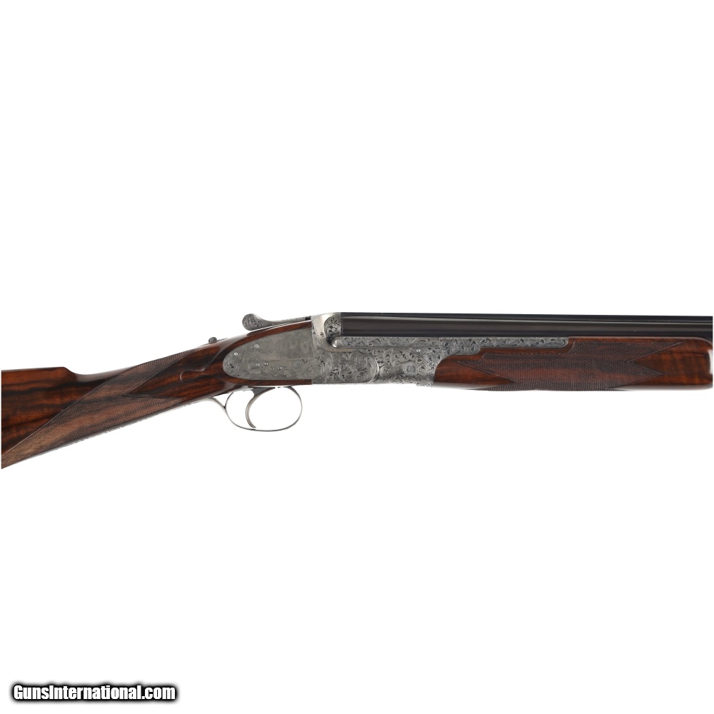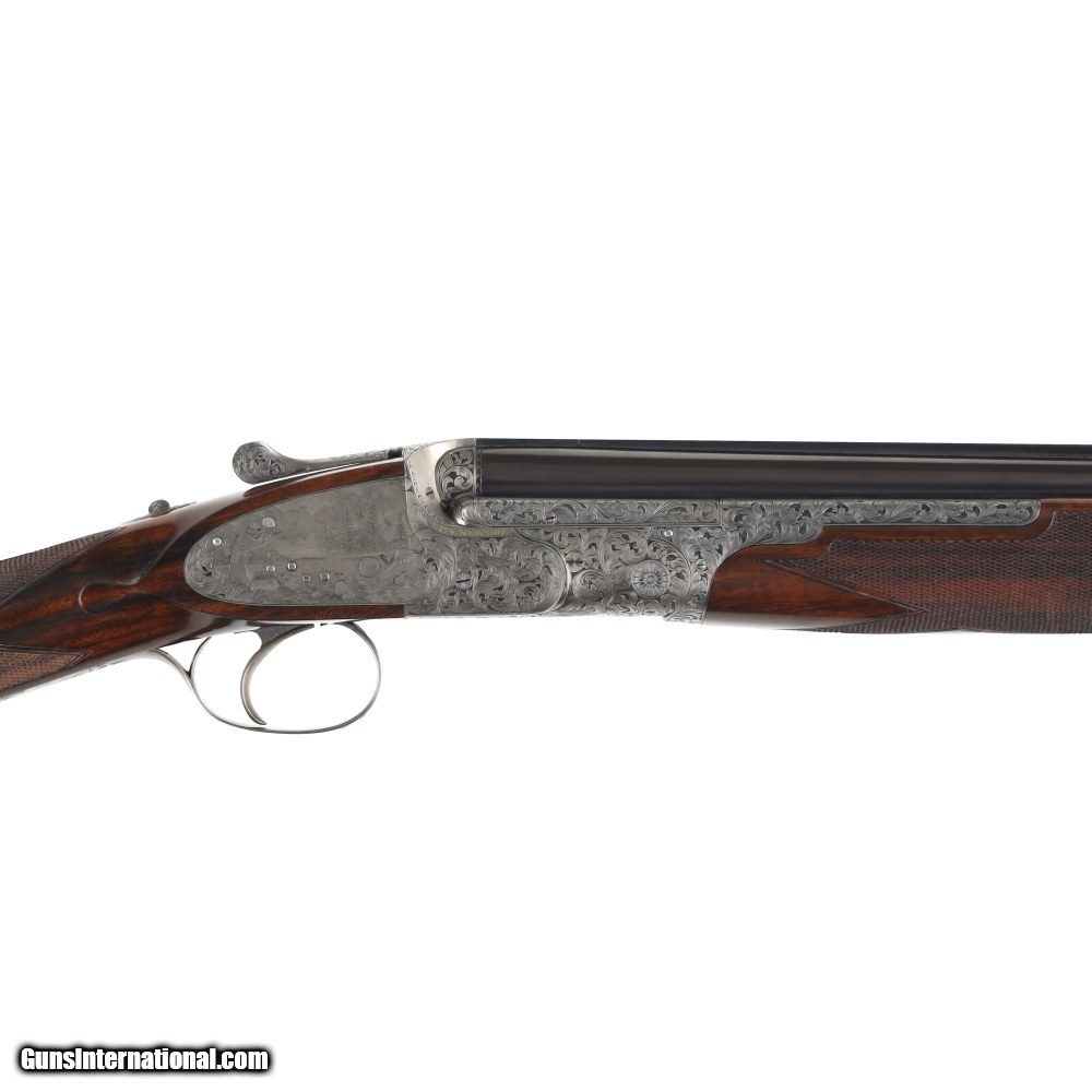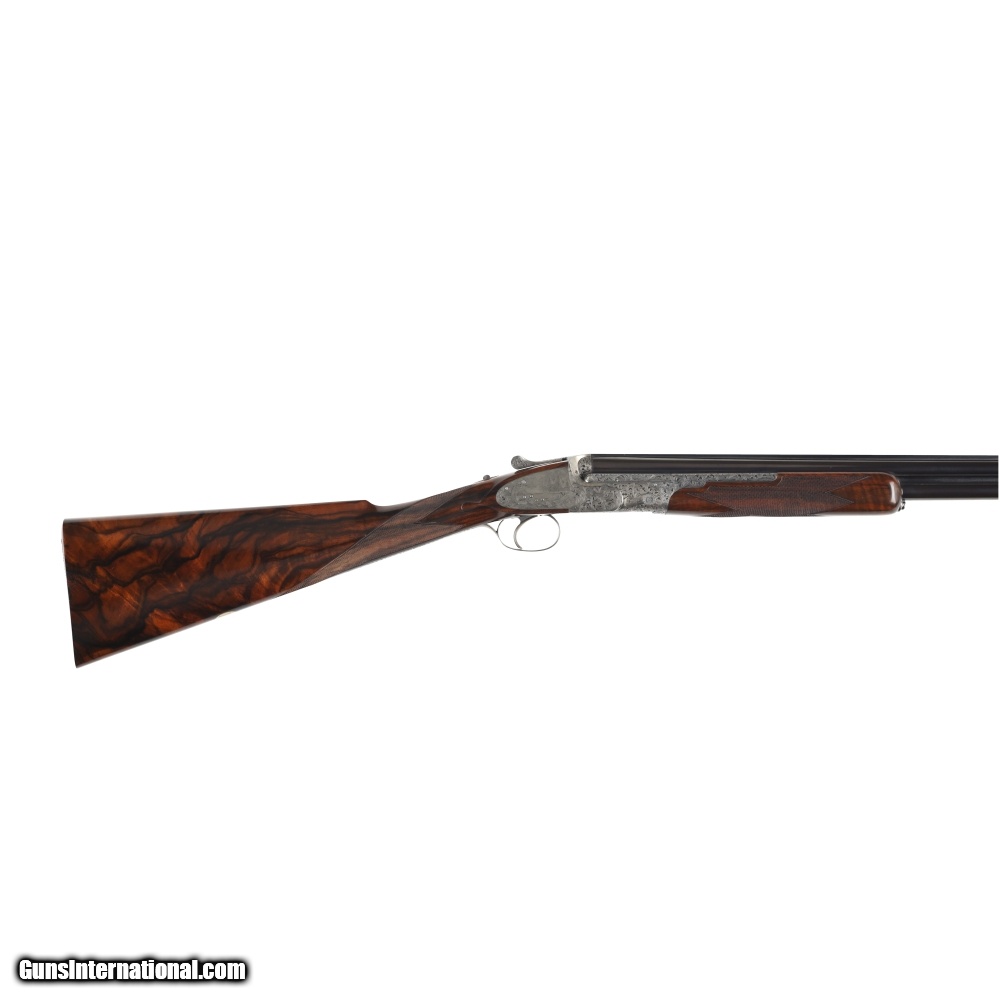 Description: Peter Nelson (PVN), started his gun making career as an apprentice actioner at Purdey through the 1950's and 60's. In 1971 he joined forces with the iconic firm of Hartmann & Weiss in Hamburg. In 1974 he returned to London to start Hartmann & Weiss, UK., making guns for 18 years under their brand, before later starting his own famous brand of P. V. Nelson. Sporting guns which became known for their quality and craftsmanship, incorporating all of the best aspects of fine English gun making. The Mackay Point is one of the finest examples of PVN's work, partnering with Phil Coggan, arguably the world's finest engraver, is an over/under two-barrel set, built using a Boss & Co style action in 28 bore and .410, bearing the unique serial number of "28410". Engraving theme for this firearm is a beautiful acanthus leaf pattern, with Bulino Game Scene of the original owner hunting over his famous 6,000-acre South Carolina Quail Plantation, dating back to1732. The stock on this beautiful shotgun is of exhibition grade figured walnut with near flawless checkering. It should be noted, this was the last gun built by Peter Nelson and is commemorated with the words "My Last Gun 2011" inlaid in gold on the rib of each barrel set. As we write, Phil Coggan is completing his last engraving for a Griffin & Howe client, before retiring. Making this a 'doubly' rare opportunity! Overall condition of this gun is immaculate, with only the faintest of handling marks on the stock. We were surprised to find that this firearm had actually been shot, as bores are near perfect, barrels are incredibly tight on the action. This game gun has been incredibly well taken care of and it shows throughout. Offered for your consideration $250,000.00USD Manufactured in: England Hand: Right Hand Action Finish: Engraved Action Description: Over / Under Metal Finish: Original Barrel Length: 28 Inches Barrel Condition: Excellent Stock Finish: Original Stock Condition: Excellent Type of Butt: Checkered Butt Pad Thickness: NONE Grip: Straight Grip Forend: Checkered Cast Amount: 3/8" Extra Barrels: Yes SOLD Manufacturer: P.V. Nelson Model: Best Over/Under 2 Barrel Set Chambers: 2 3/4 Ejectors: Yes Condition: Preowned Metal Condition: Excellent Action: Over / Under Triggers: Single Gauge Info: 28 Gauge Stock Comb: 1 1/2 Stock Heel: 2 1/8 Stock Cast: Off Fore End: Checkered Butt Pad: NONE LOP: 14 1/2 Rib: Solid Finish: Original Weight: 5.6 lbs Manufacture Date: 2011 Chokes: M/IM Extras: Yes Case: Leather Luggage |