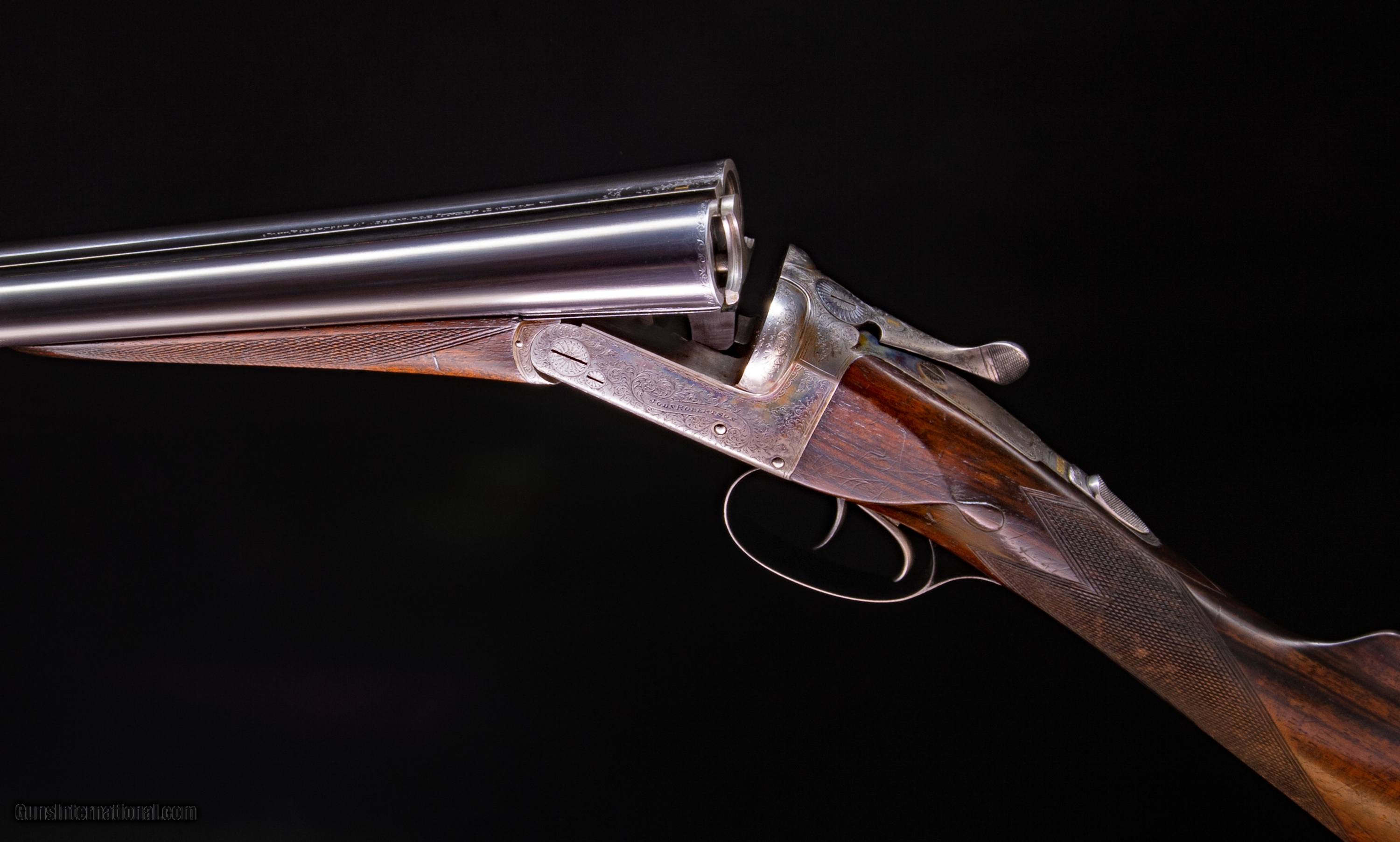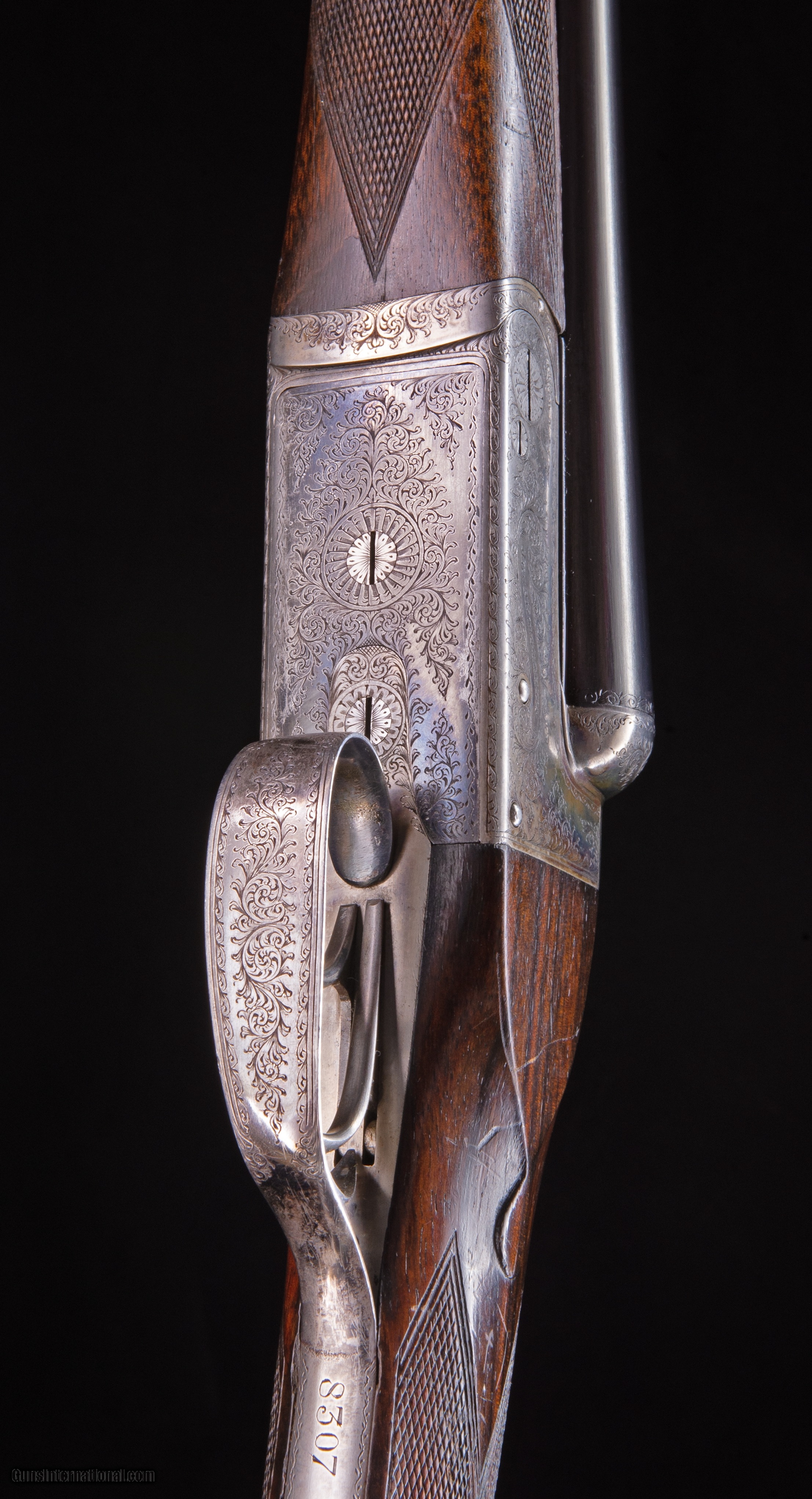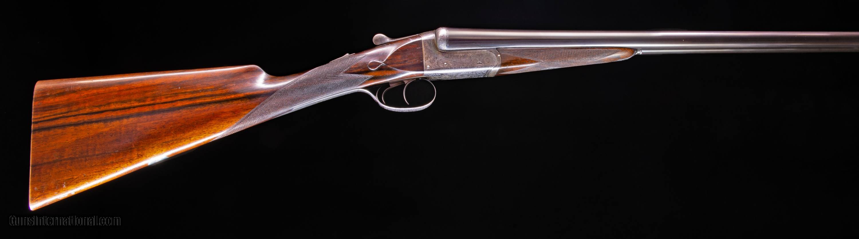 Description: Boxlocks - *** Note: To see this gun with high resolution photos and a zoom-in feature, go to the vintagedoubles main site and search for the gun ID: 5205 or browse the main site to see our full gun collection. SOLD Manufacturer: Robertson "Boss" Matched pair ~ Price is for the two guns with their makers case Model: None Serial Number: 8308 Ejectors: Yes Barrels: 28 Barrel Type: Steel Action: Boxlock Ejector Gauge Info: 12 gauge Stock Comb: 1 9/16 Stock Heel: 2 3/16 Stock Cast: 5/16 LOP: 14 7/8" with ch Weight: 6 lbs. 2.5 oz. Choke Left: .012 IC-Mod Choke Right: .005 IC Proof:Nitro: 2 1/2 Minimum Wall Thickness Left: .028 Minimum Wall Thickness Right: .029 |