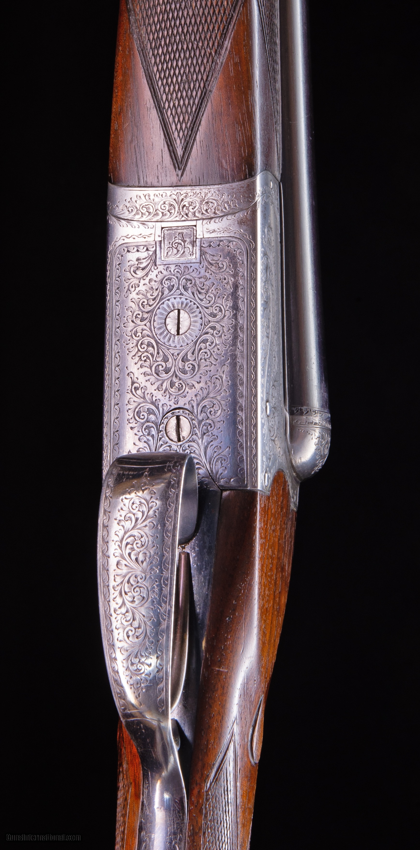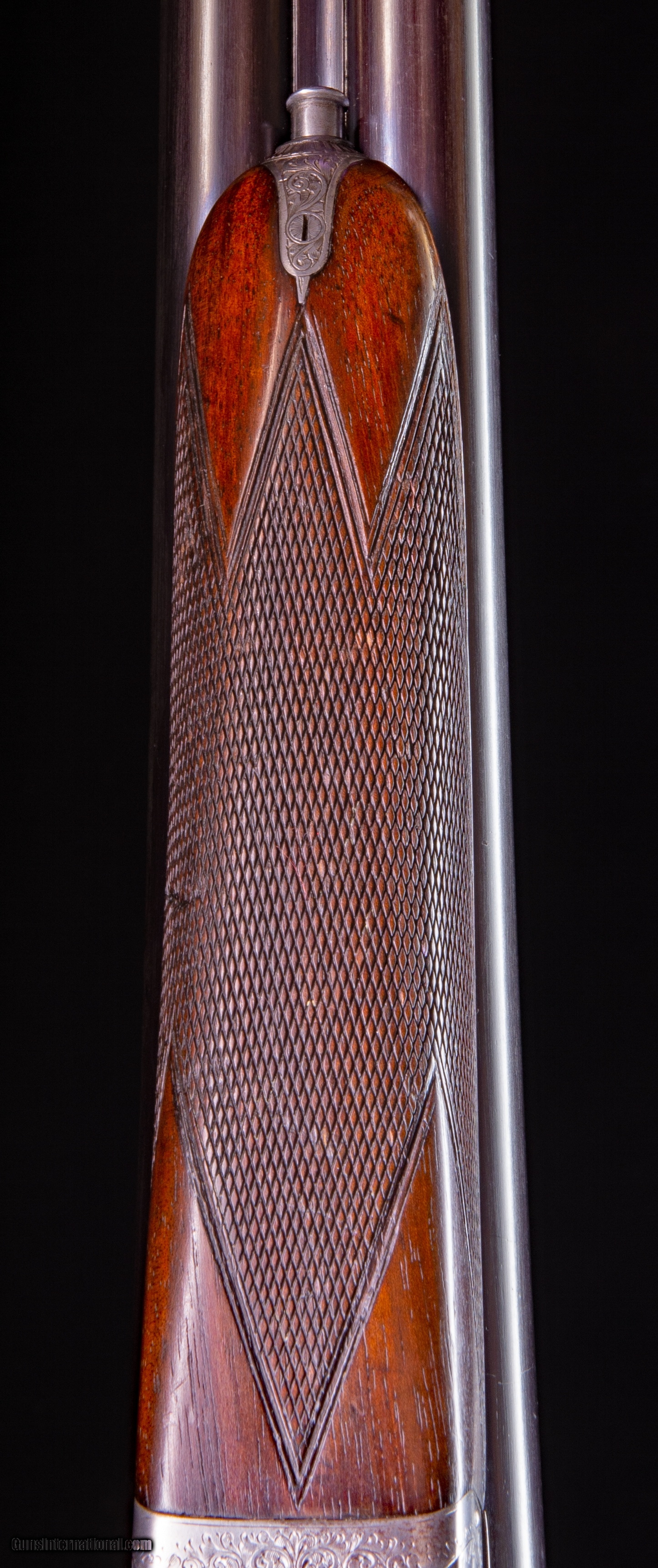 Description: Boxlocks - Built between 1930-1939 this between the wars boxlock is in very nice condition. Super light , the same weight as my favorite 16g.! Great dimensions for many. The extension we can easily remove and replaced with a nice pad. *** Note: To see this gun with high resolution photos and a zoom-in feature, go to the vintagedoubles main site and search for the gun ID: 5120 or browse the main site to see our full gun collection. SOLD Curio/Relic: Yes Manufacturer: Russell Hillsdon 12g. very light at 6 lbs. 2 oz. on Sale! Model: None Serial Number: 3902 Ejectors: Yes Barrels: 26 Barrel Type: Steel Action: Boxlock Ejector Gauge Info: 12 gauge Stock Comb: 1 5/8 Stock Heel: 2 1/4 Stock Cast: 1/8 LOP: 15" with extens Weight: 6 lbs. 2 oz. Choke Left: .034 full Choke Right: .021 light full Proof:Nitro: 2 1/2 Minimum Wall Thickness Left: .025 Minimum Wall Thickness Right: .027 |
