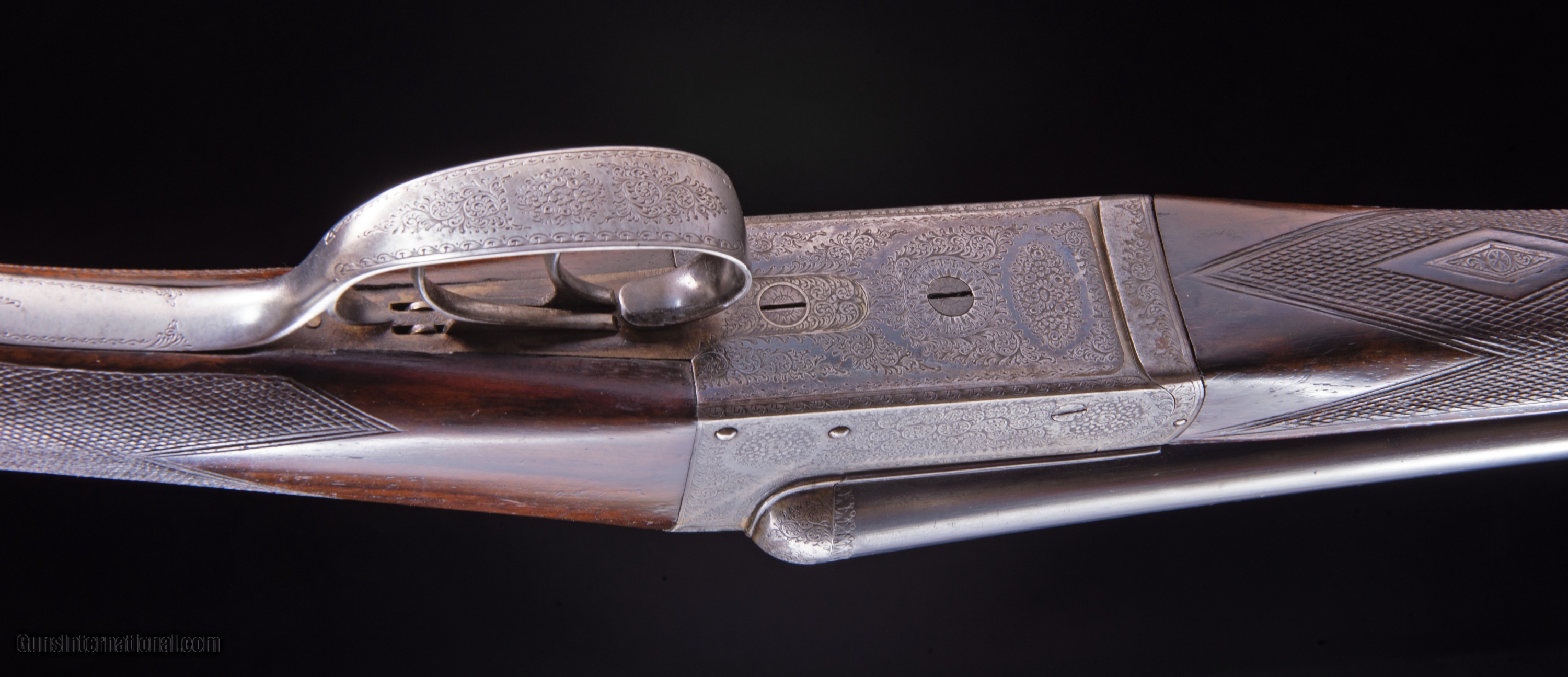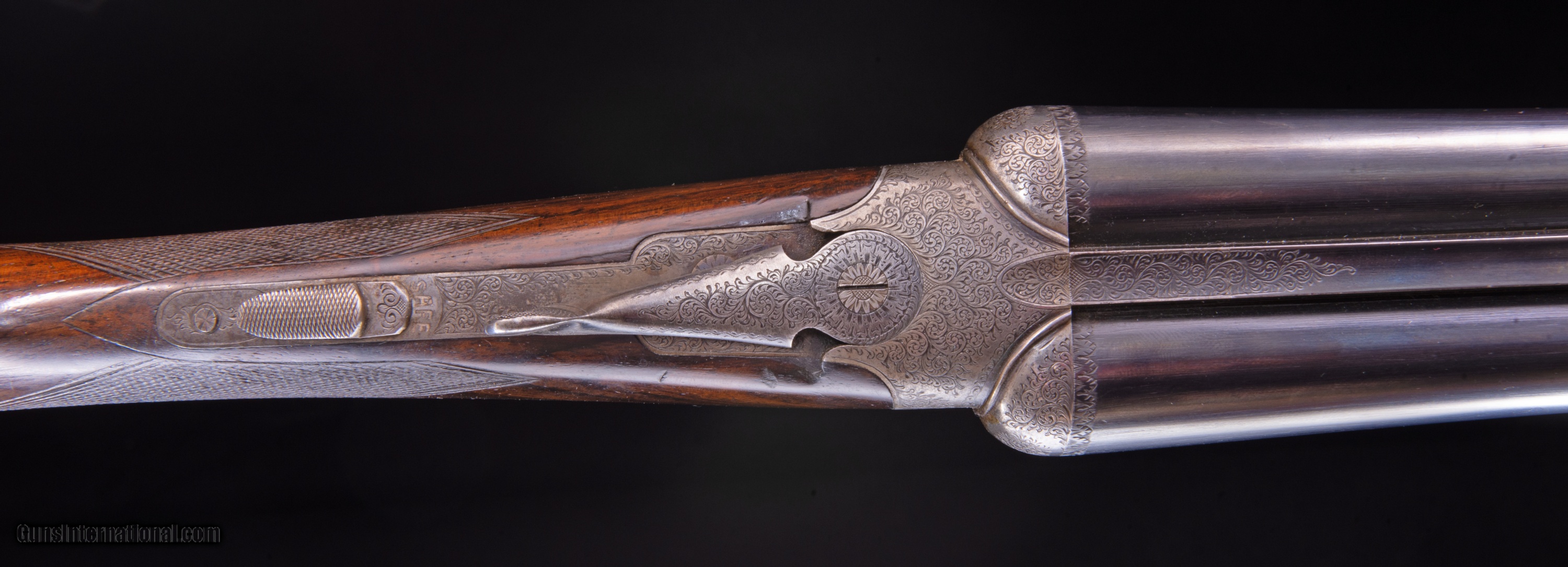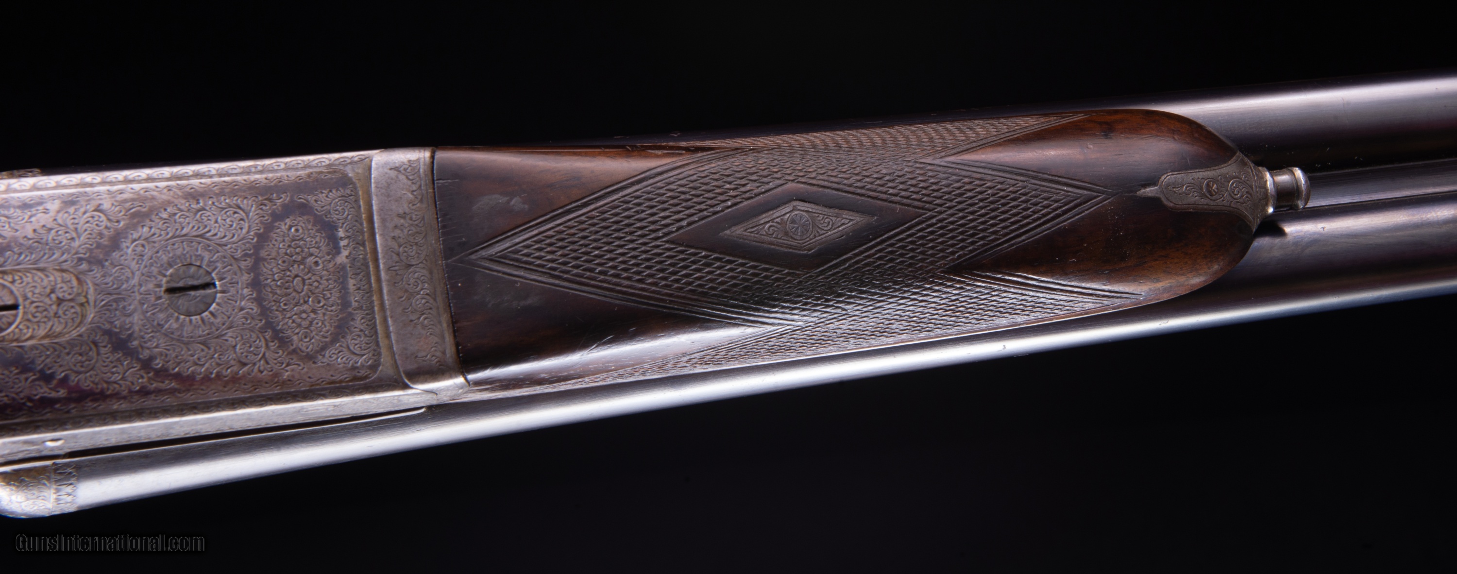According to \'Boothroyd\'s Directory\' "Skimin & Wood were mainly gunmakers to the trade, but they also specialized in pigeon guns - and had interests in Australia and New Zealand" Mr Skimin was also connected with (owned?) Holloway & Co, Holloway & Naughton who shared the same addresses at Vesey St, Little Shadwell St and Price St. The Vessey St address appears to have been Holloway and Naughtons premises (a four storey building with 16 workshops and a 120 ft test range) called the Vesey Street Gun Works. *** Note: To see this gun with high resolution photos and a zoom-in feature, go to the vintagedoubles main site and search for the gun ID: 4300 or browse the main site to see our full gun collection.