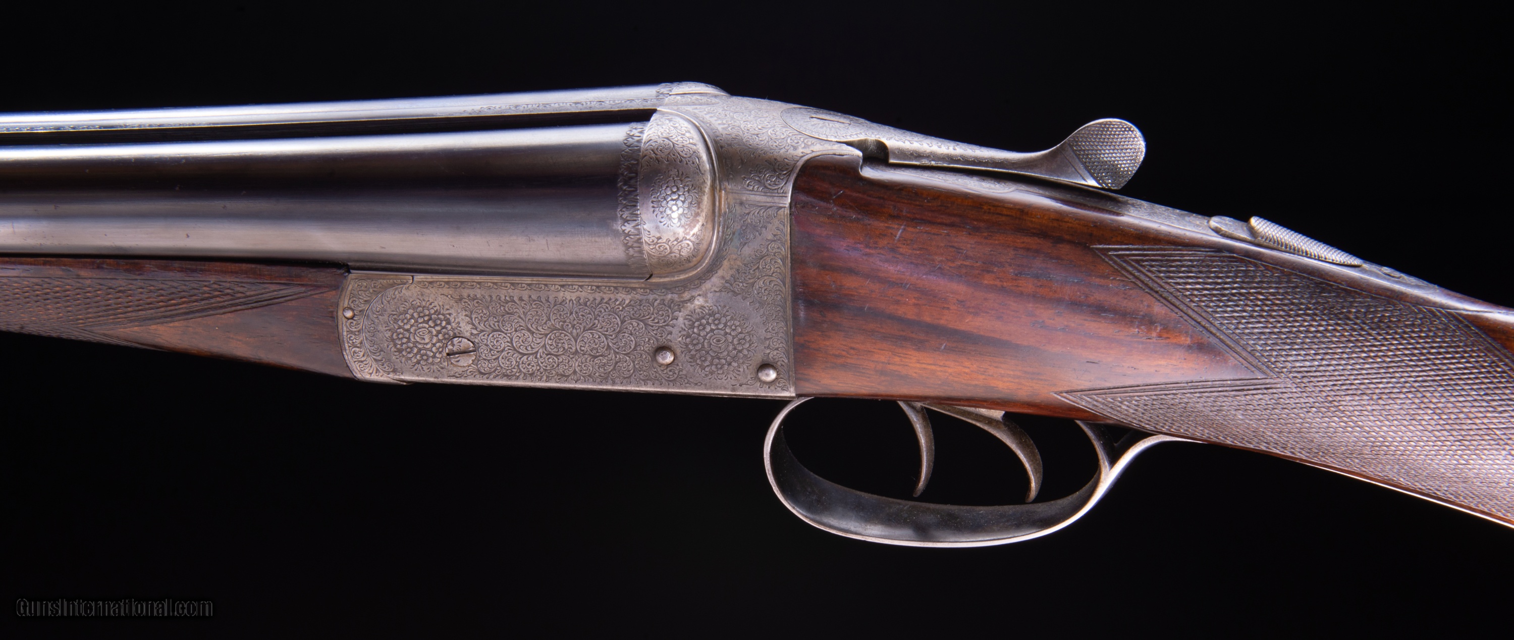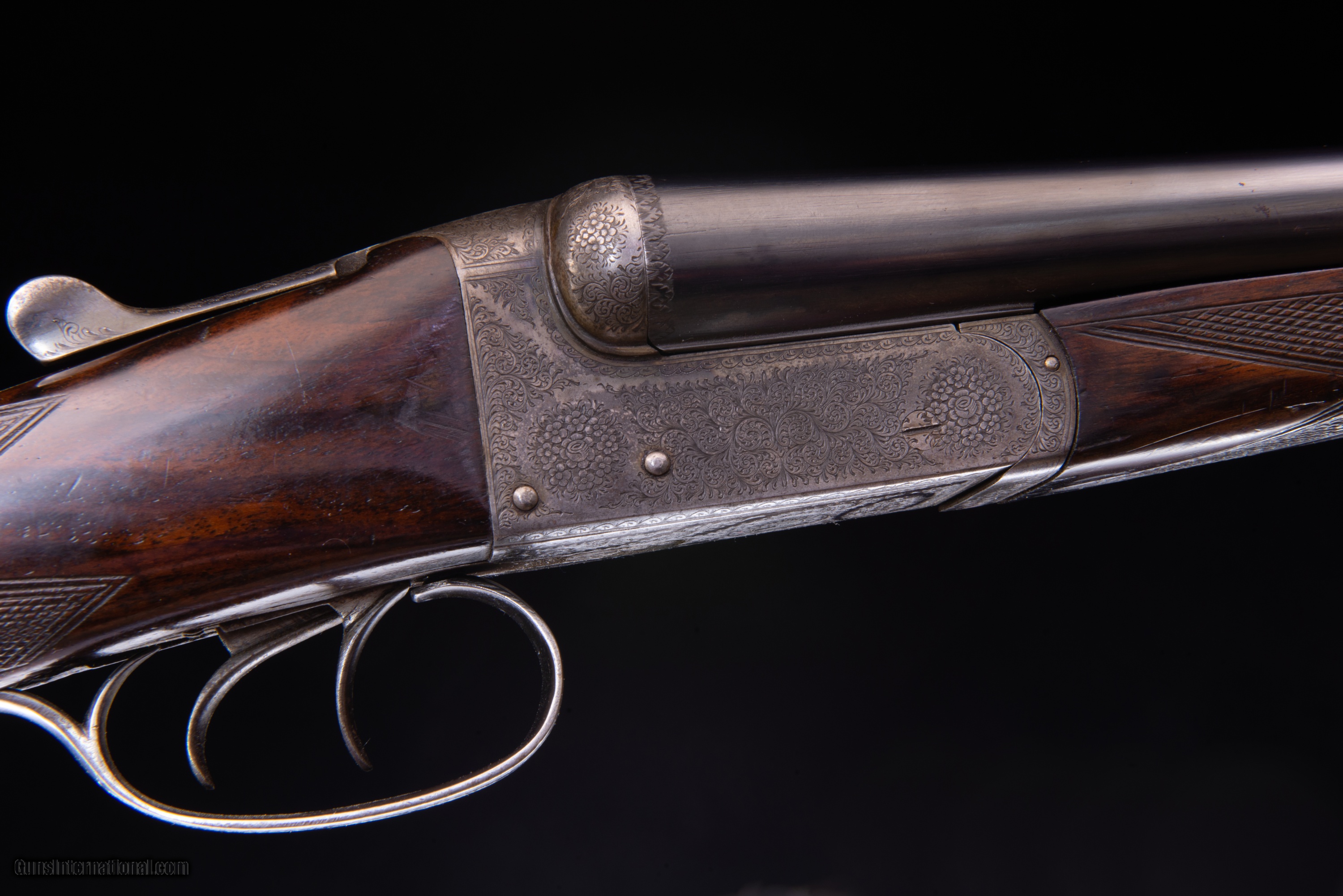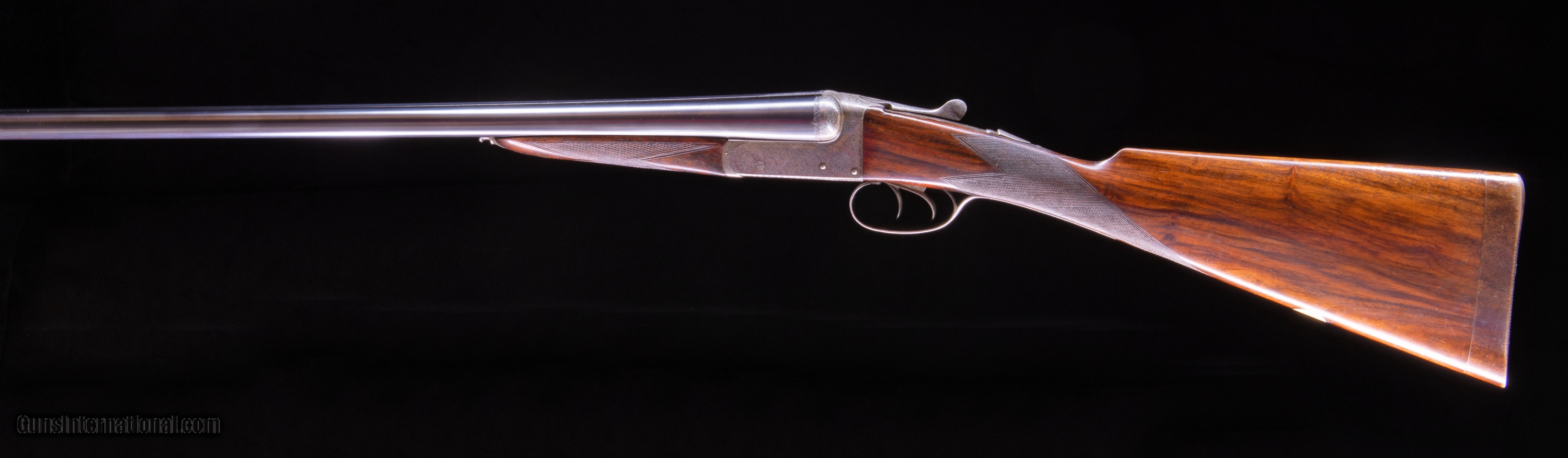 Description: Boxlocks - Elderkins is a very old and respected shop in Spaulding England. I talked to Bill Elderkin about this gun and he said his grandfather had most of their guns built by Skimn & Wood. They were well known and respected for building most of the 2" guns in the UK market before WWII. This gun is very light and handles extremely well. It is tight on face and field ready and in very nice condition. If one does not care for the English style stock extension we can remove it and arrange for a recoil pad to replace it. Some history: Skimin & Wood, 31 Loveday St. B\'ham 1920-23, 52 Cliveland St 1923-28, 10,12,14 Vesey St 1929-56, Little Shadwell St 1957-63, 3 Price St 1964-74. F.J. Wiseman succ to bus circa 1964/65. (British Gunmakers, Vol 2 by Nigel Brown).