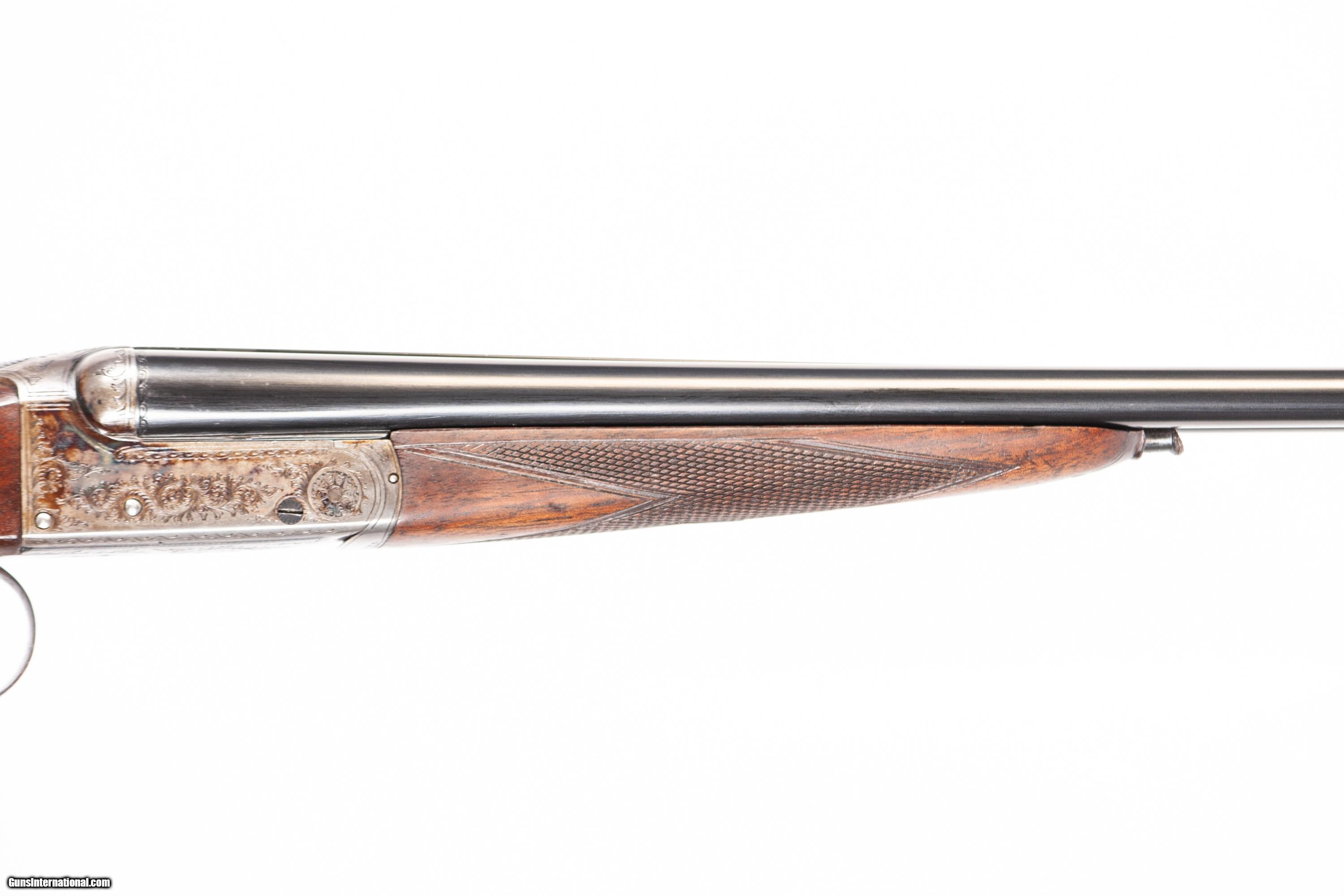 Smallwood Gunmakers BLE side by side chambered for 410 GA shells with 26 inch barrels bright & shiny bores 2 1/2 inch chambers with ejectors has been nicely engraved fixed chokes Mod/Imp Cyl. a 14 inch LOP and is Birmingham proofed. This gun is in excellent condition and is covered by Dury's Lifetime Warranty.