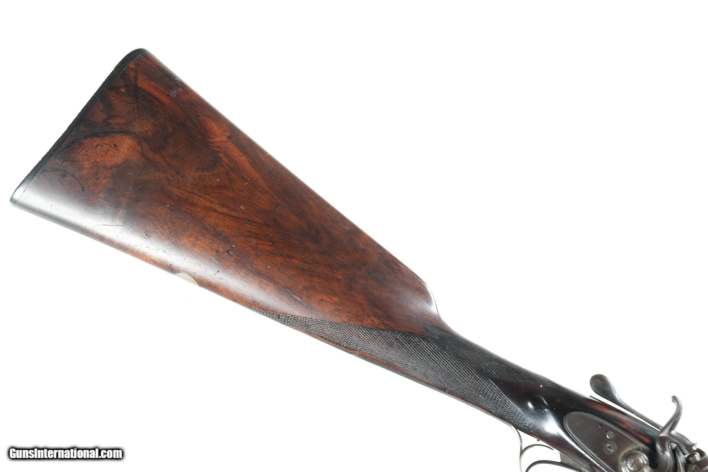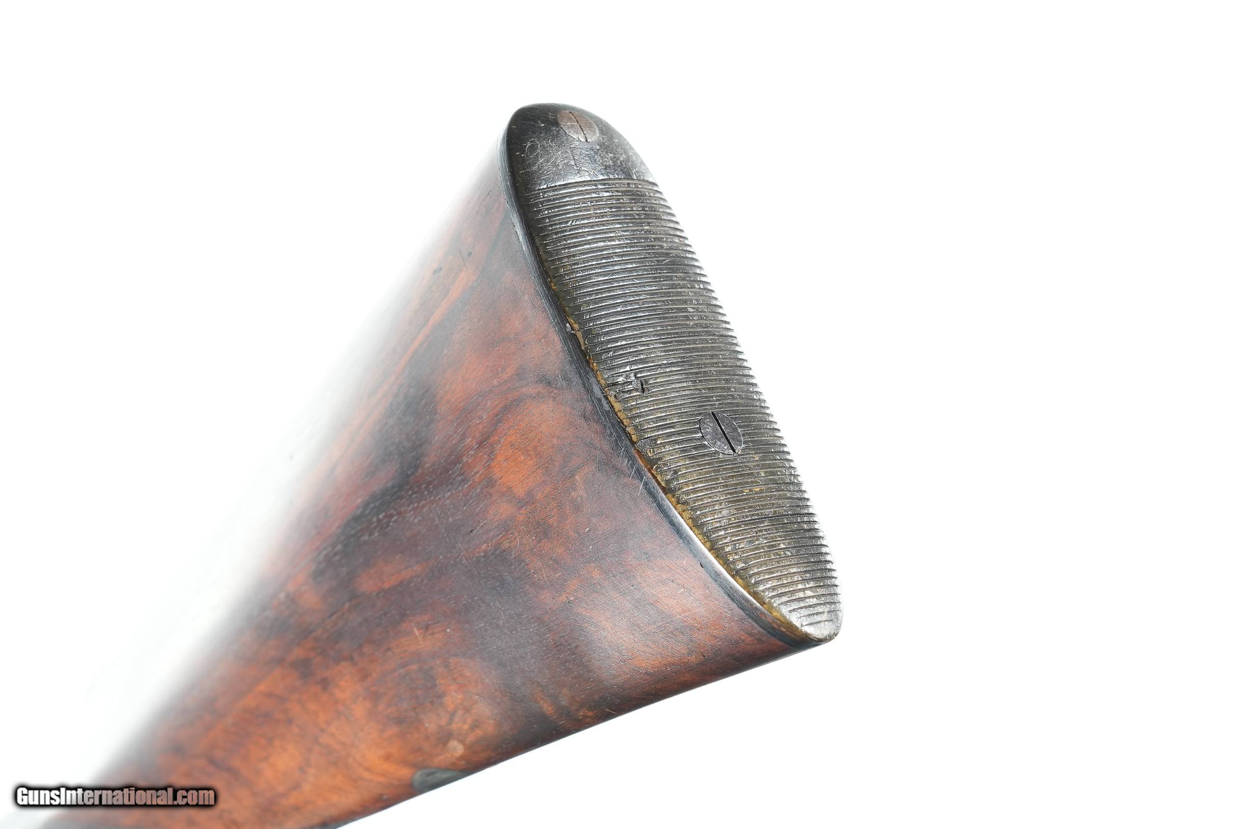 Description: Antique T.E. Kither 16 ga, hammer double with double triggers and lifter extractors. Nito-proofed 2 3/4" Choked IM & IC with varnished walnut stocks. 14 5/8" LOP. Condition, Very good with bright bores and mechanically fine with rebounding hammers. Exterior has toned to plum with wood having moderate wear, full-sized with light impressions. • Free Shipping, No Credit Card Fees. • Lay-a-way available for this firearm. • 1/3 Down, a 1/3 in 30 Days 1/3 in 60 Days. SOLD Antique: Yes Shotgun Gauge: 16 Gauge Manufacturer: T.E. Kither Serial Number: 2784 Barrel Length: 29 1/4 |