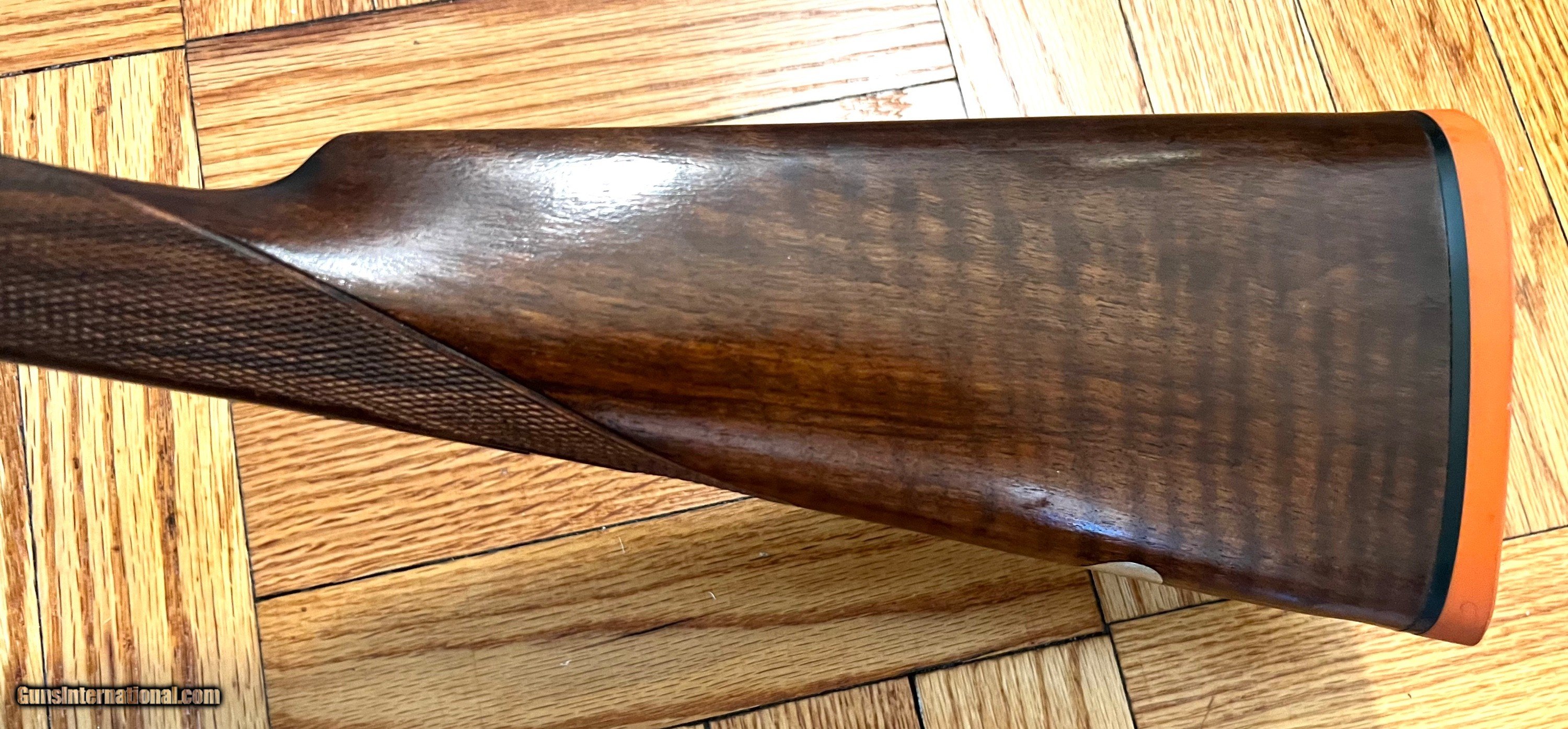 Description: T&H King Birmingham 20ga hammergun 28" non ejector steel barrels Excellent bores Lockup is tight 2 3/4" 1oz nitro proof Bores: .608/.609 proofed at .605/.605 Chokes: .009/.015 IC/M Minimum wall thickness R: 0.032 L: 0.033 LOP 14 7/8 DAC 1 1/2 DAH 2 3/8 Cast off 1/8" 6lbs Nice vintage smallbore hammergun with original 2 3/4" steel barrels and nicely figured stock. SOLD Curio/Relic: Yes Shotgun Gauge: 20 Gauge |