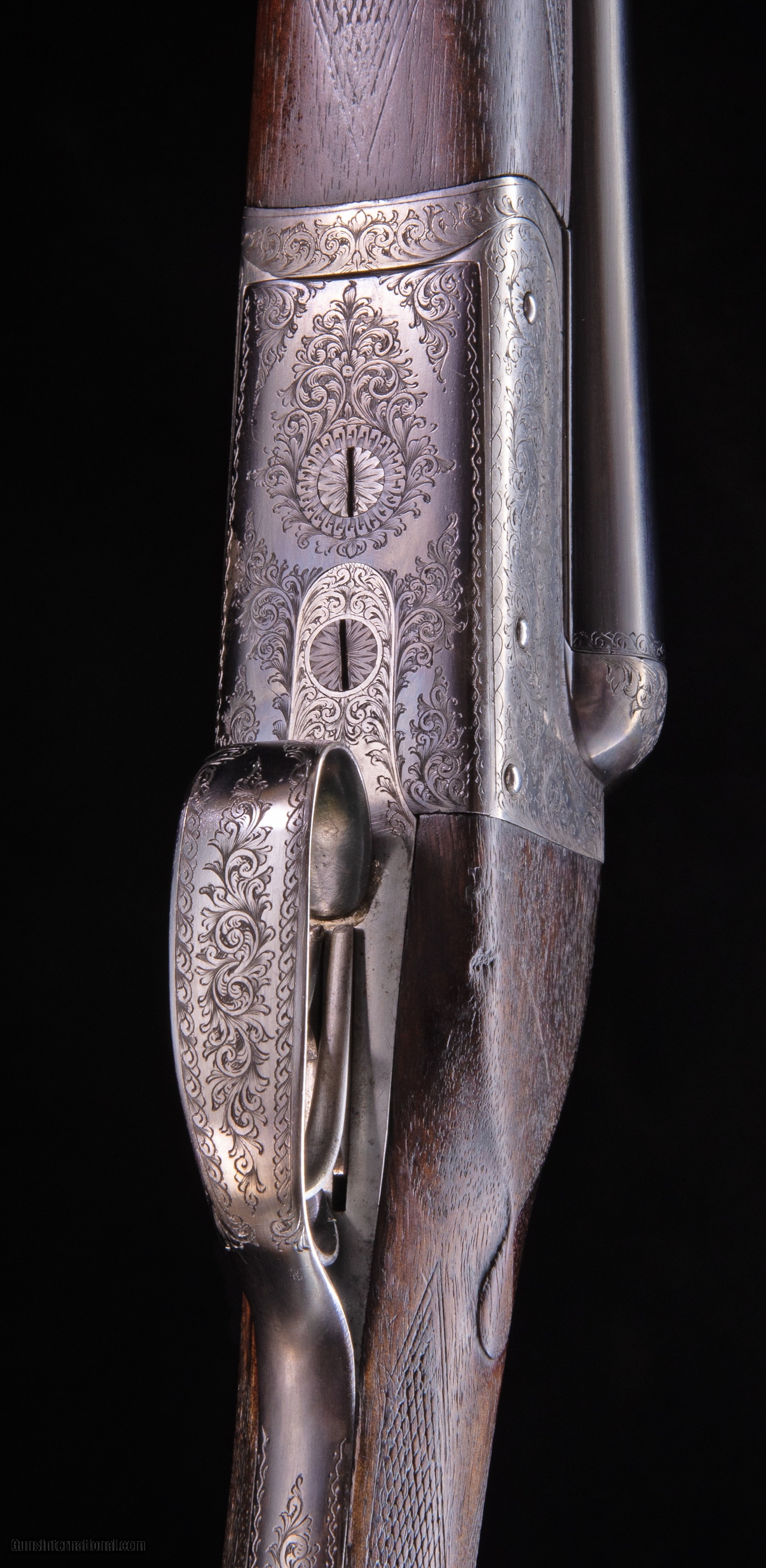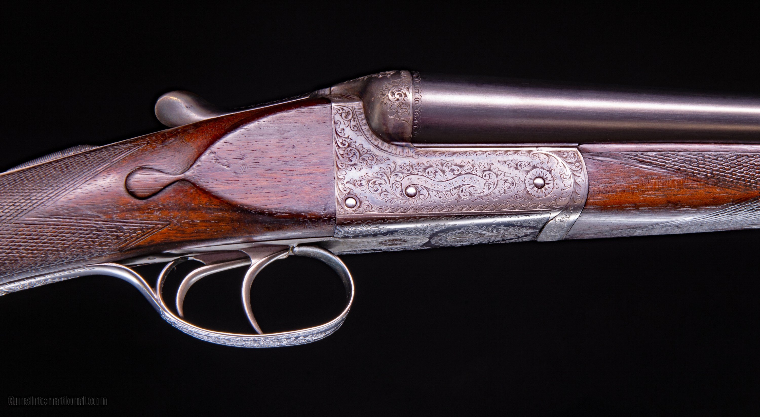 Description: Boxlocks - A nice little English 20g. boxlock from 1919. Tight! High dimensions and no cast so good for right or left-handed shots. The butt plate could be removed, and a pad added for up to a 14 1/2" LOP. *** Note: To see this gun with high resolution photos and a zoom-in feature, go to the vintagedoubles main site and search for the gun ID: 4955 or browse the main site to see our full gun collection. SOLD Curio/Relic: Yes Manufacturer: T. Stensby & Co, 20g Boxlock Ejector Model: None Serial Number: C1013 Ejectors: Yes Barrels: 28 Barrel Type: Steel Action: Boxlock Ejector Gauge Info: 20 gauge Stock Comb: 1 1/2 Stock Heel: 2 Stock Cast: 0 LOP: 14" to 1/2" Weight: 6lb 2oz Choke Left: .025 full Choke Right: .010 Proof:Nitro: 2 1/2 Minimum Wall Thickness Left: .029 Minimum Wall Thickness Right: .038 |