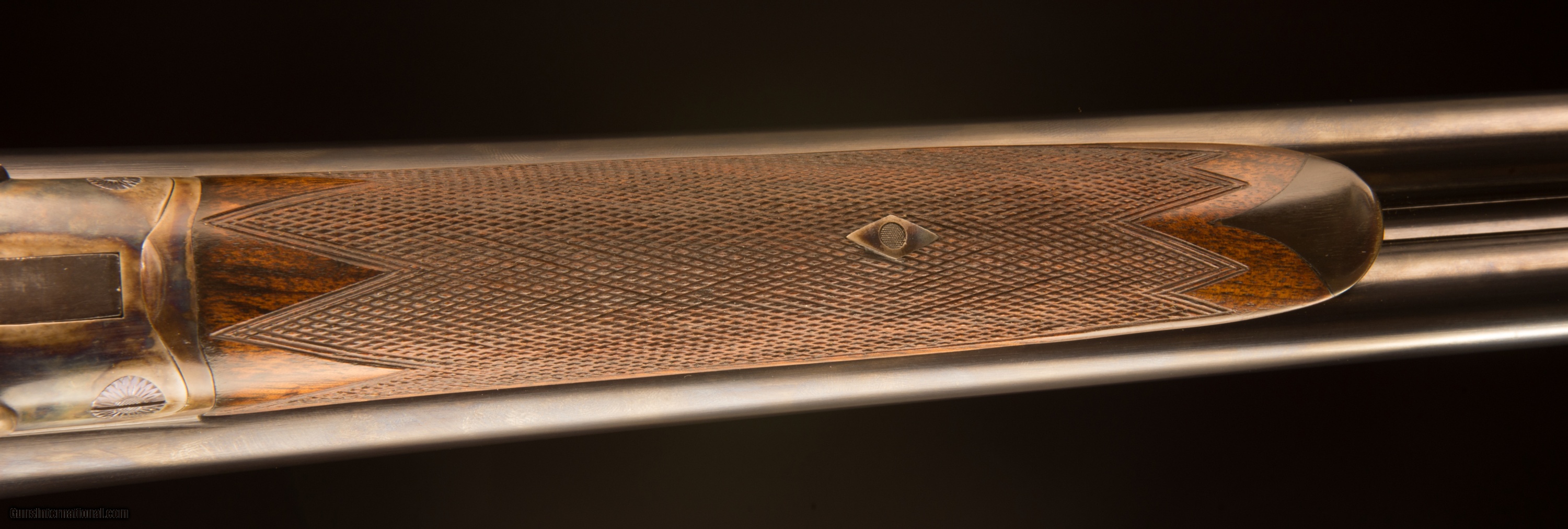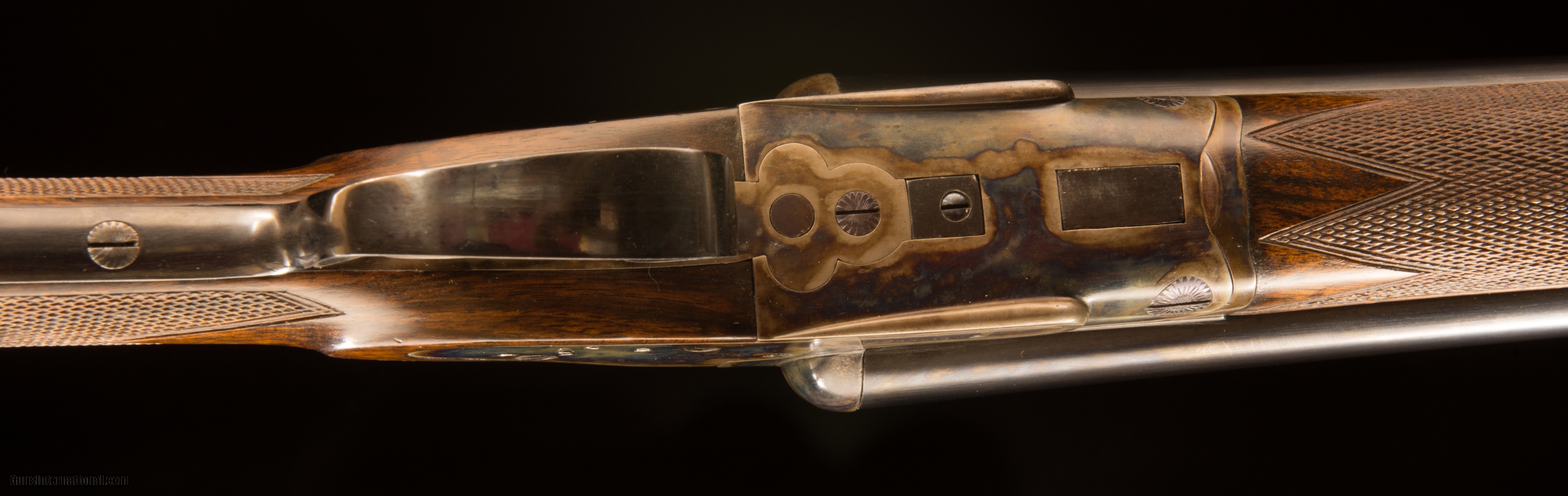 Description: Let me make you a great deal. I will give this fine double for free to the first to contact me about this gun. Only one small caveat, if you take the gun for free you have to pay us for the restoration that was done to it :) Cost of restoration: New London BEST oil wood finish $1000.00 Restore checkering - $300.00 New English style case hardening - $1200.0 Best English barrel striking and blacking - $400.00 This adds up to 2900.00 but to make you an even better deal we will discount the restoration bill to $2400.00. Who says there are no more bargains in the world? In all seriousness, for $2400.00, this beautifully restored English double is a bargain.