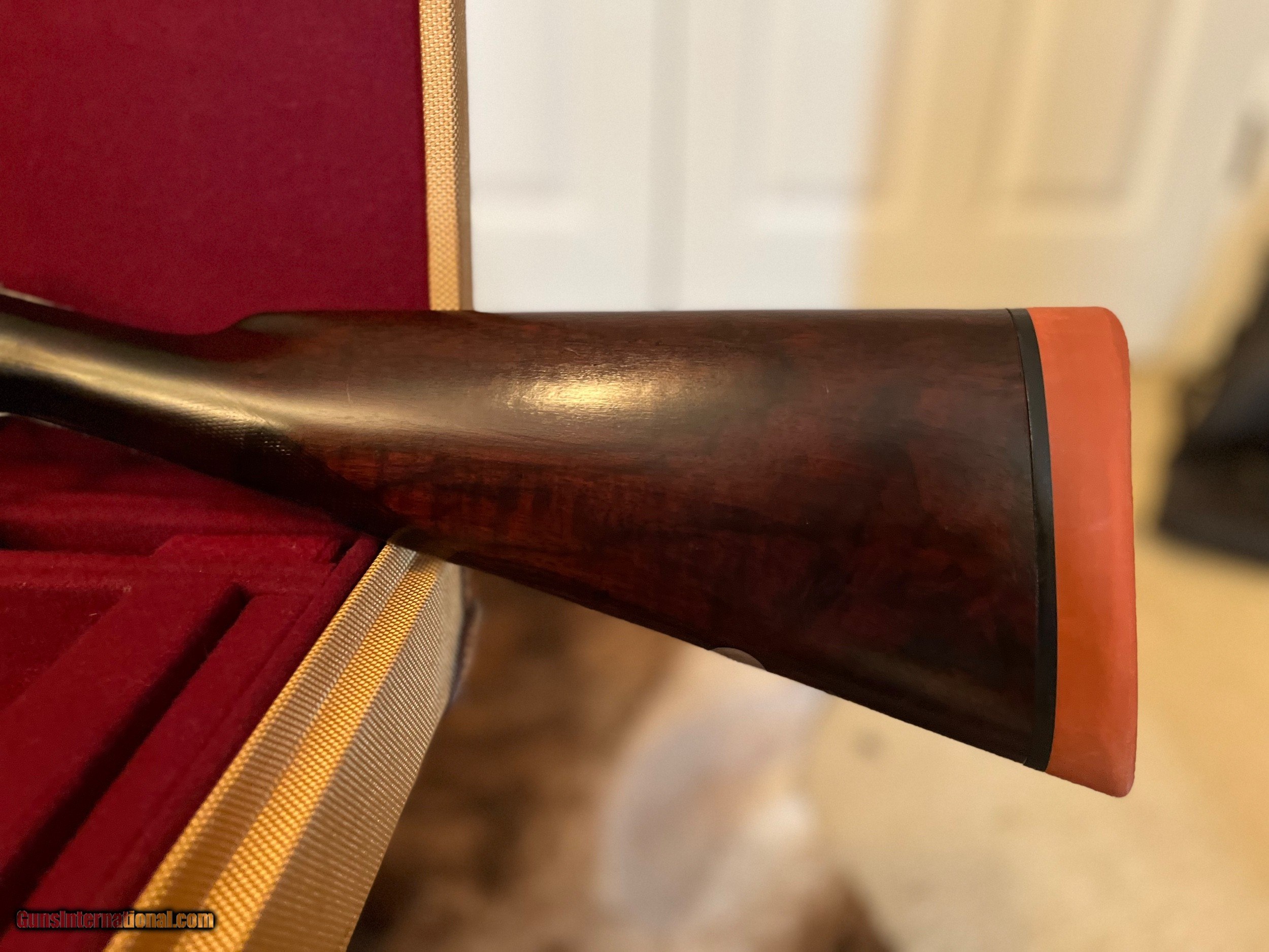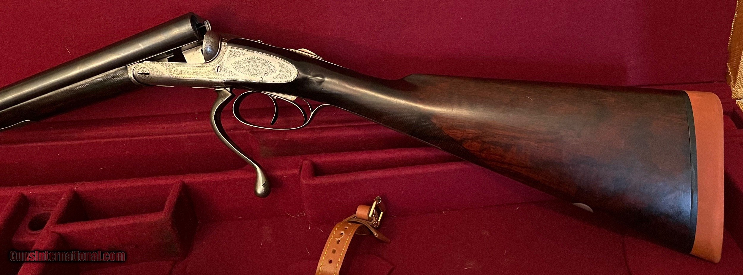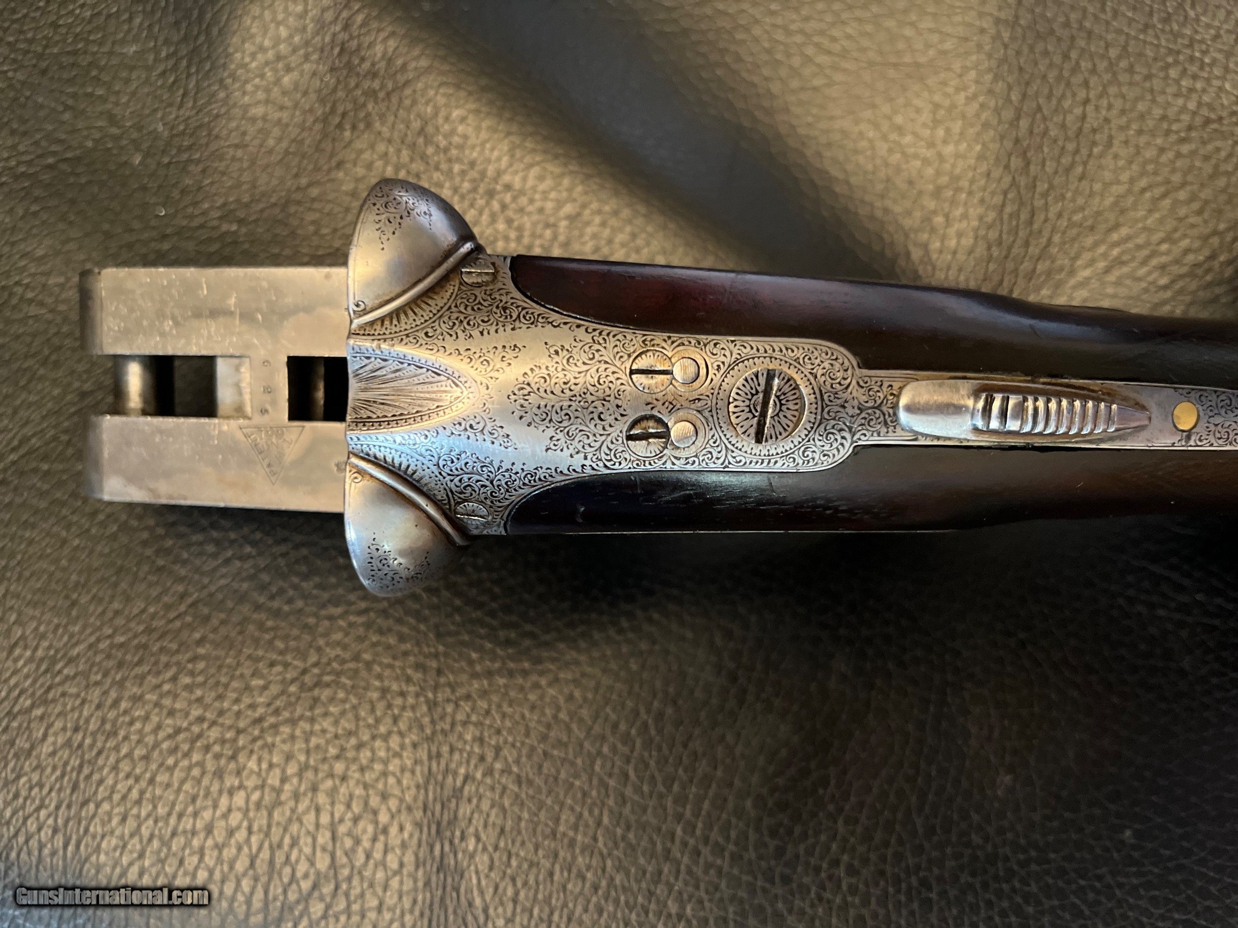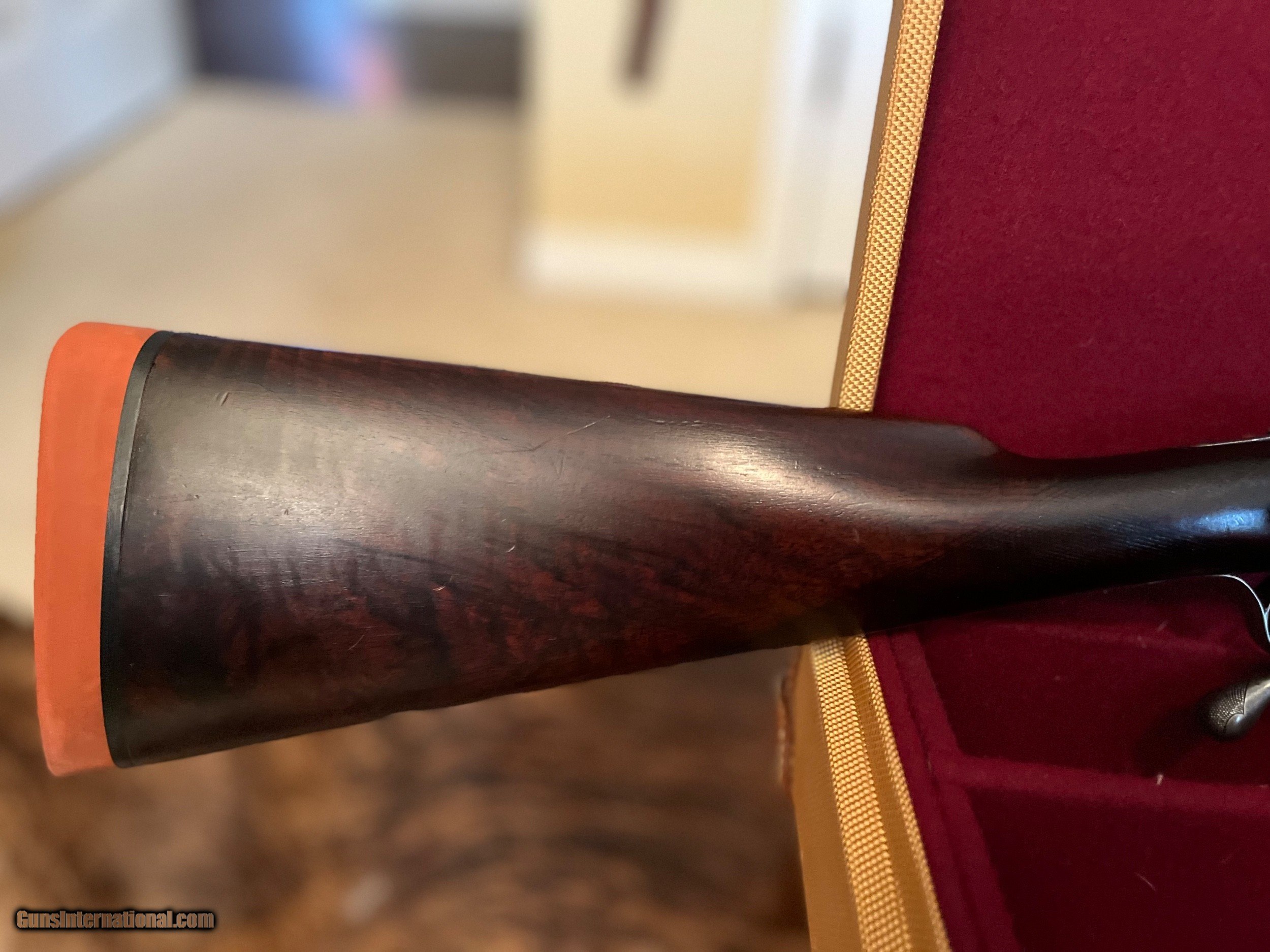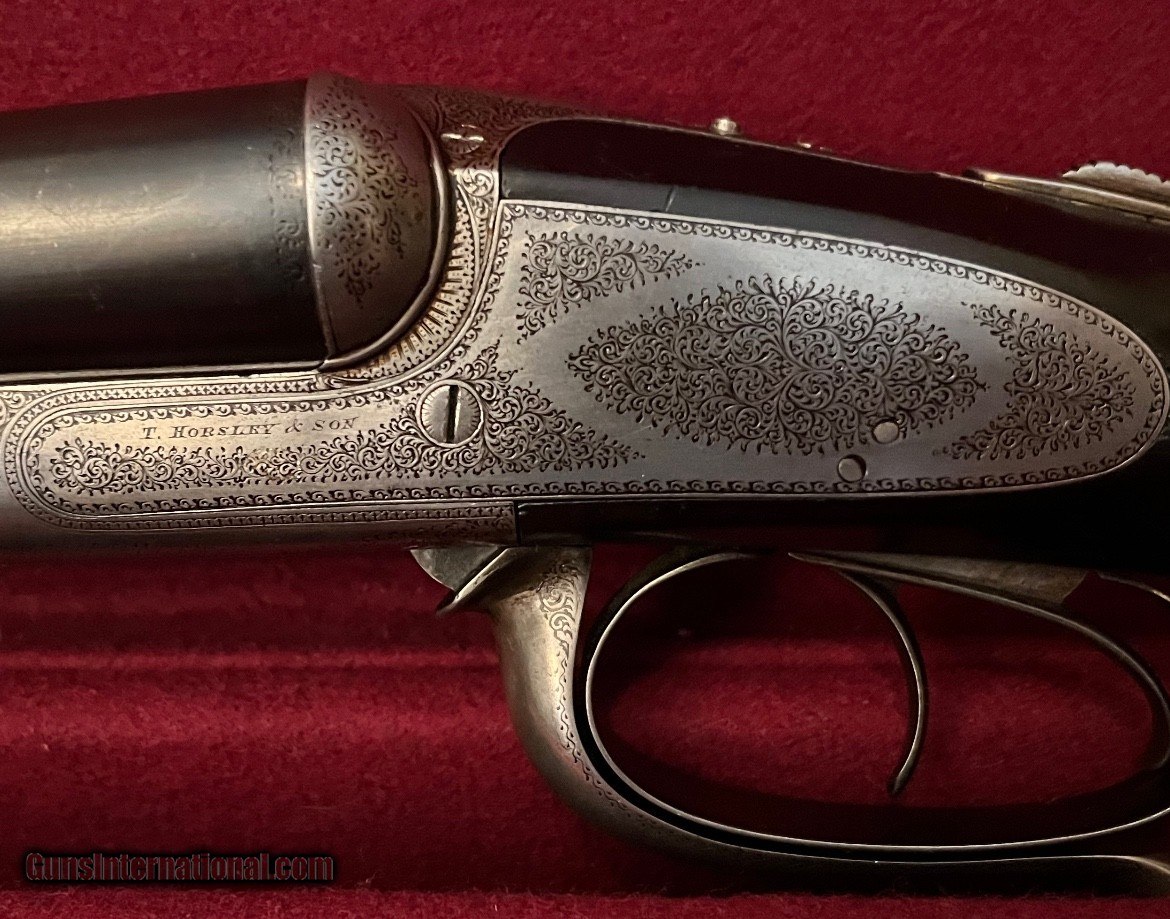 Description: SOLD. In time for the Southern SxS! For sale is a 12 bore Thomas Horsley shotgun. Thomas Horsley is generally regarded as the best of the provincial British gunmakers. This particular gun has several unique features and I’ve yet to see or learn of another identical Horsley. It is built on the Thomas Woodward patent of 1876 and has a snap-action underlever and cocking indicators on top. This one was likely made sometime in 1882 or 1883, according to the proofs. Please see photos. It is engraved with a beautiful and well defined scroll pattern. The fore end features a Rigby style underlever. Barrels are 28 inches and on face with 2 3/4 chambers. Bores are smooth and muzzles in nice shape. Chokes are approximately skeet and skeet. The gun has excellent modern dimensions and shoots wonderfully. Length of pull is 14 1/4 over an orange Silvers-type pad. DAC 1 1/2 inches, DOH 2 inches. Wood is in good condition with checkering worn over time. I’ve shot this gun with light 1 Oz loads, #7.5 and #8, and have experienced excellent results. A great looking, unique piece of shotgun history ready for the field or clays. Price is $2125 plus shipping. This shotgun is an antique and can be shipped directly. My email is josephgrazianogmail, (251) 223-0038. SOLD Antique: Yes Shotgun Gauge: 12 Gauge |